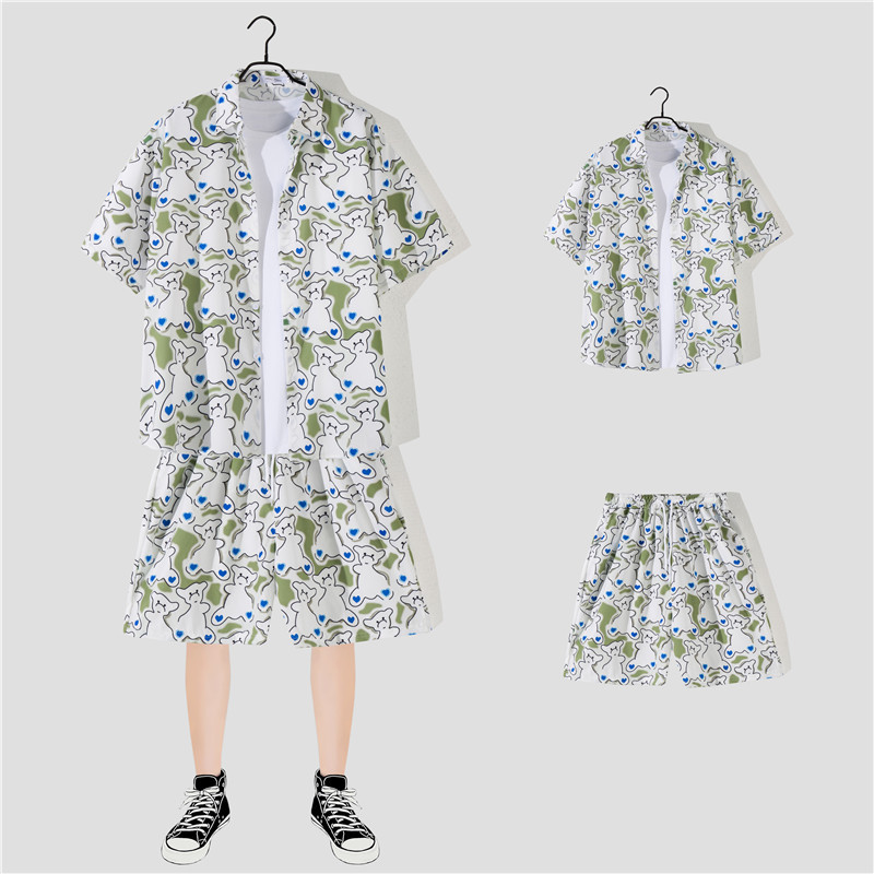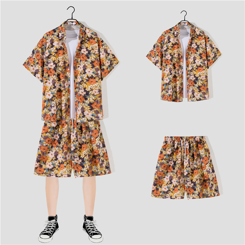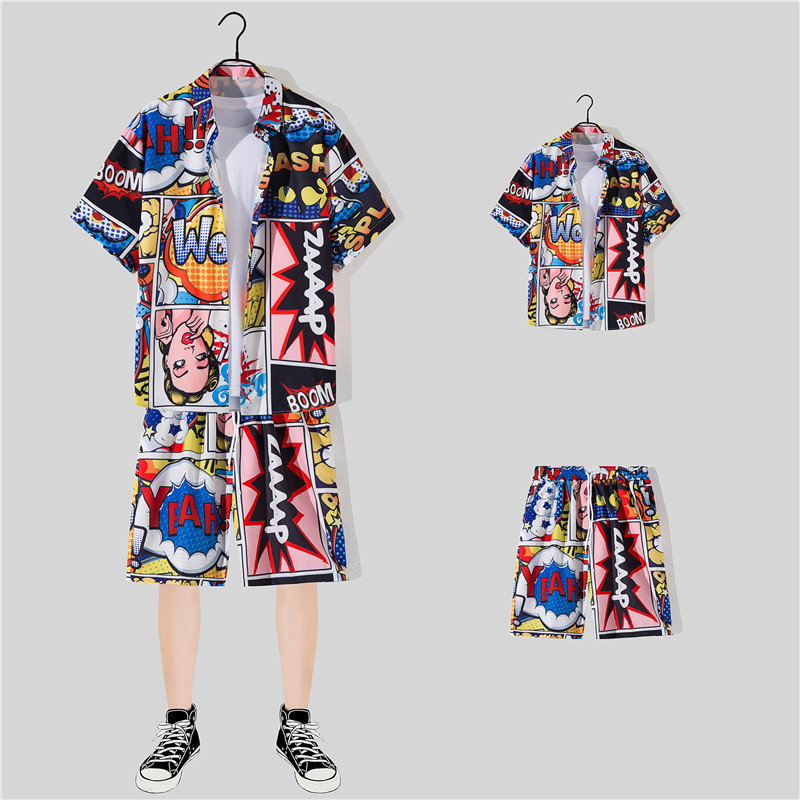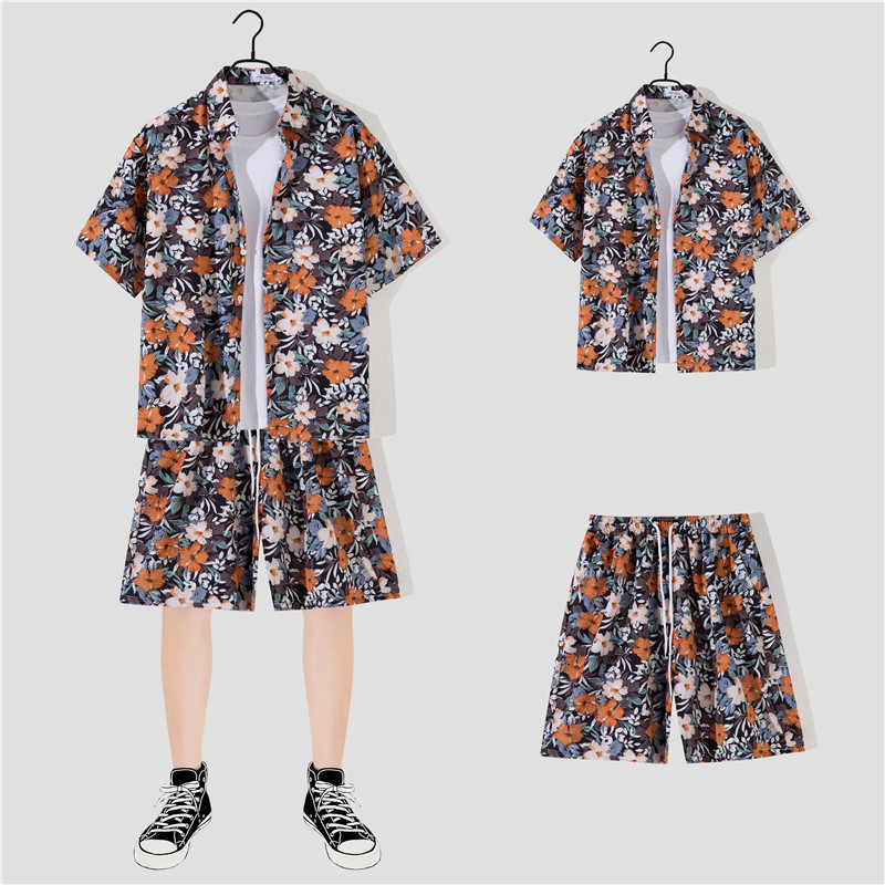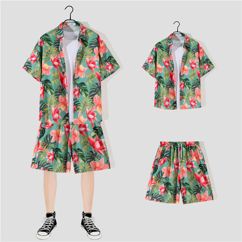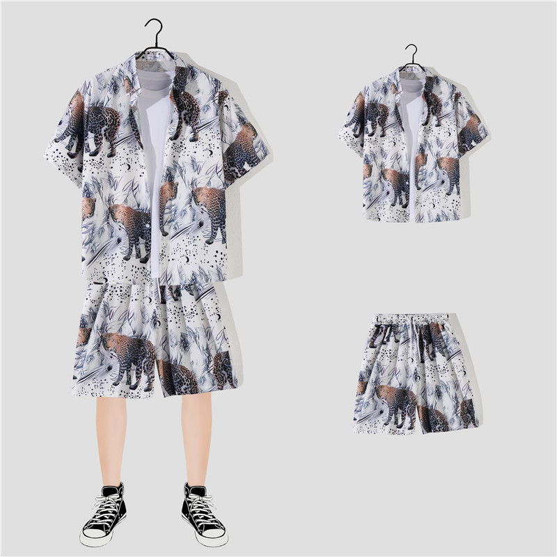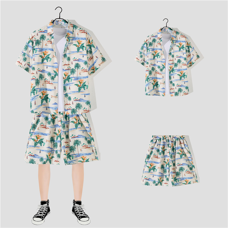 两件衬衫套装合集外贸大码短袖衬衫印花衬衫男夏季新款衬衣速卖通