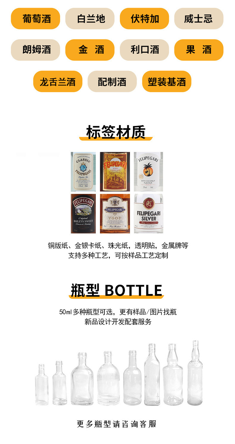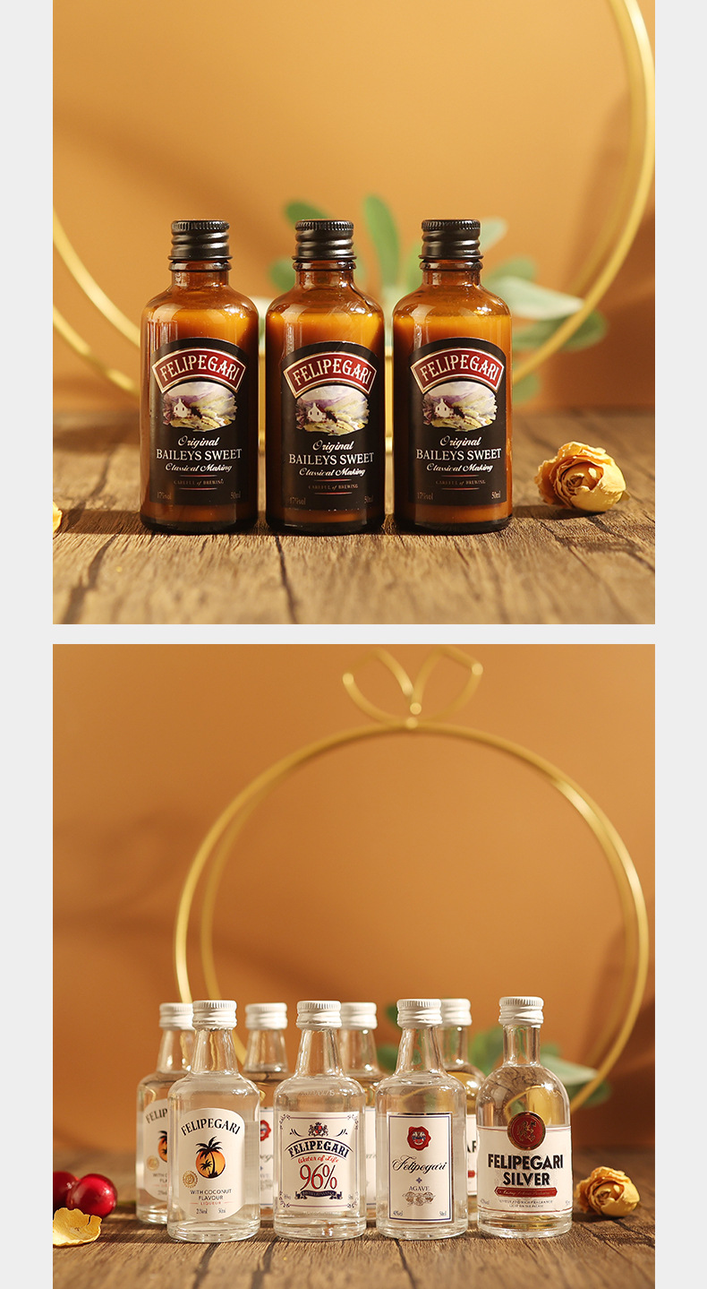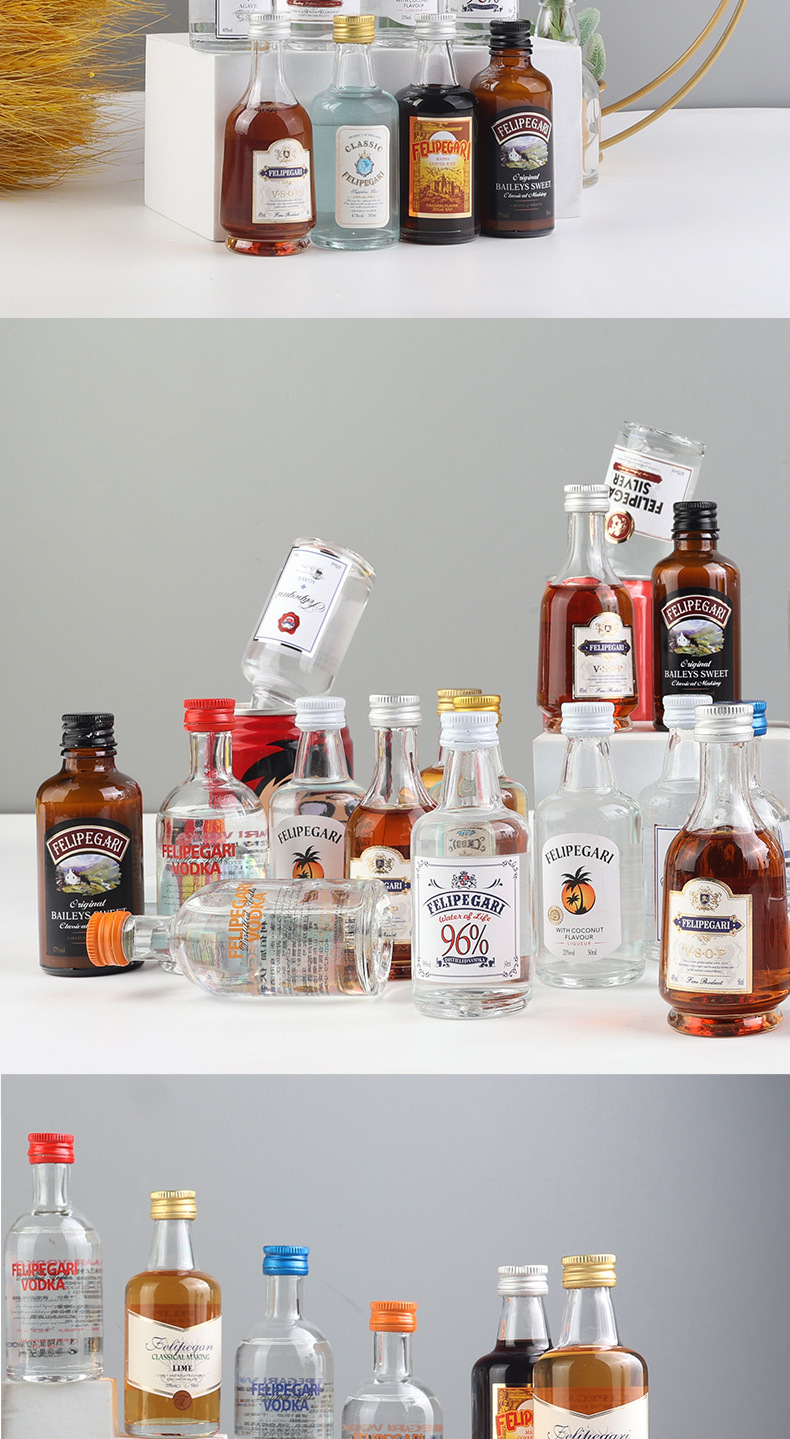 小瓶酒便利店调酒小酒版50ml迷你洋酒威士忌厂家基酒百利甜白兰地