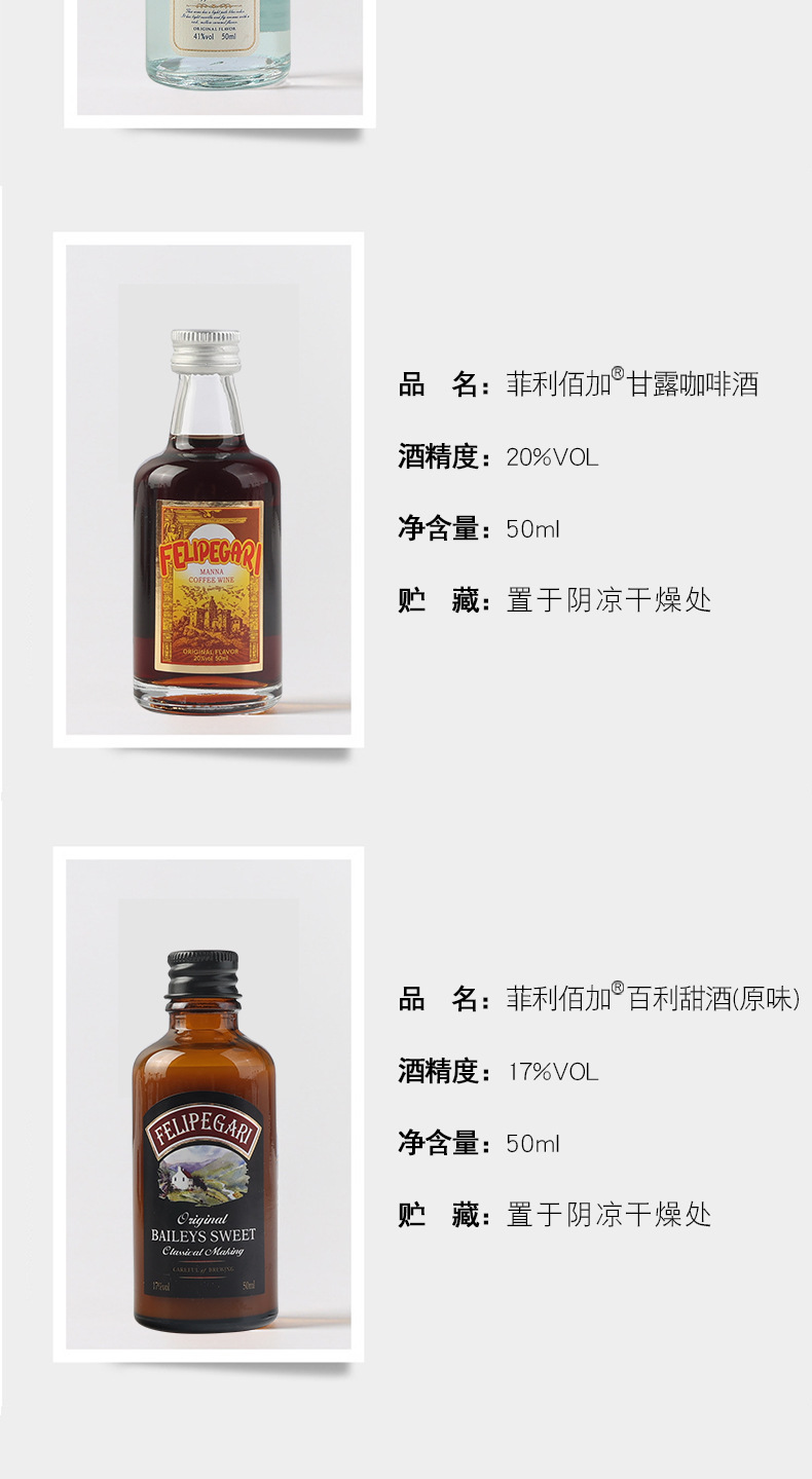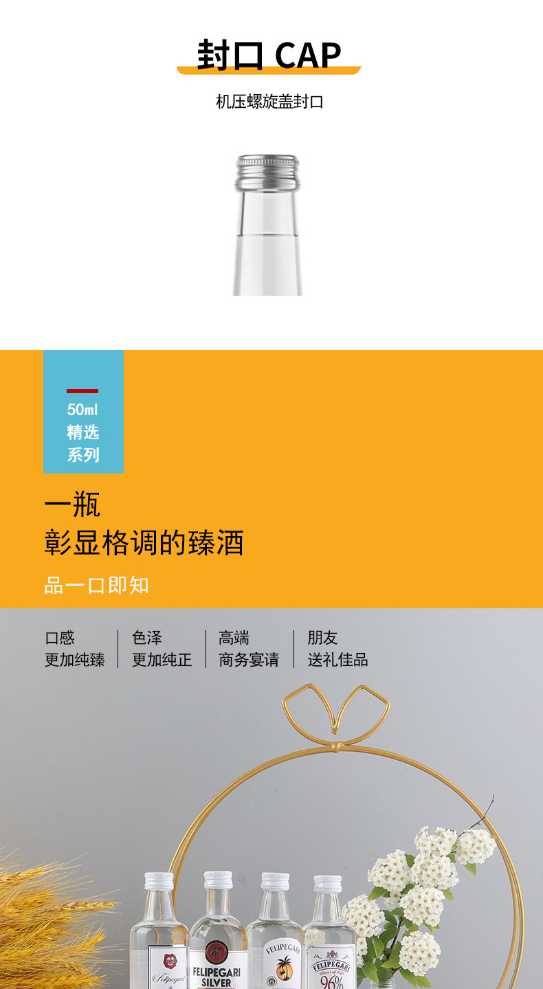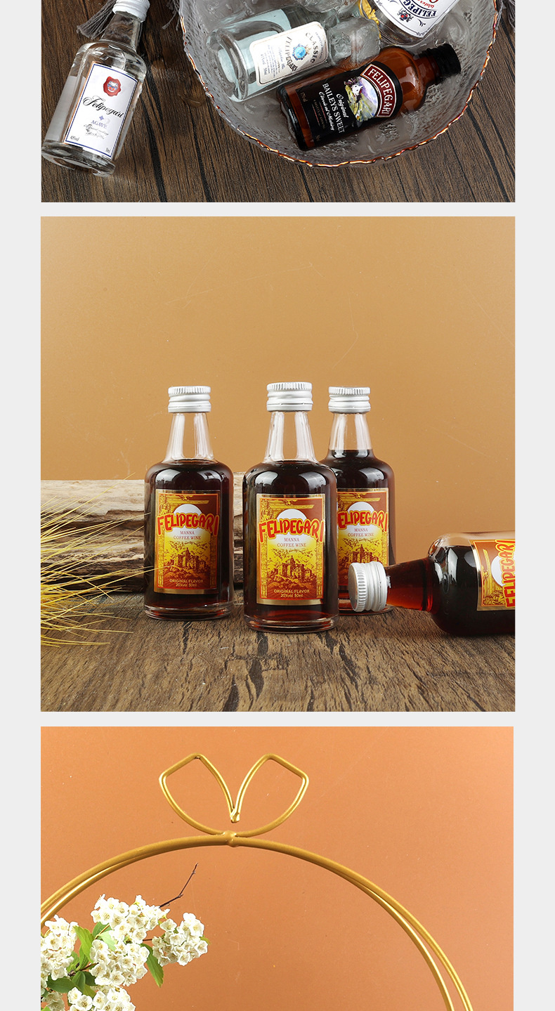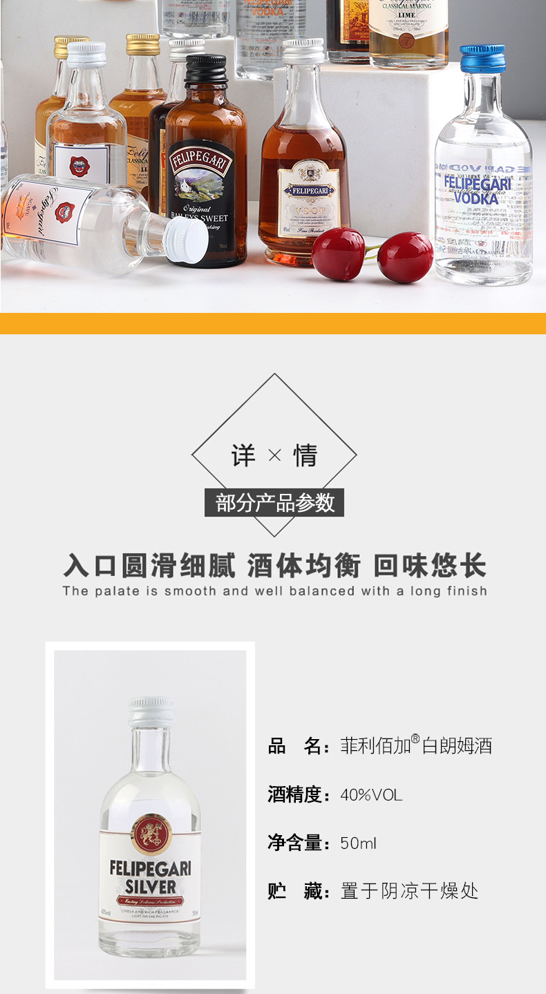 小瓶酒便利店调酒小酒版50ml迷你洋酒威士忌厂家基酒百利甜白兰地