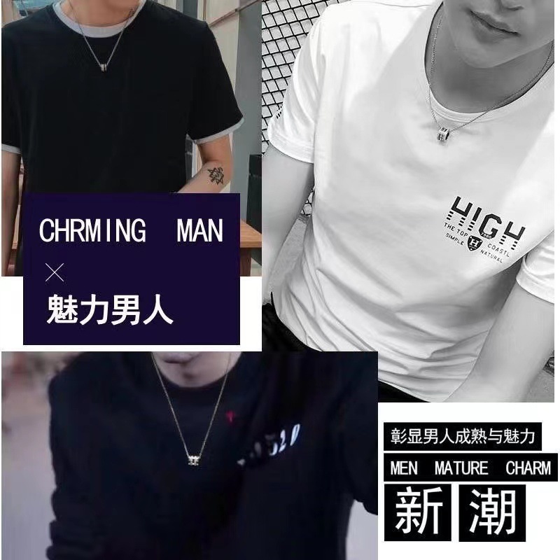 时尚项链男潮男个性嘻哈百搭钛钢项链轻奢小众高级挂坠饰品配饰