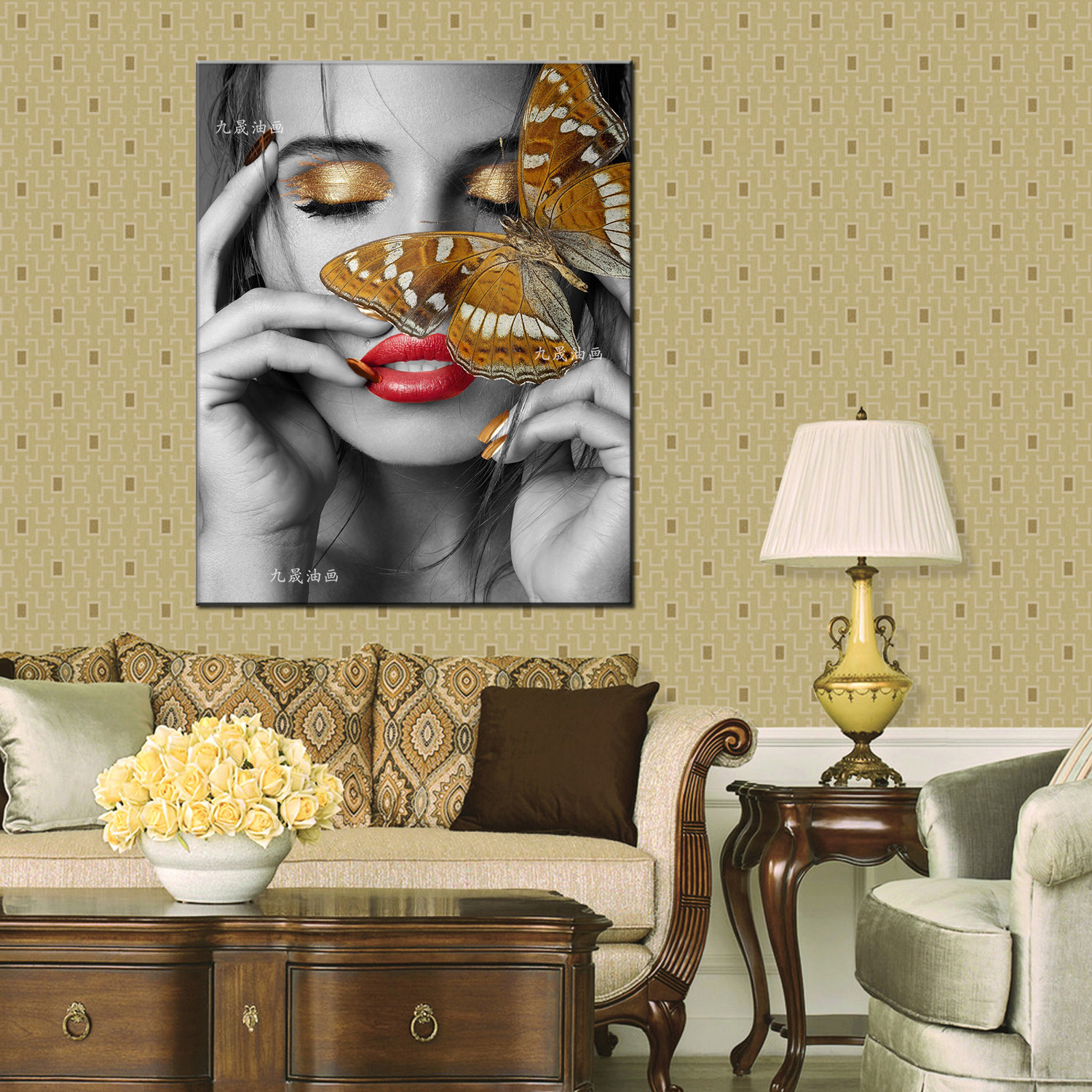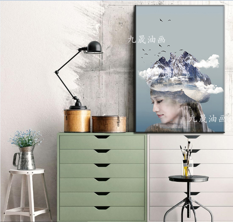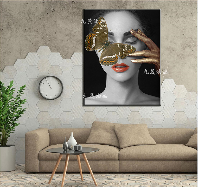 2023玄关客厅装饰画卧室美女人物喷绘挂画无框壁画床头帆布画批发