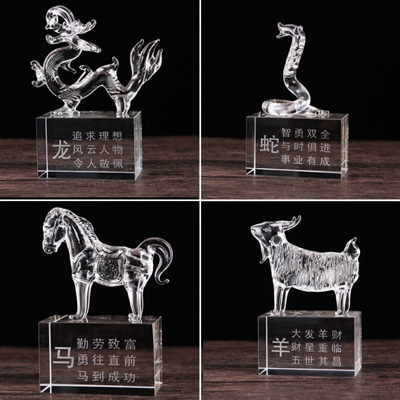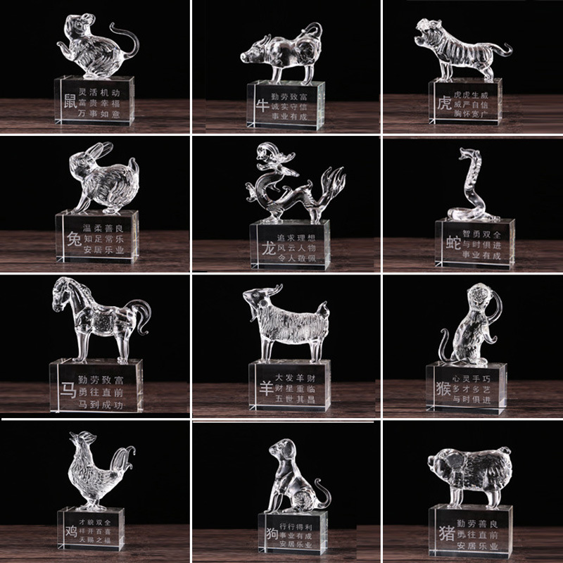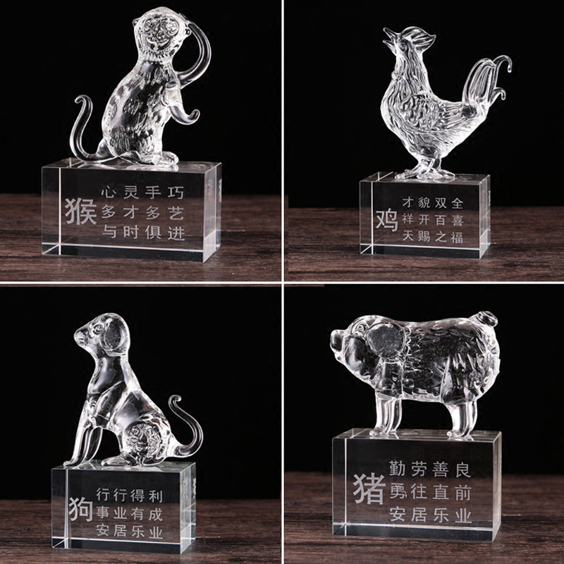 巨博水晶12十二生肖鼠牛虎兔龙蛇马羊猴鸡狗猪客厅工艺品摆件