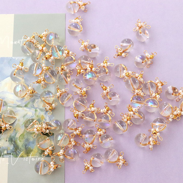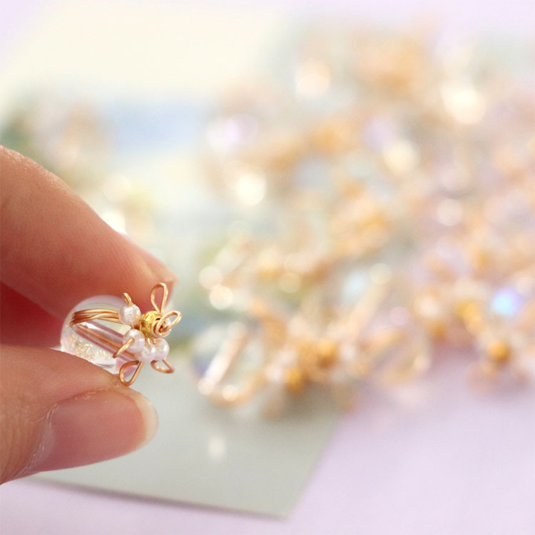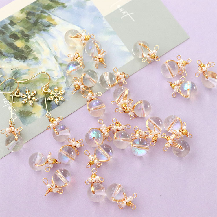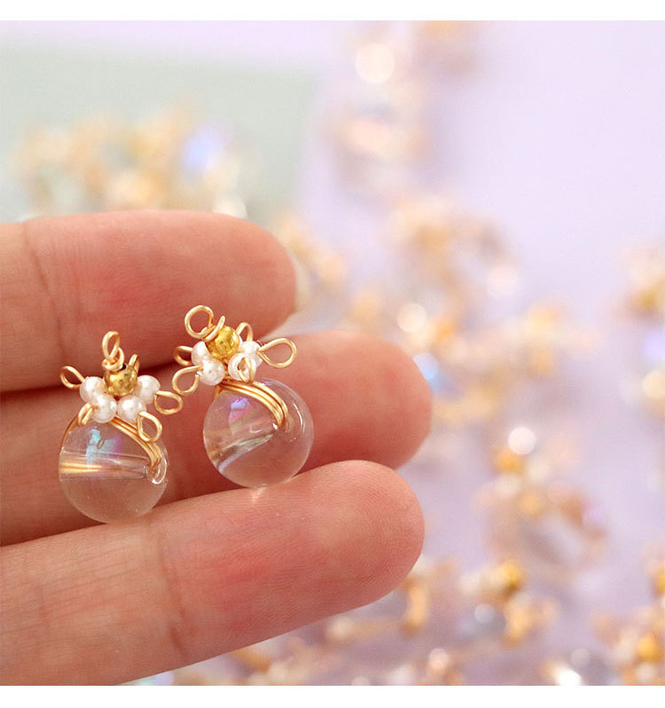 日韩手工编织花朵气质水晶吊坠挂饰耳钉diy耳饰手作饰品配件批发