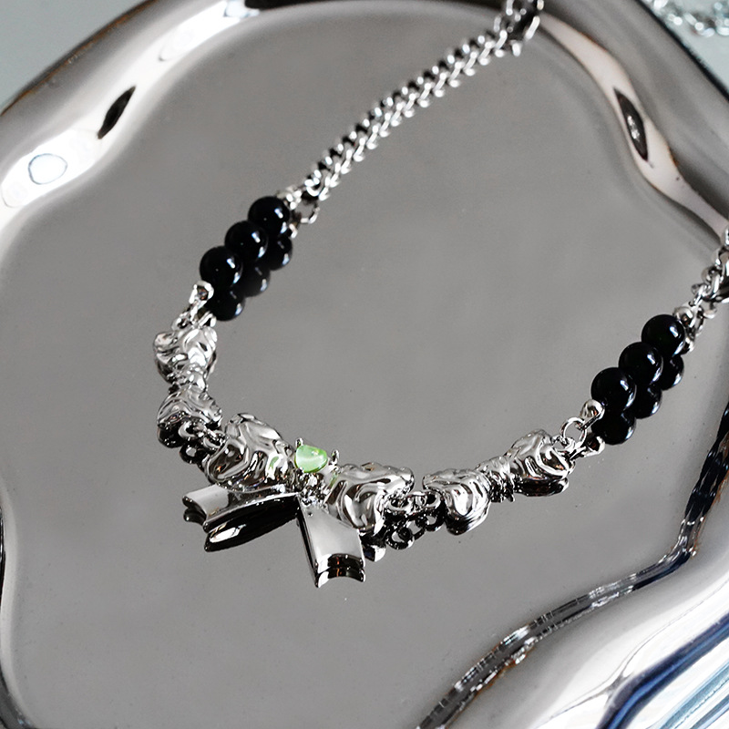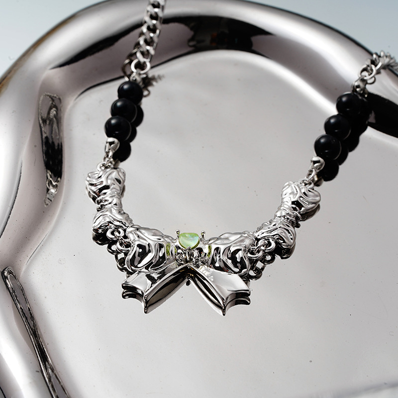 蝴蝶结项链女ins小众设计感个性甜酷拼接毛衣链气质高级感锁骨链