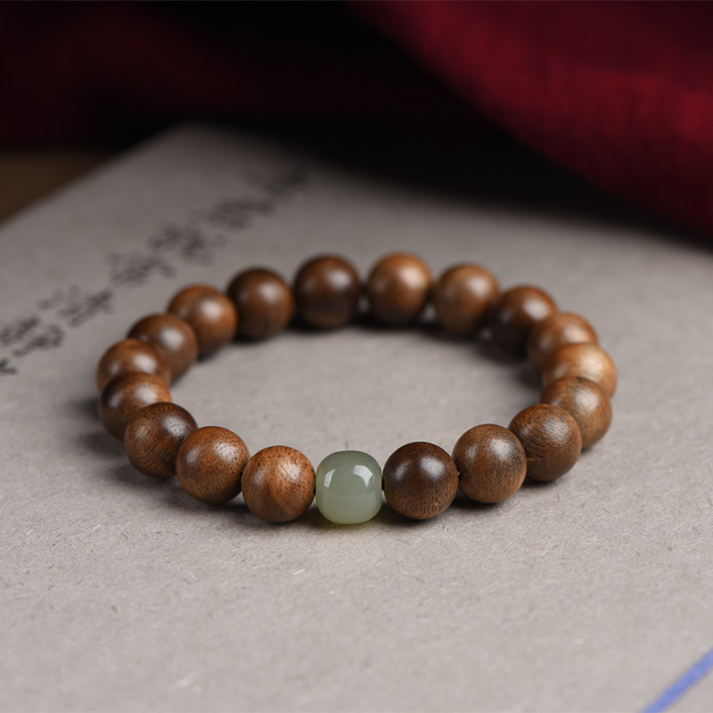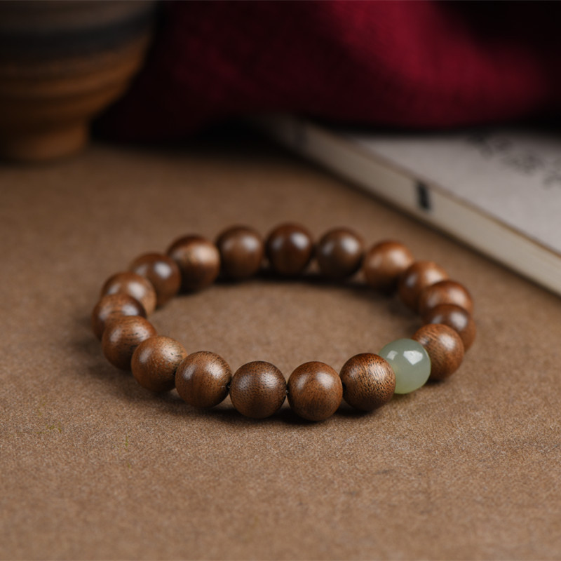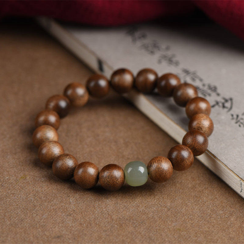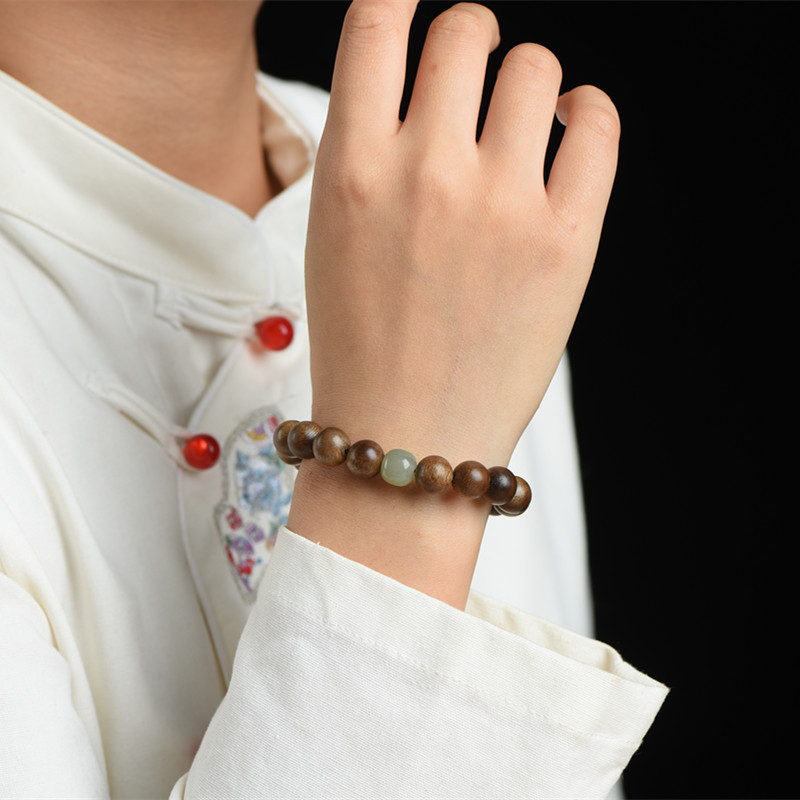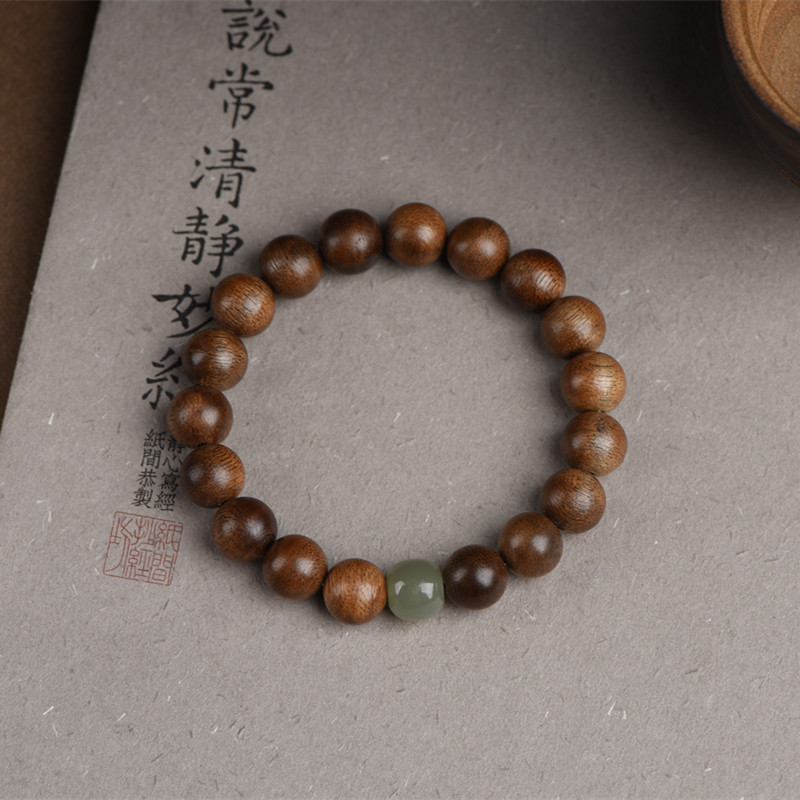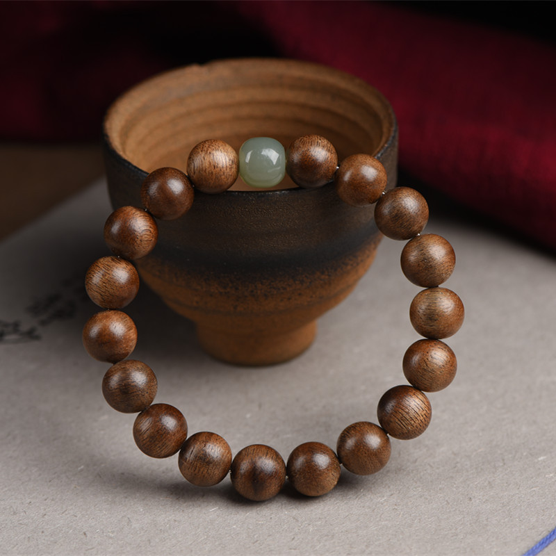 加里曼丹沉香手串单圈和田玉手链女黑油老料佛珠念珠情侣文玩檀香
