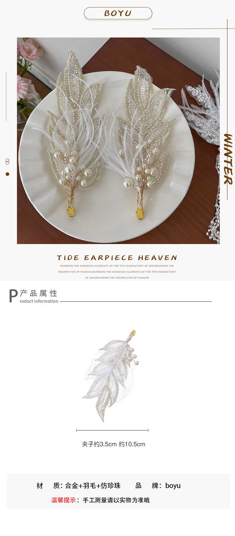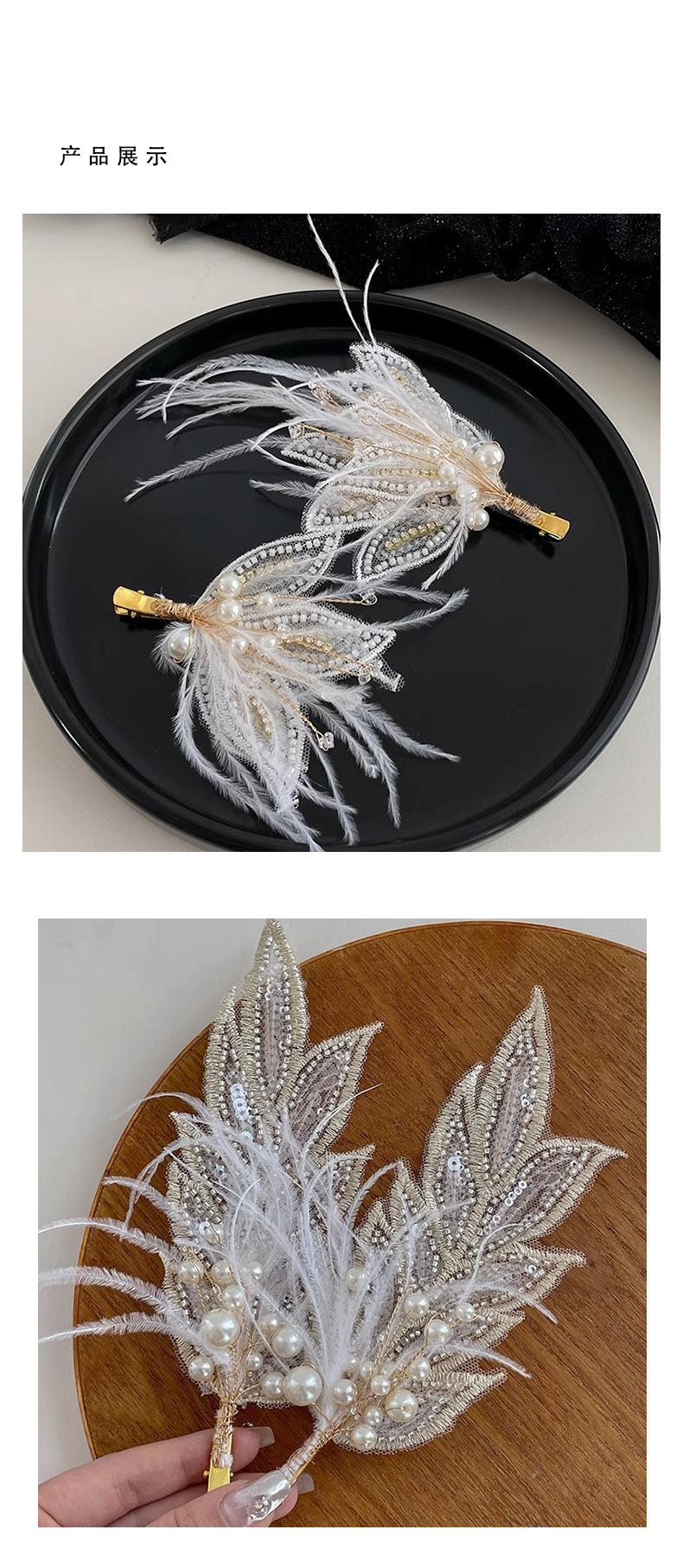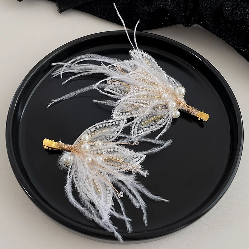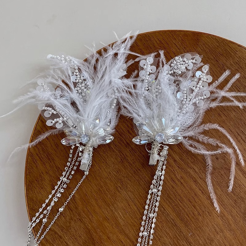儿童羽毛发夹女童高级感流苏一字夹2023新款碎发夹子表演发卡头饰