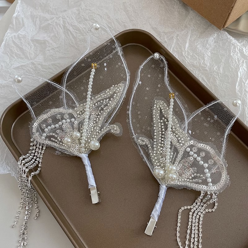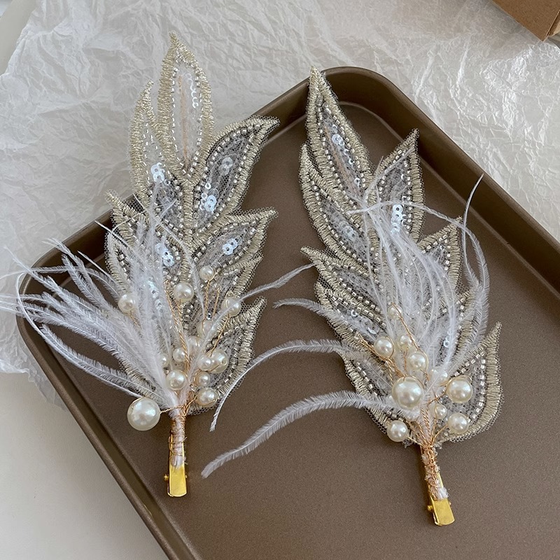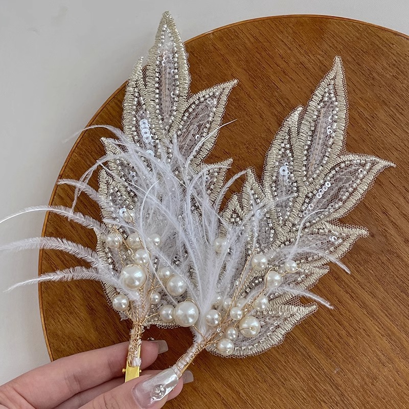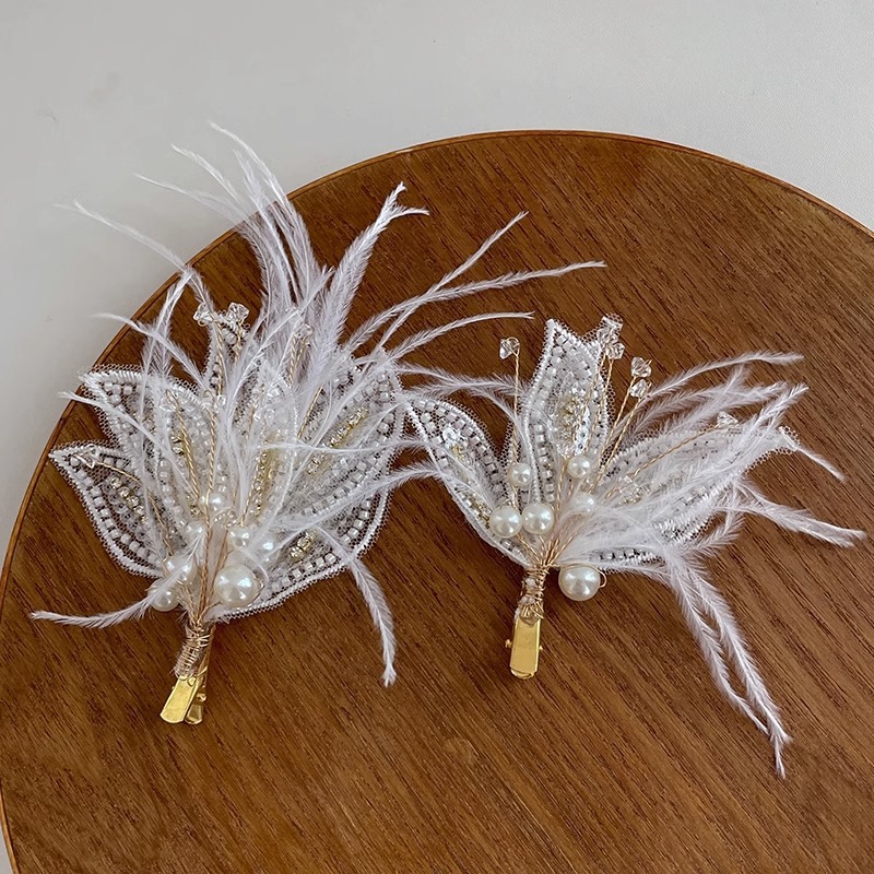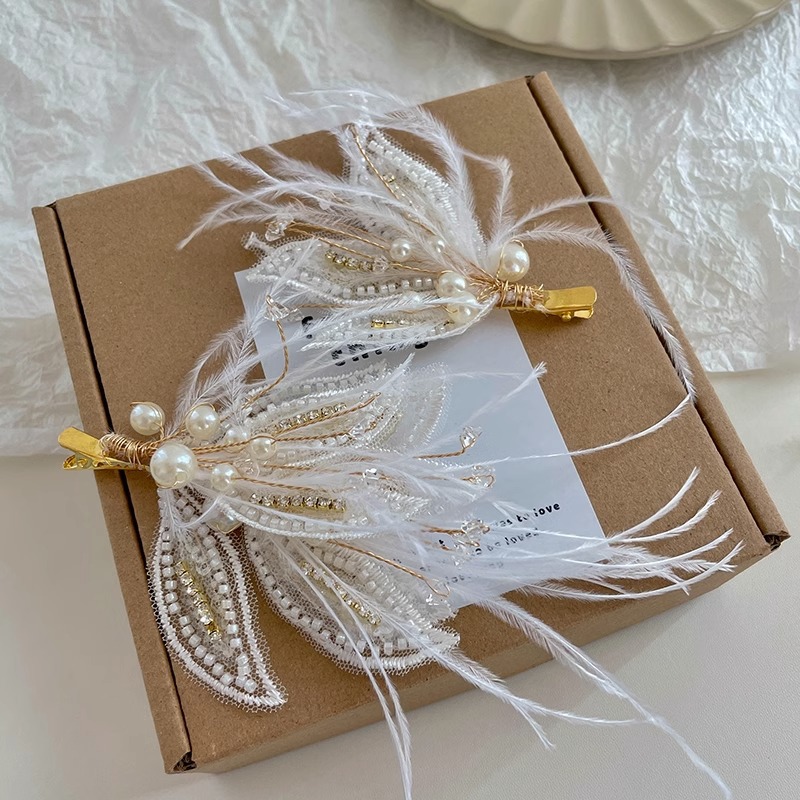 儿童羽毛发夹女童高级感流苏一字夹2023新款碎发夹子表演发卡头饰