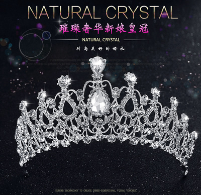 爆款欧美水晶钻新娘婚礼晚宴头饰 结婚头箍发饰表演头冠车展皇冠