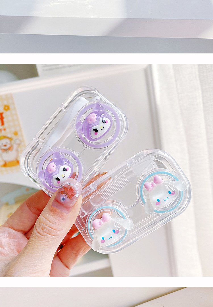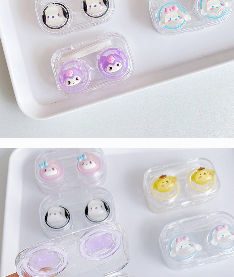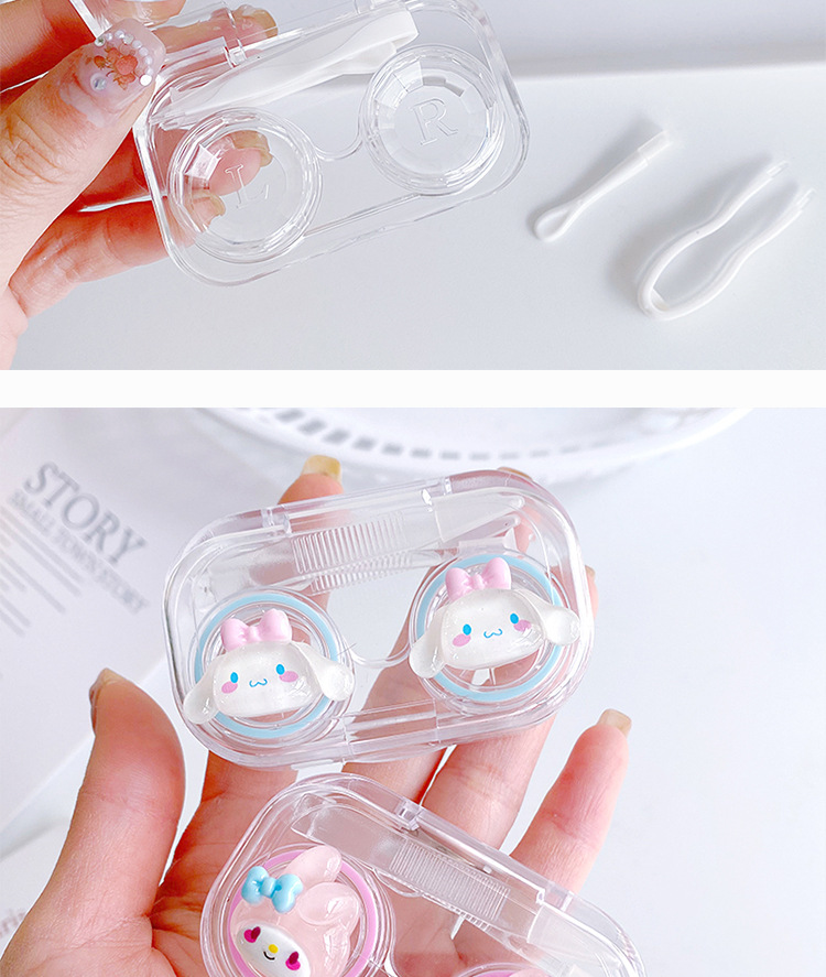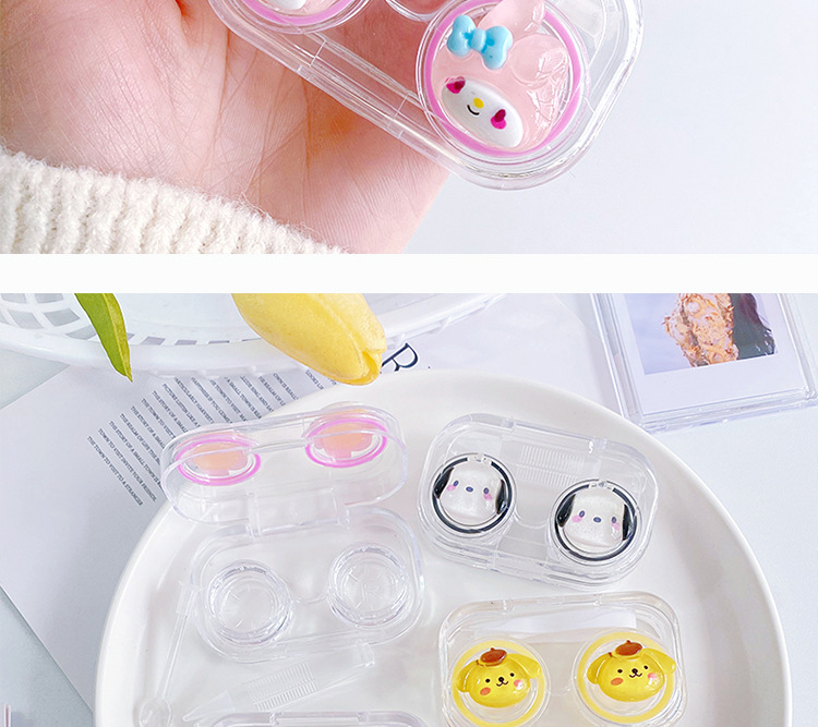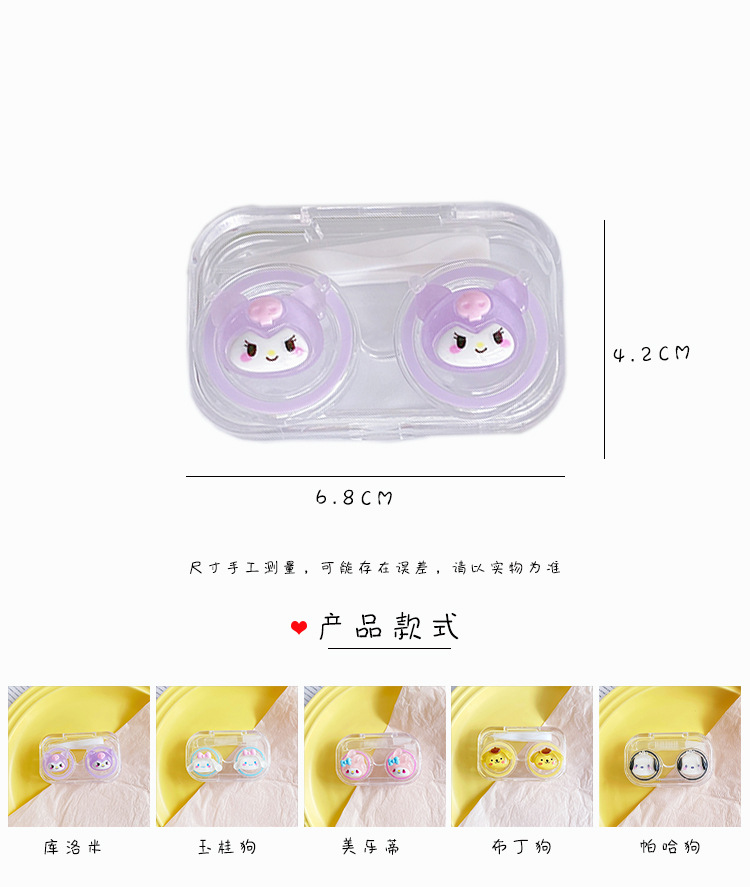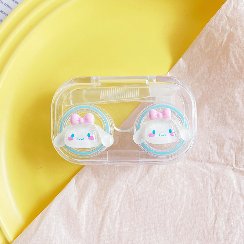 韩风简约透明小狗美瞳盒小巧可爱卡通细闪立体装饰隐形眼镜伴侣盒