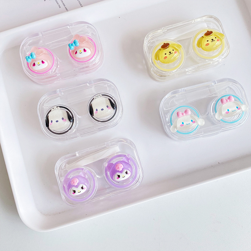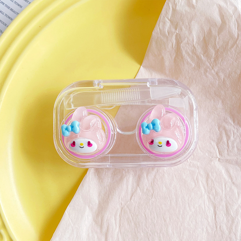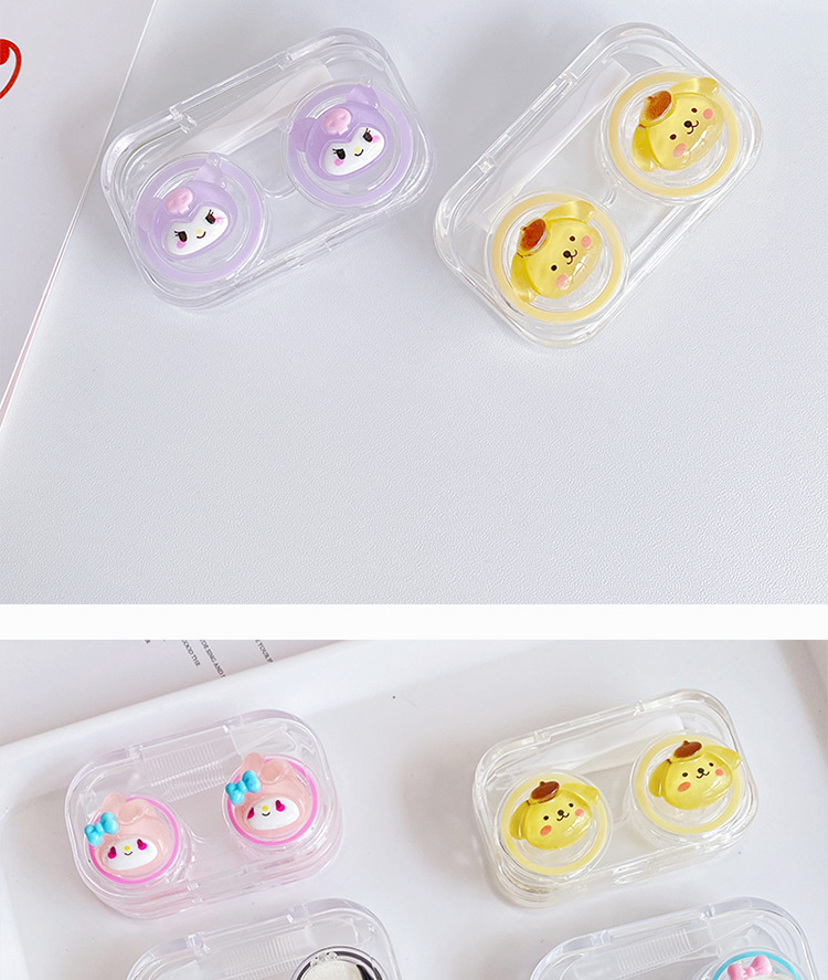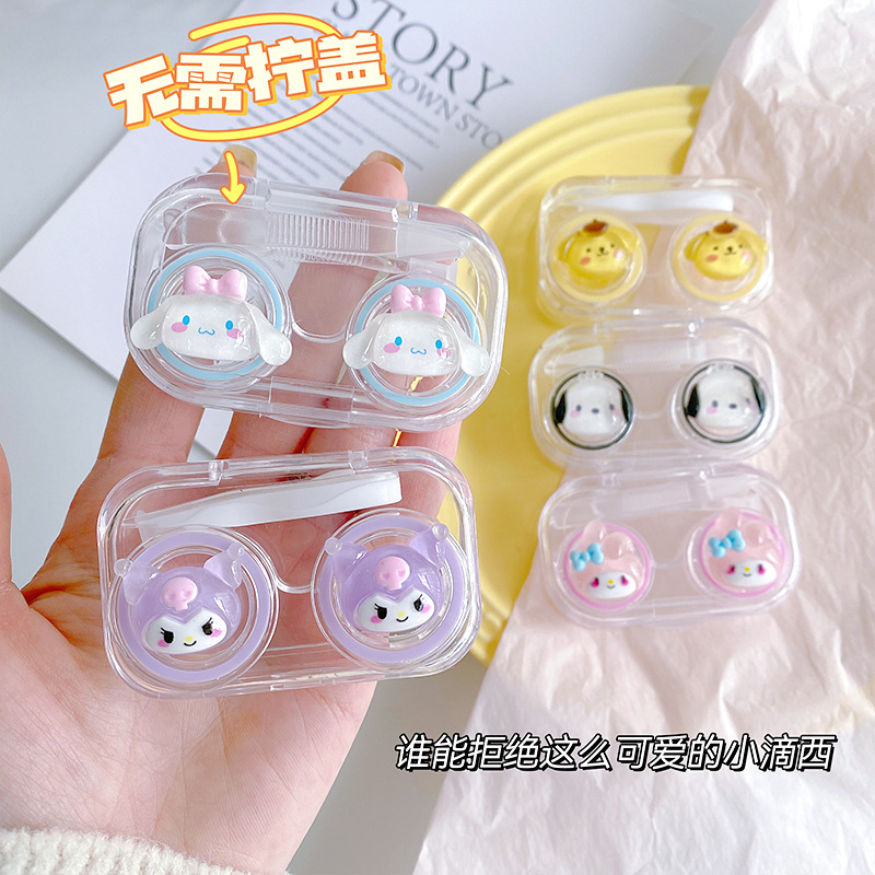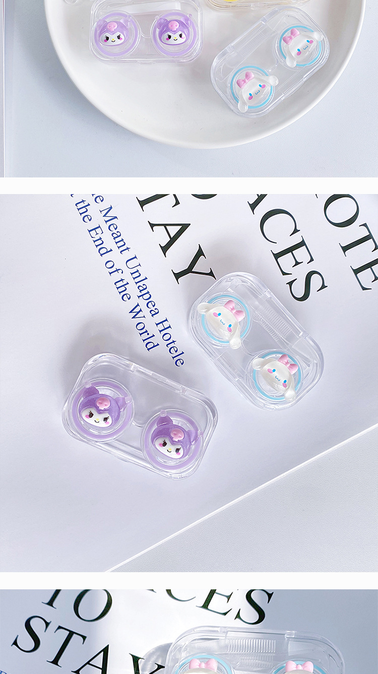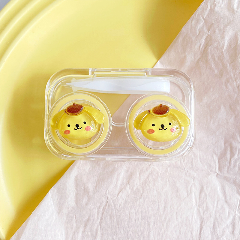 韩风简约透明小狗美瞳盒小巧可爱卡通细闪立体装饰隐形眼镜伴侣盒