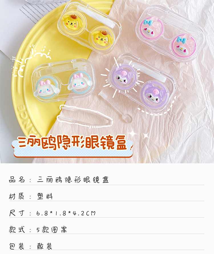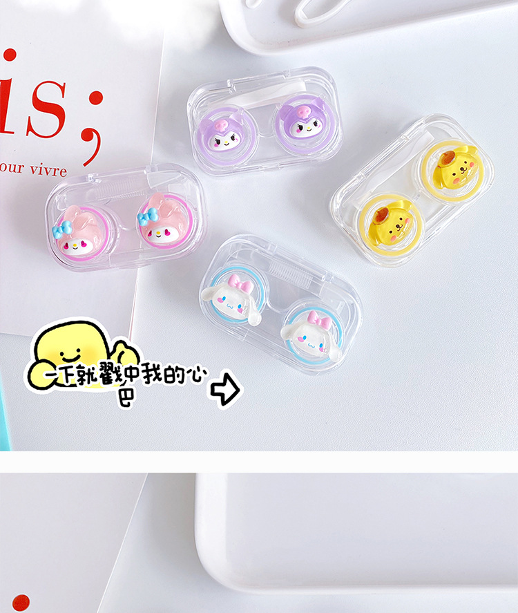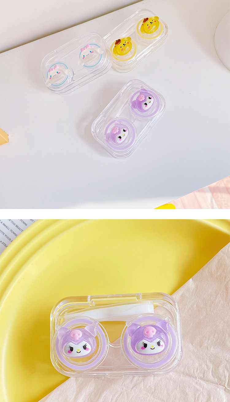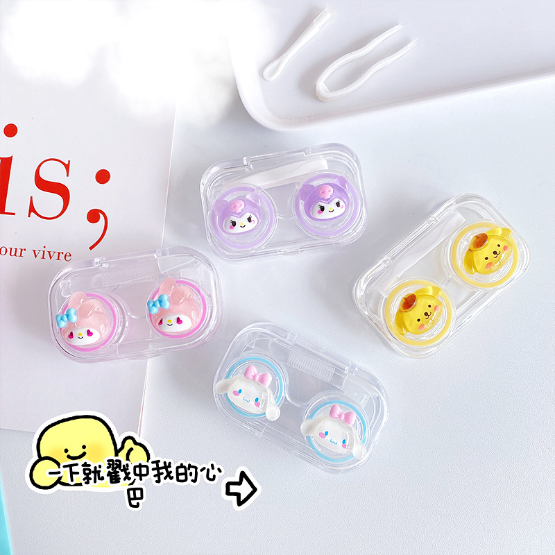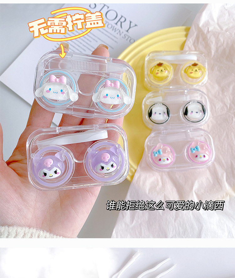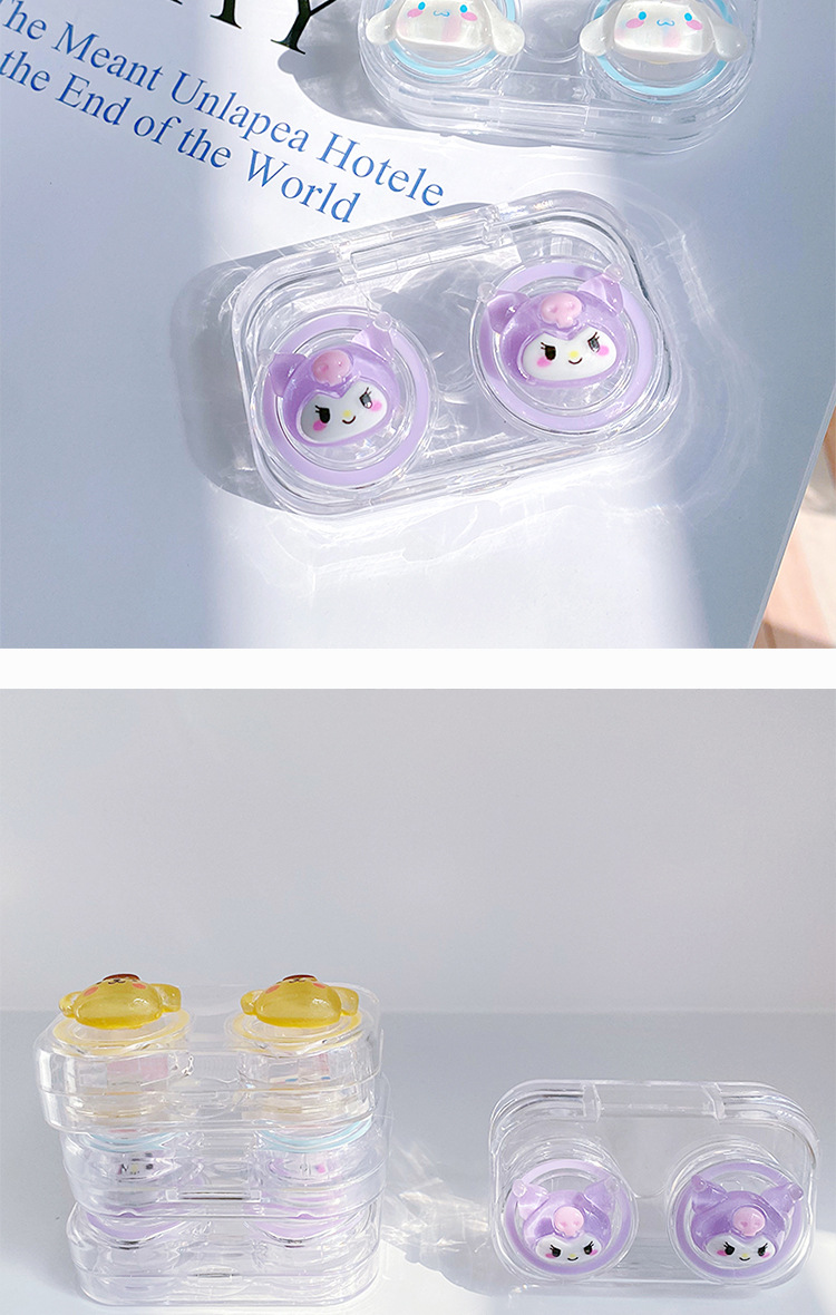 韩风简约透明小狗美瞳盒小巧可爱卡通细闪立体装饰隐形眼镜伴侣盒