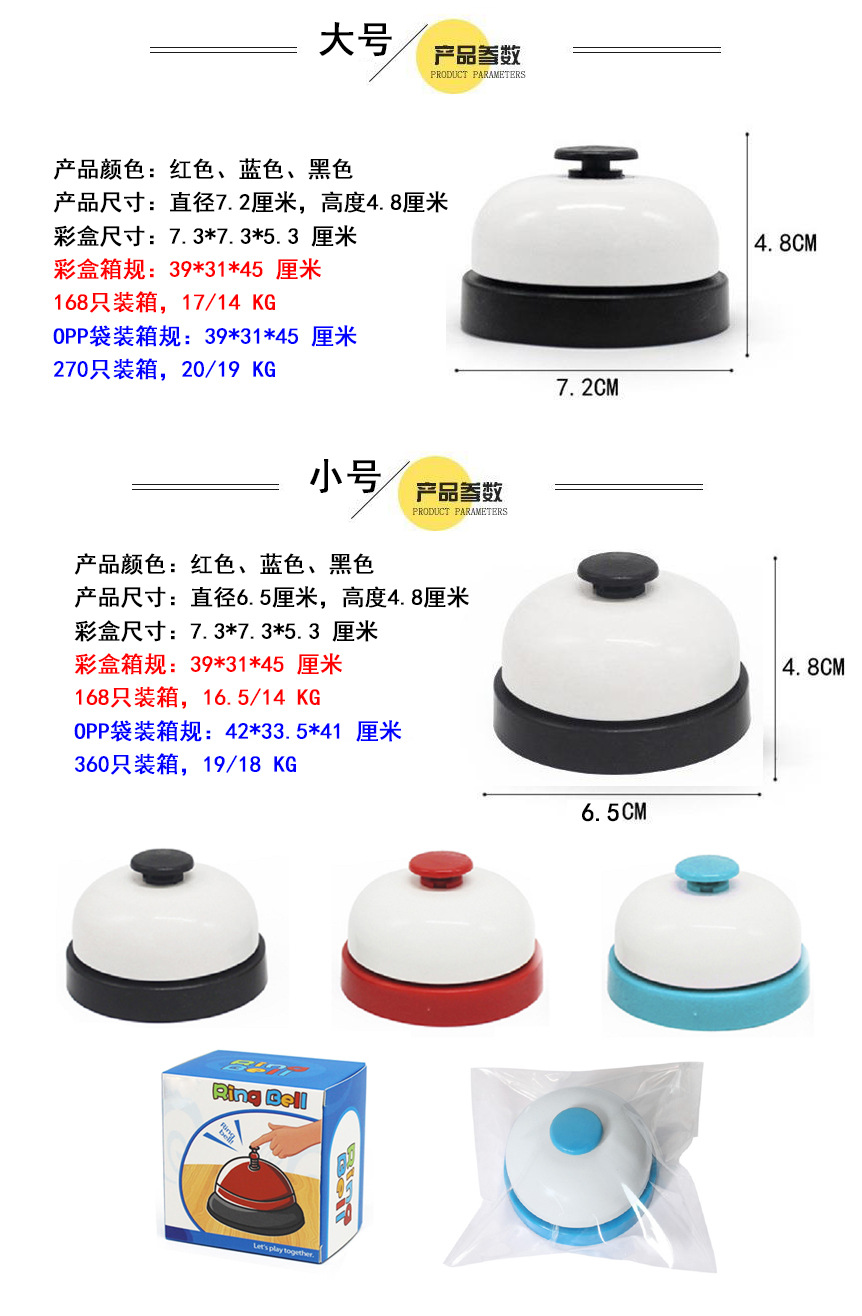 大号小号两款 手按传唤铃铛 竞赛抢答铃前台叫人宠物按铃玩具配件