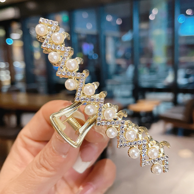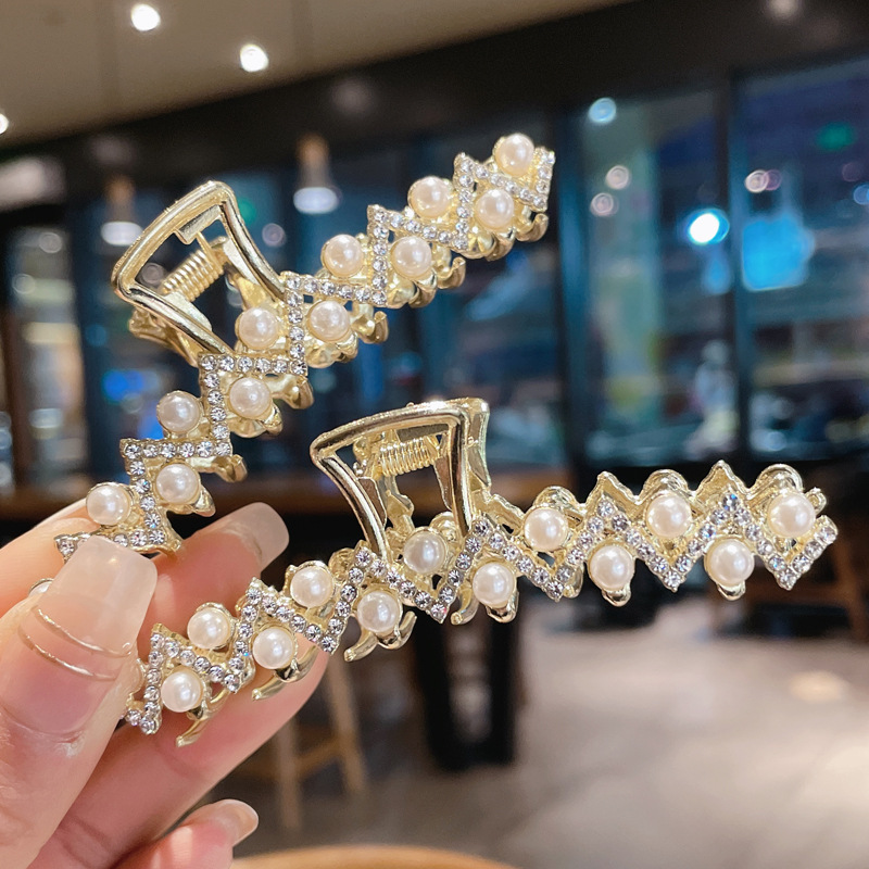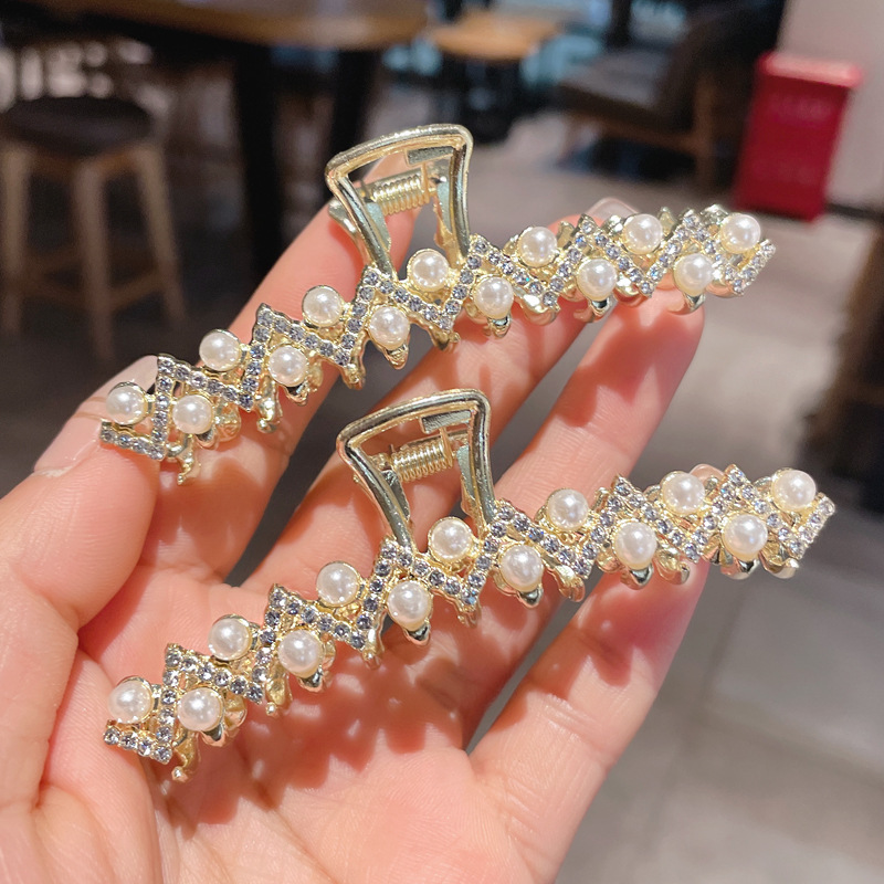 网红发饰日韩珍珠水钻抓夹新款金属水钻抓夹发夹夹子发卡
