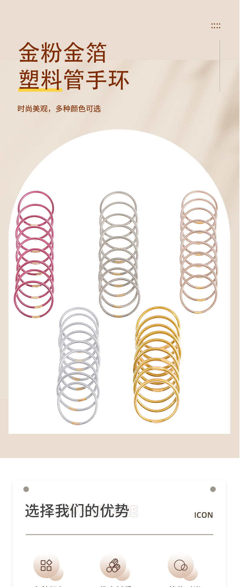 新款多色金粉金箔塑料手环手镯纯铜色光圈跨境欧美亚马逊