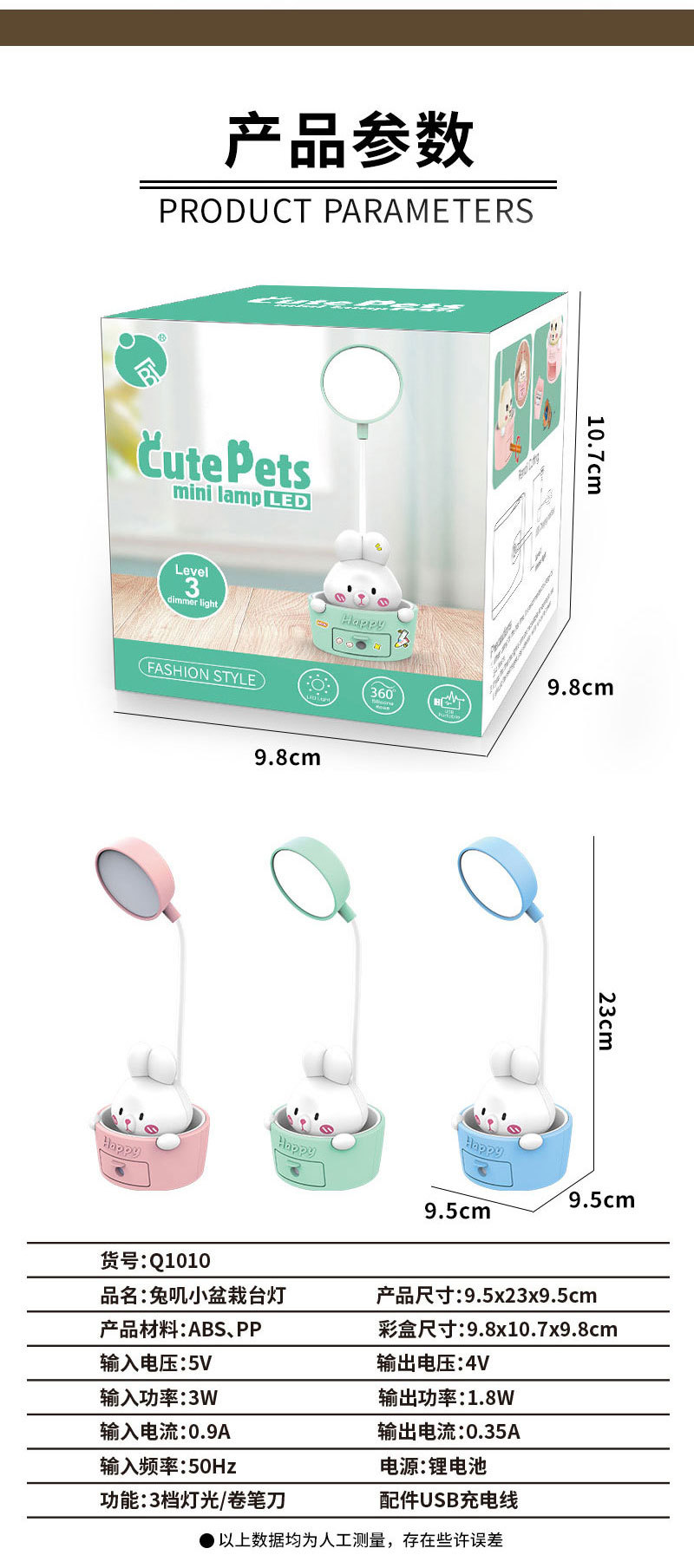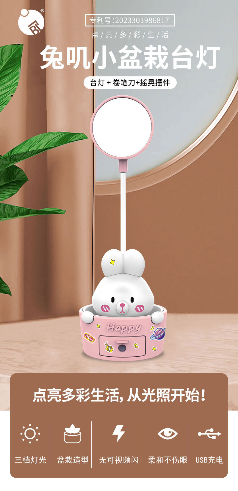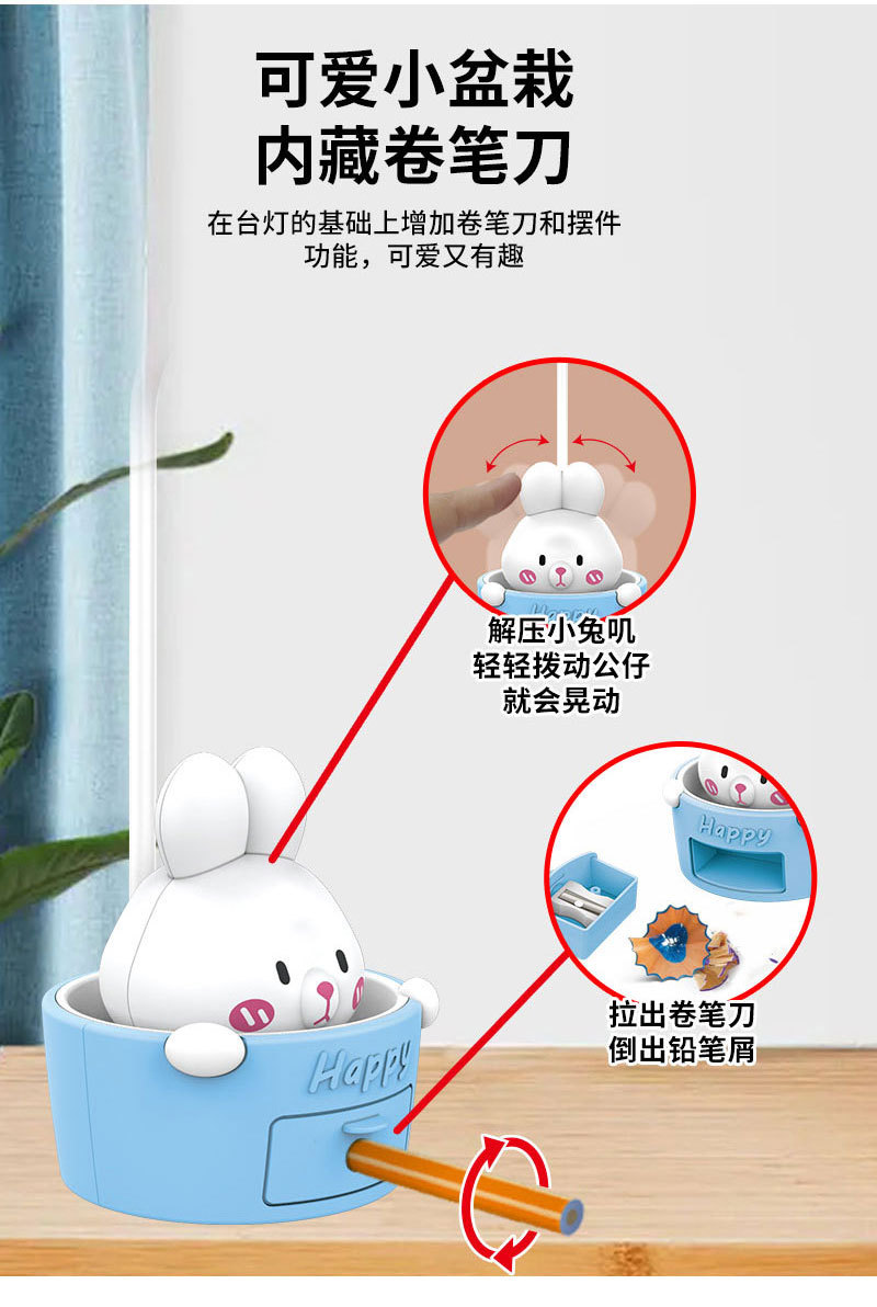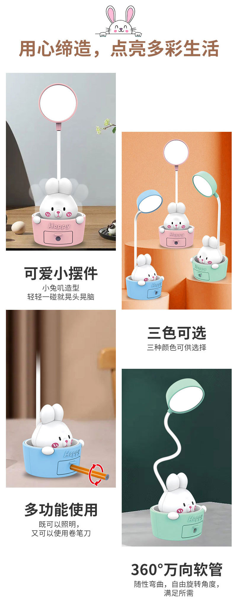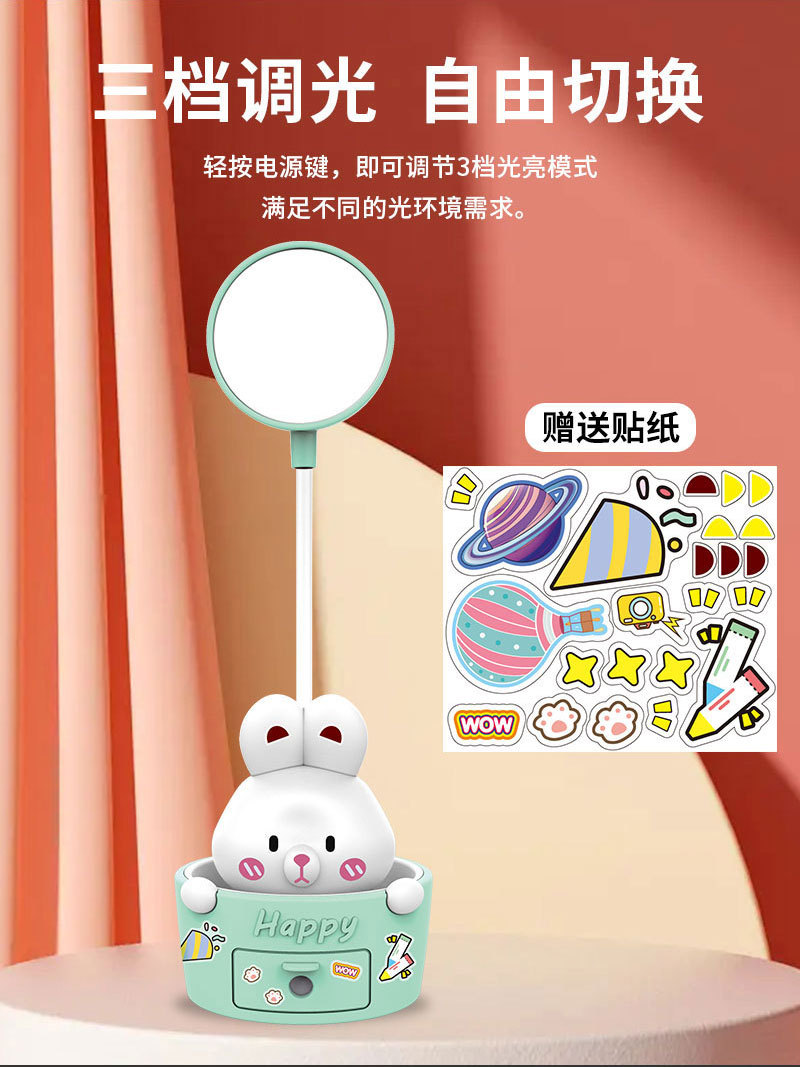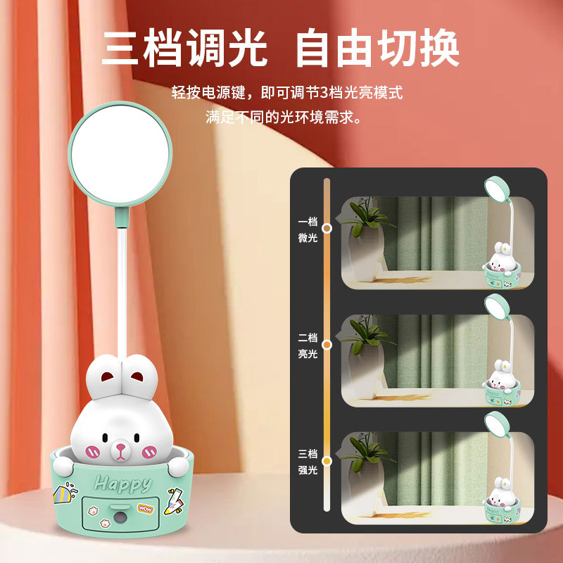 卡通解压胡萝卜台灯多功能学习护眼3档小夜灯USB充电学生阅读灯