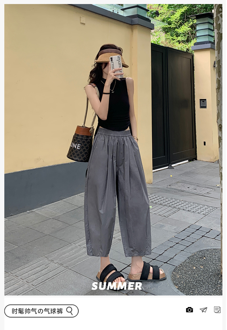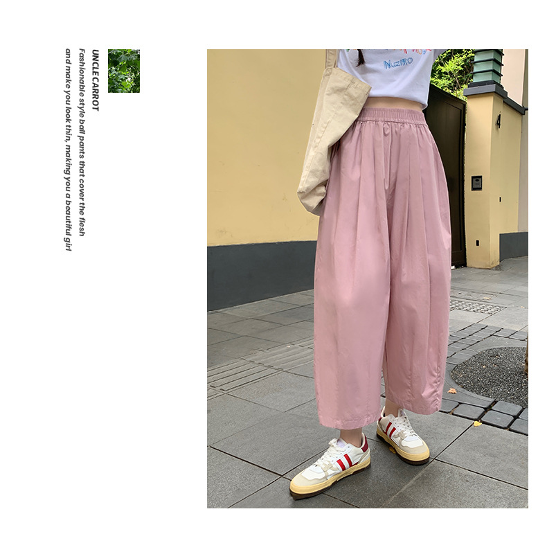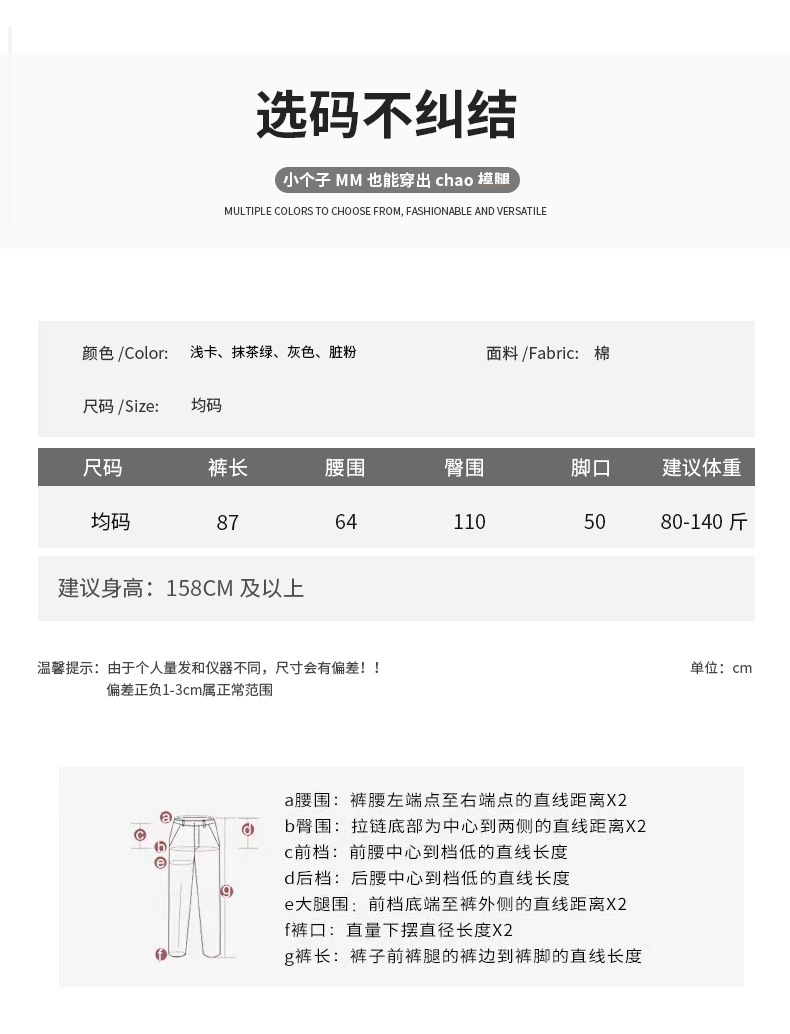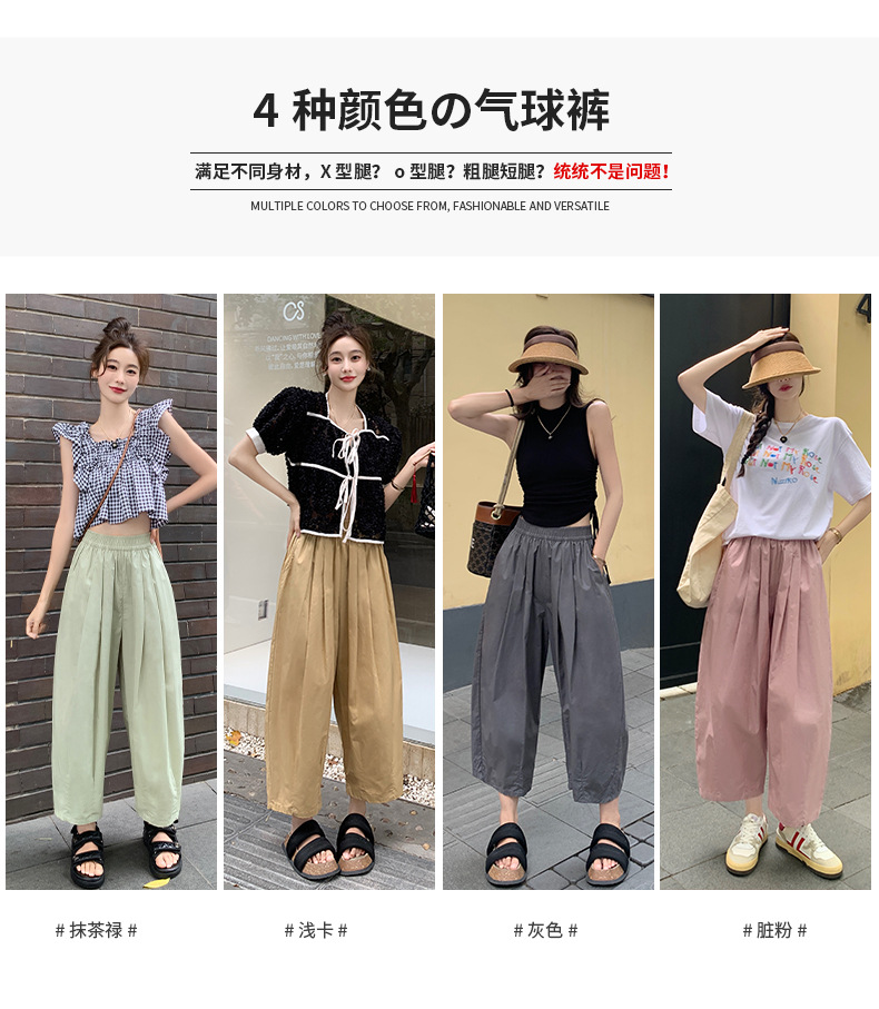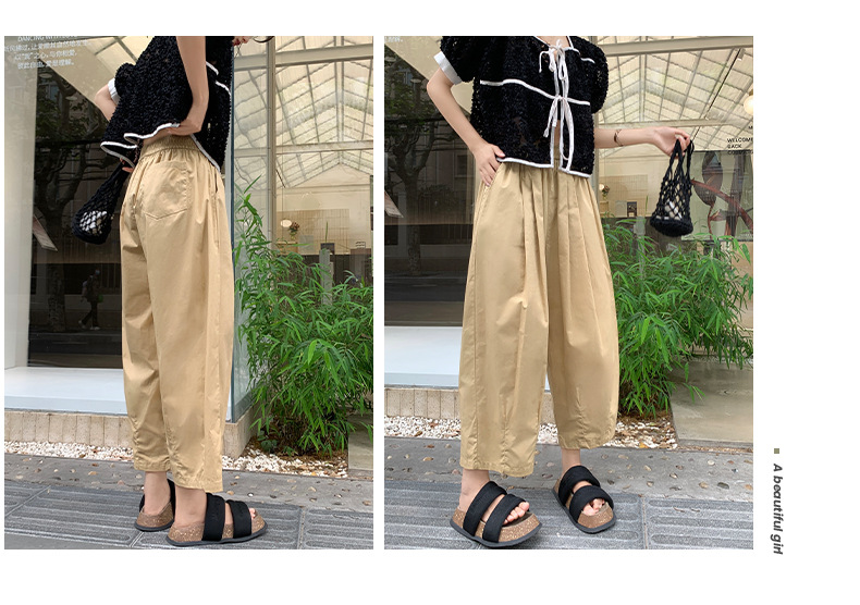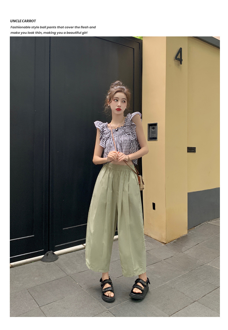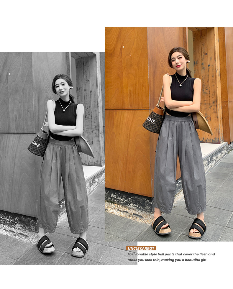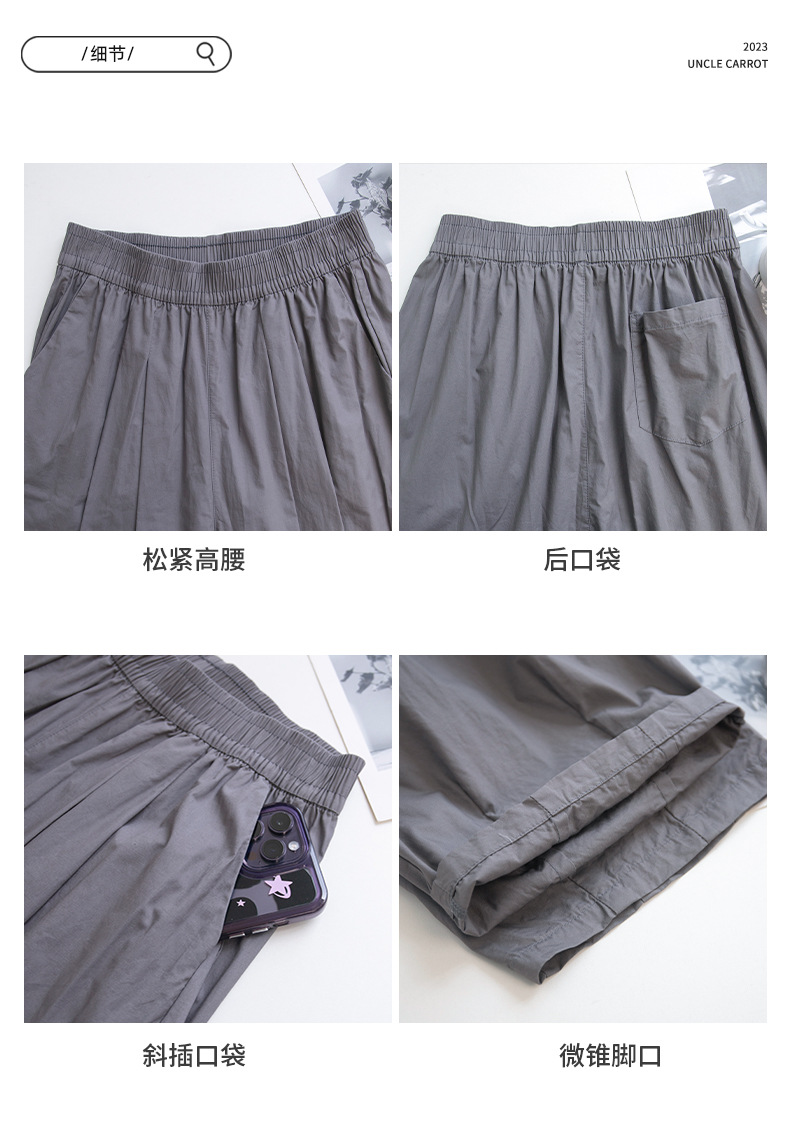 【纯棉】休闲工装裤女夏高腰显瘦哈伦萝卜裤宽松直筒阔腿气球裤