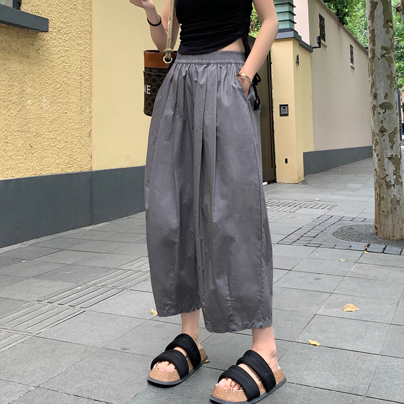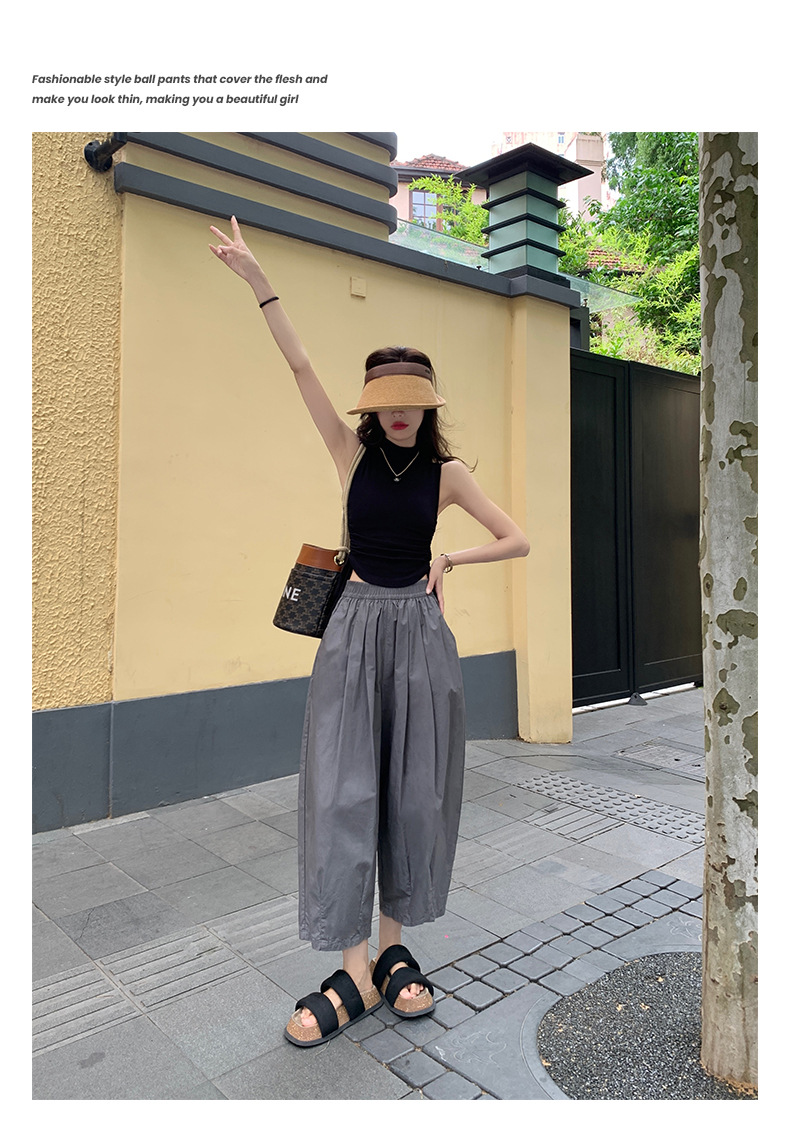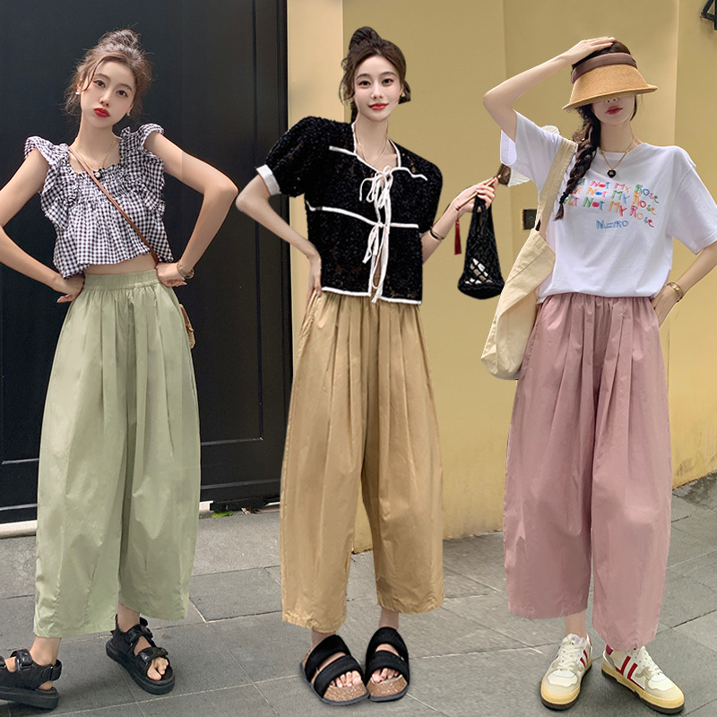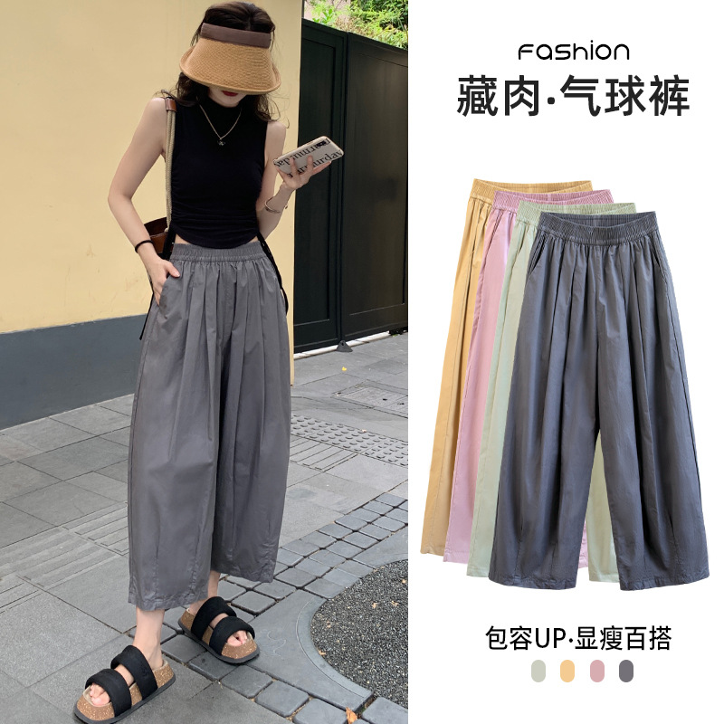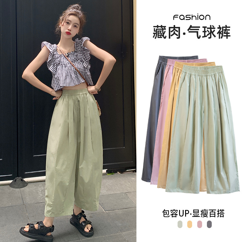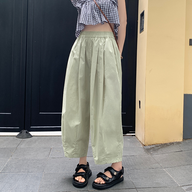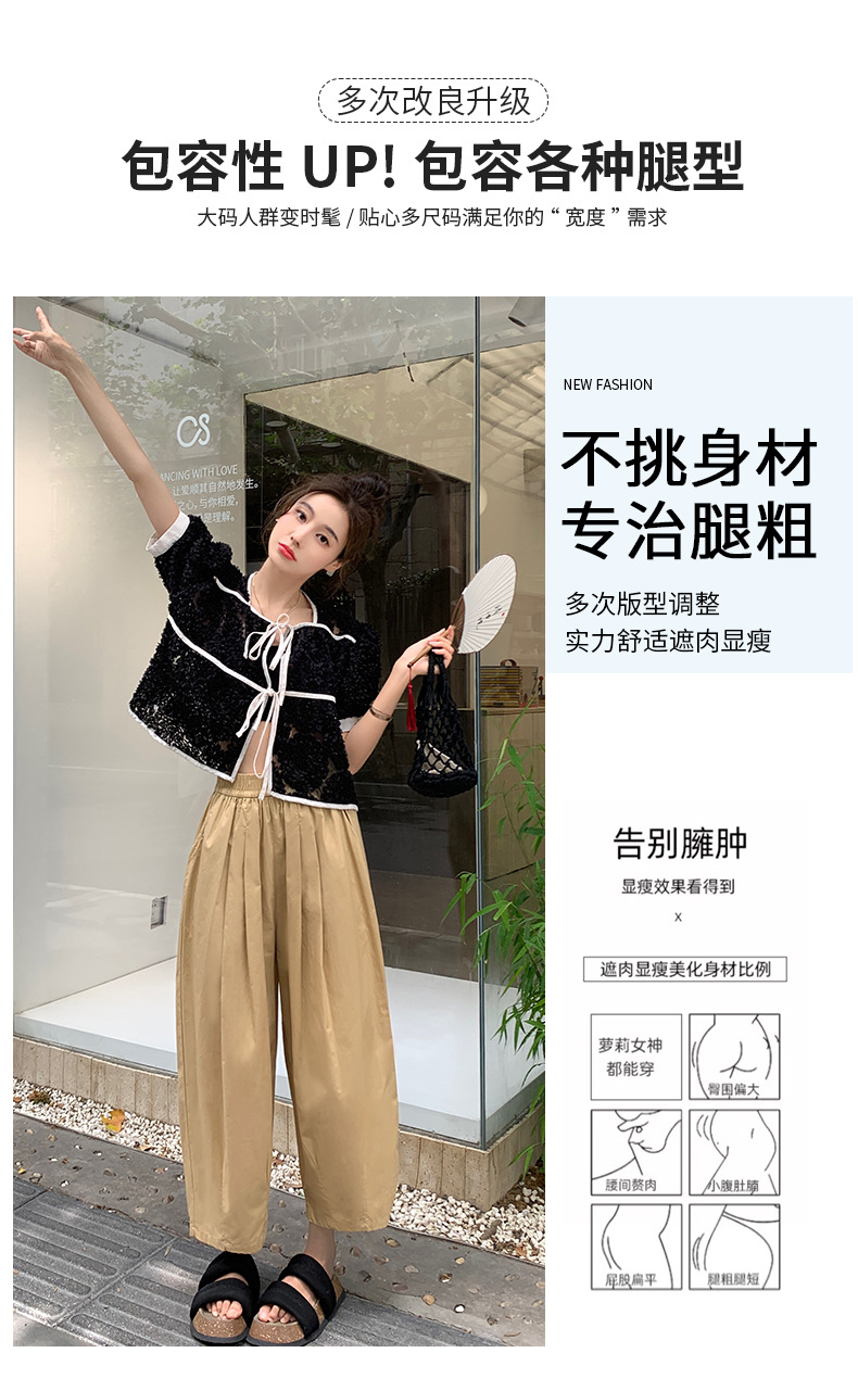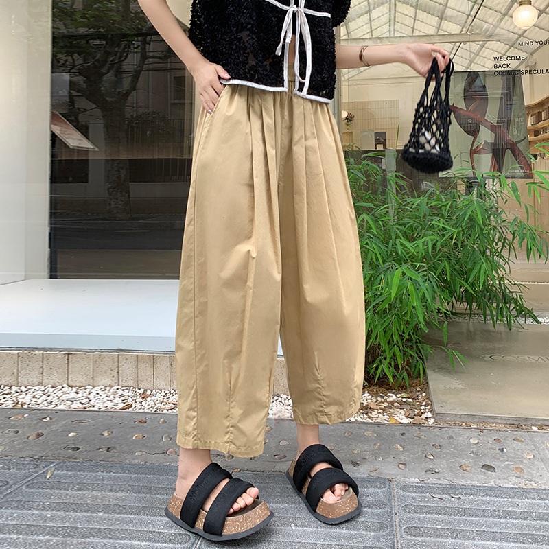 【纯棉】休闲工装裤女夏高腰显瘦哈伦萝卜裤宽松直筒阔腿气球裤