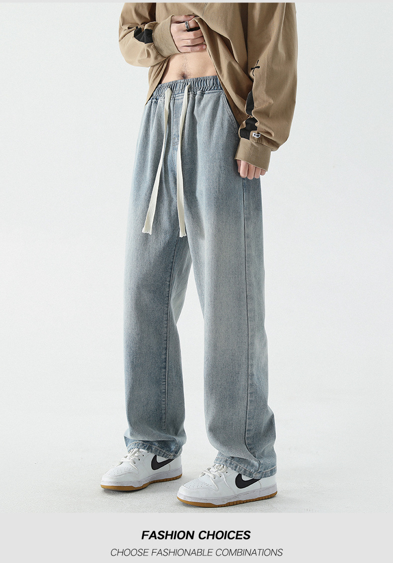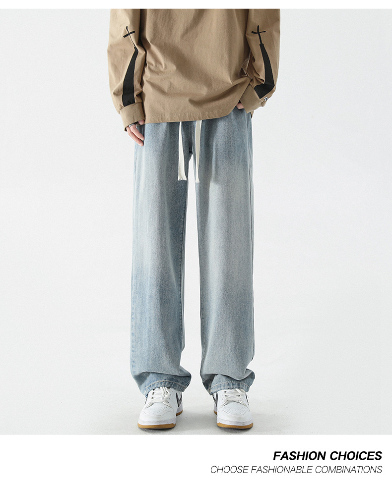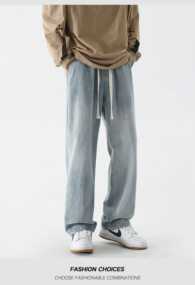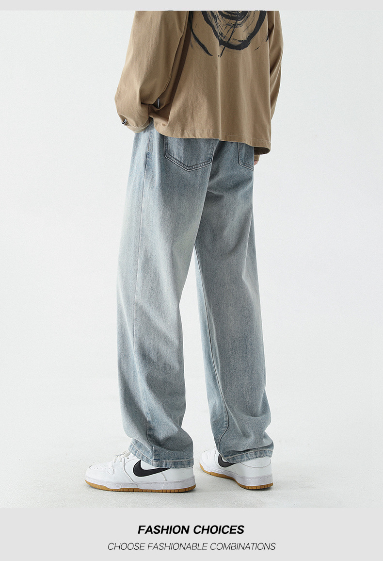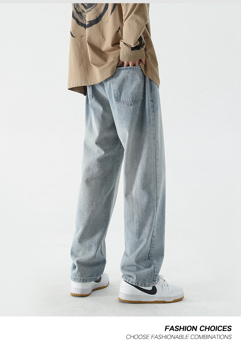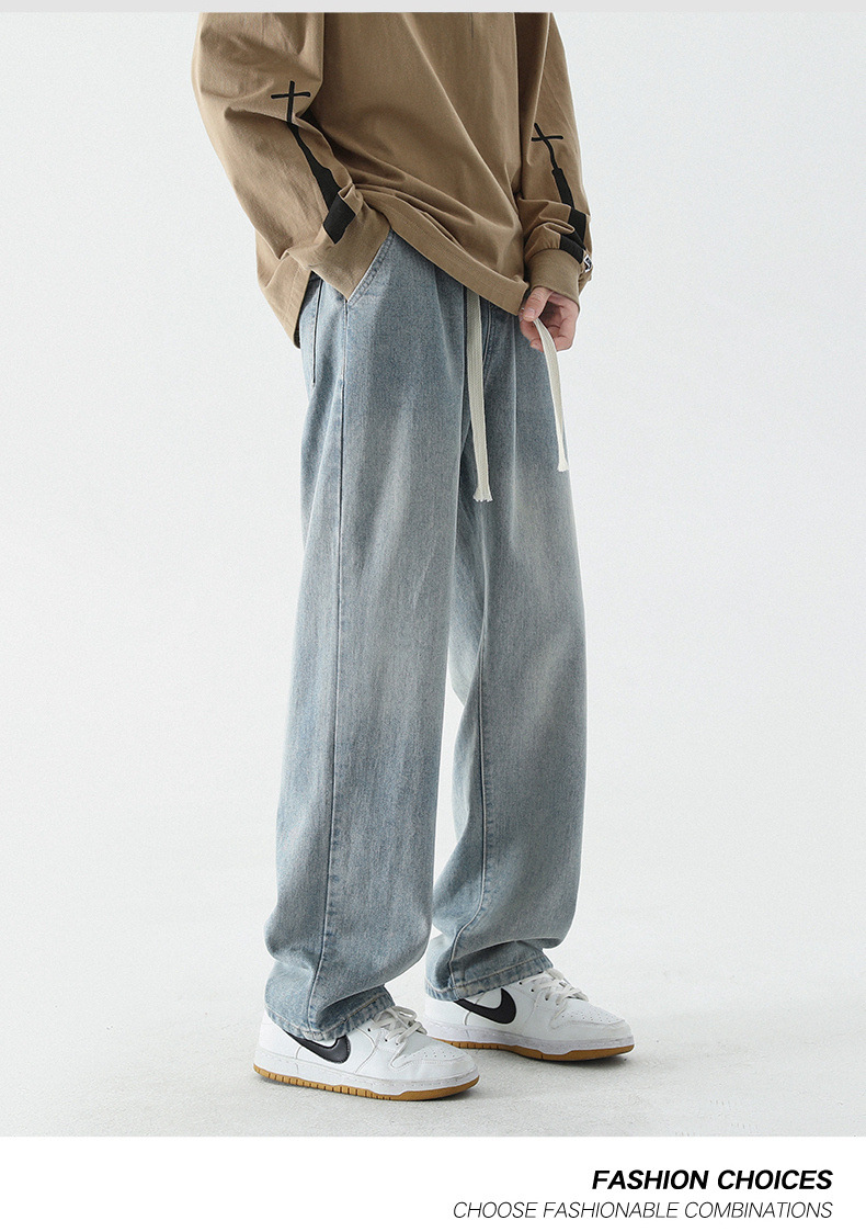 牛仔裤男士春夏季潮流百搭直筒宽松休闲长裤美式高街阔腿牛仔裤子
