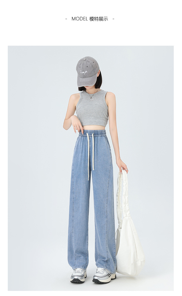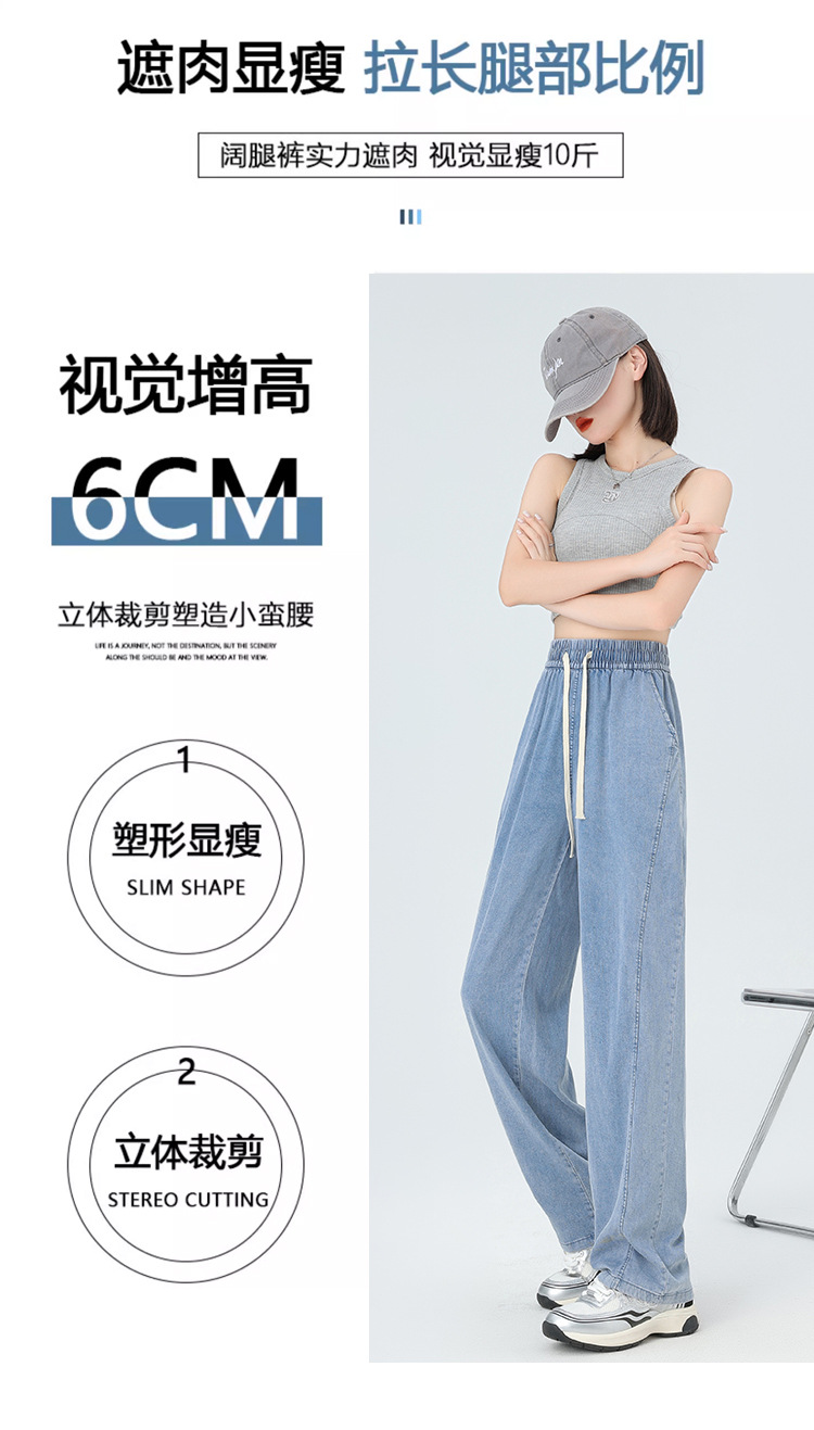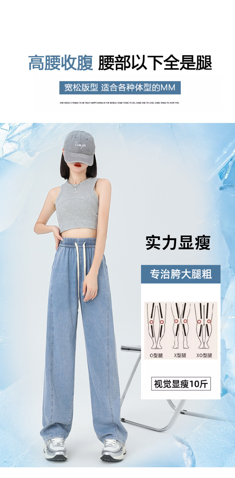 天丝牛仔裤女2023春夏季新款高腰垂感直筒设计感香蕉裤显