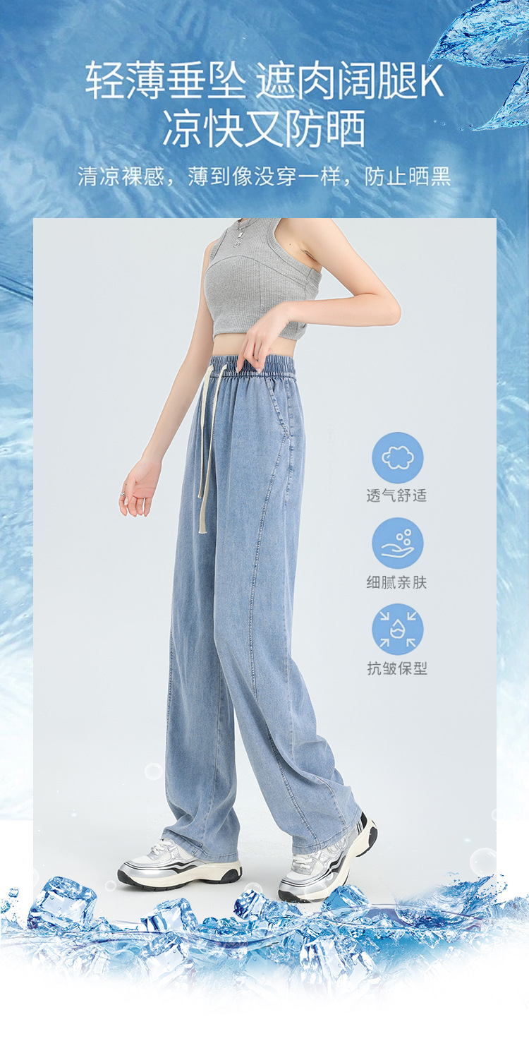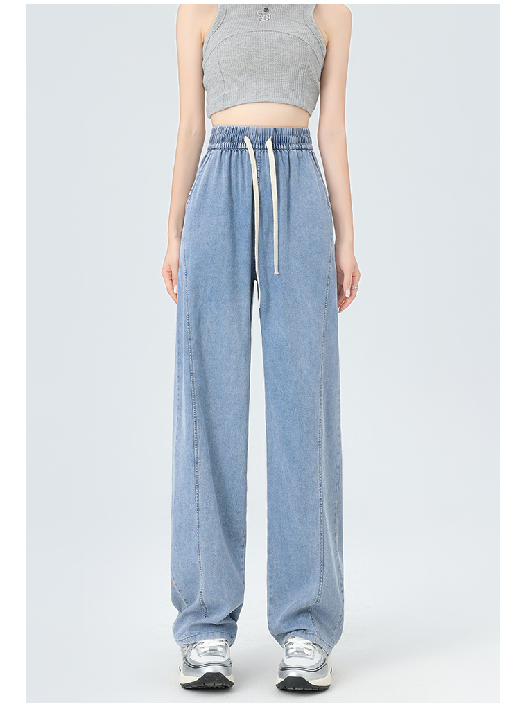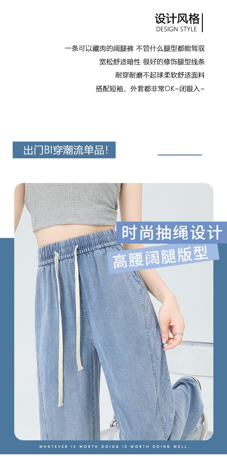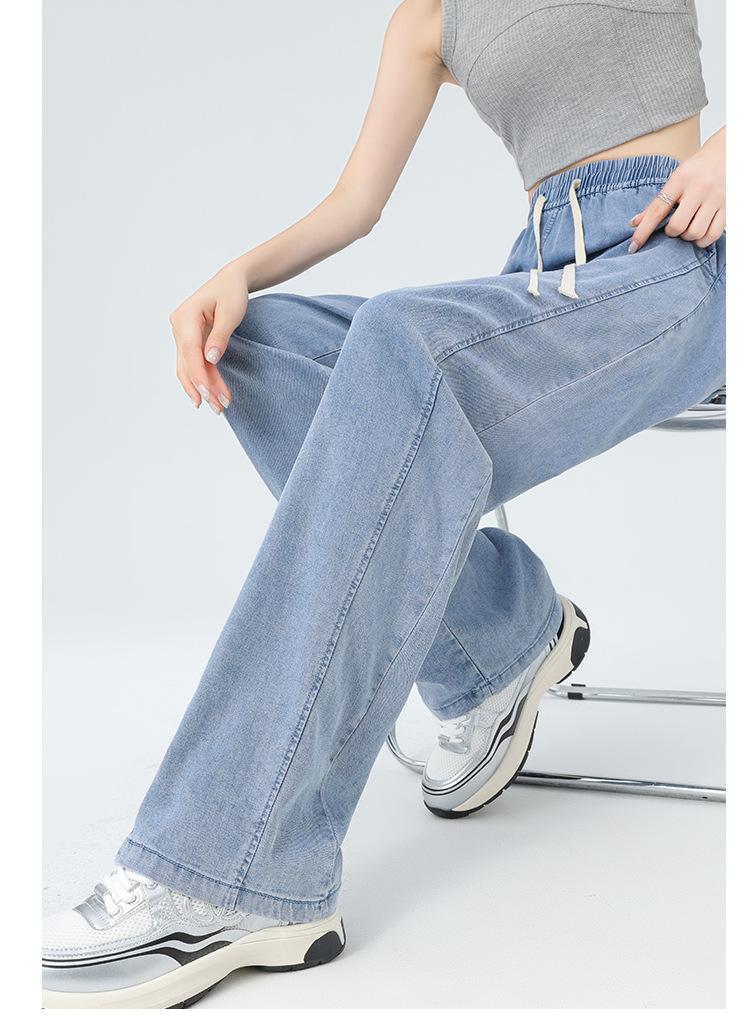 天丝牛仔裤女2023春夏季新款高腰垂感直筒设计感香蕉裤显