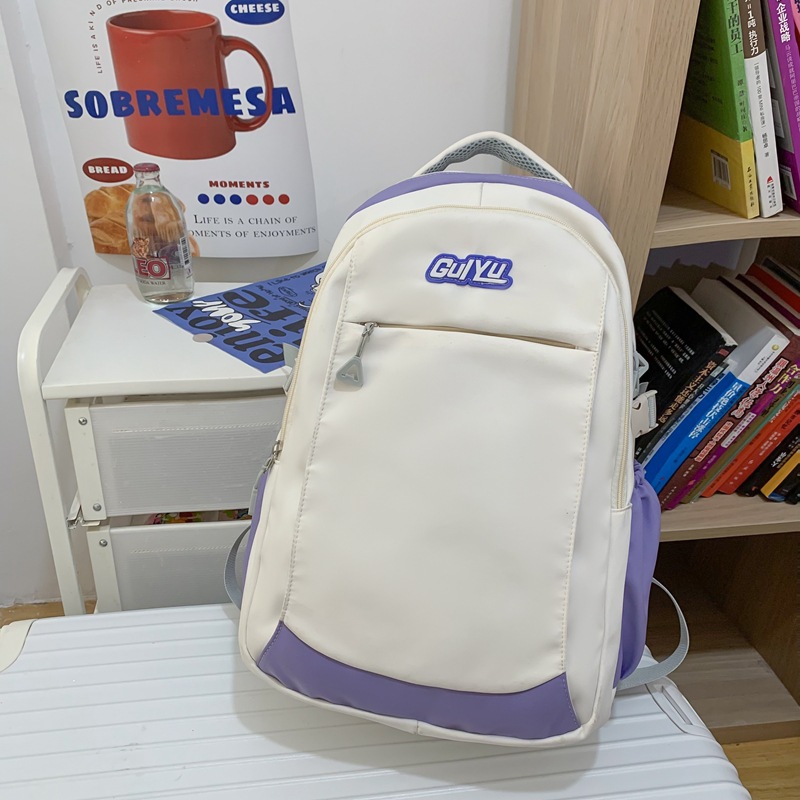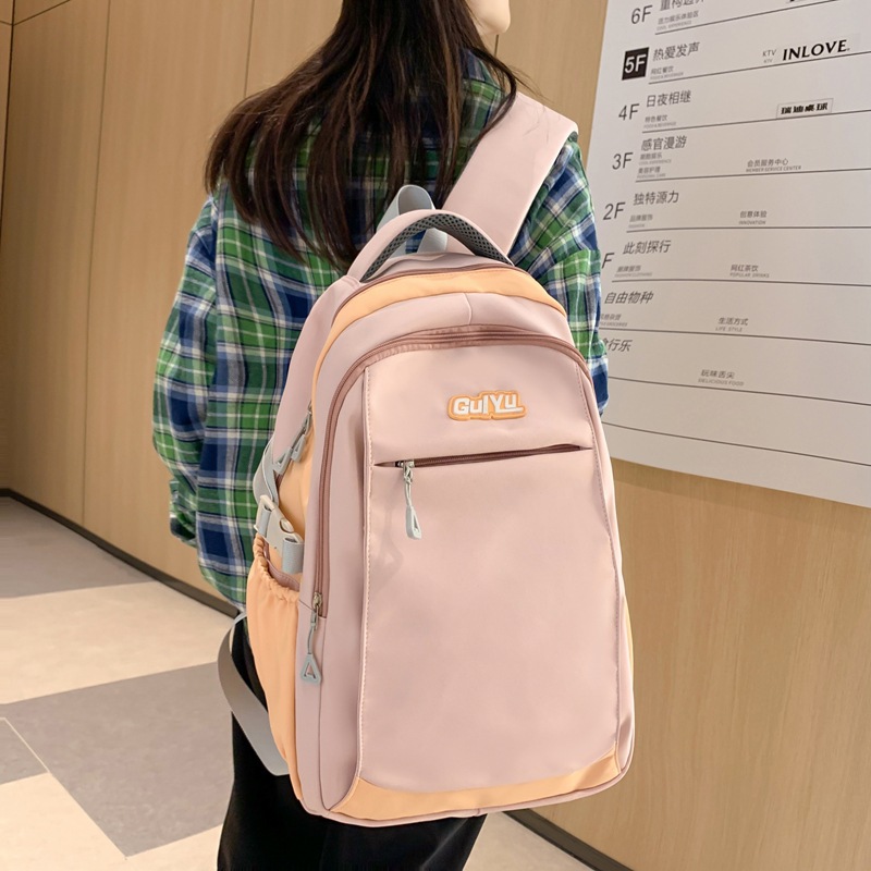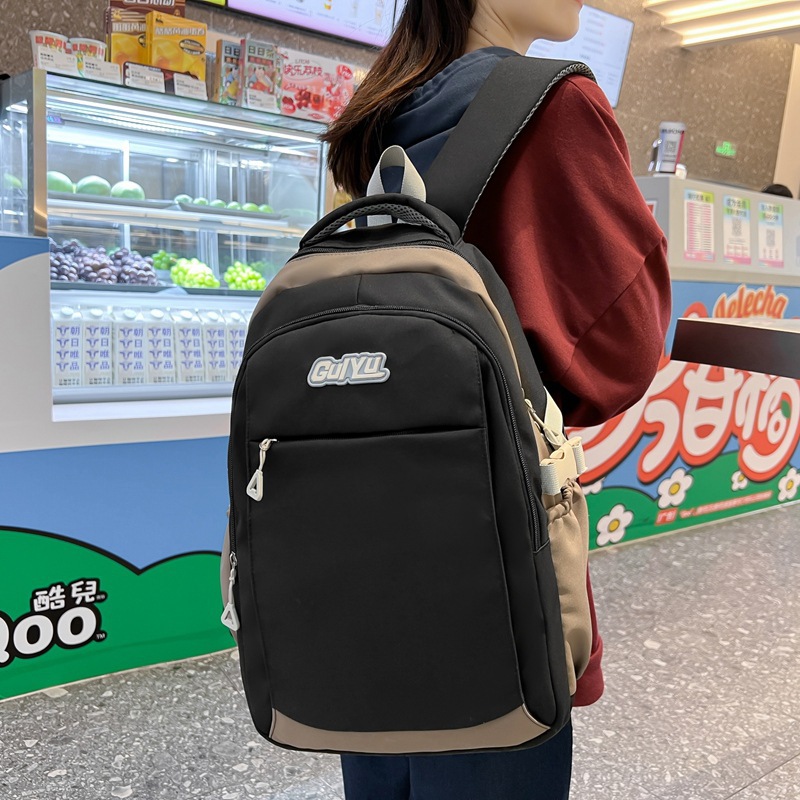 书包中学生女孩韩版简约高中生撞色双肩背包男大容量旅行电脑背包