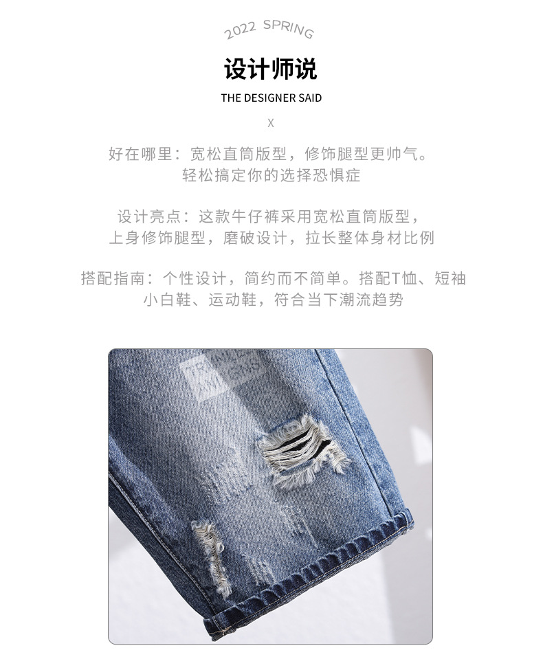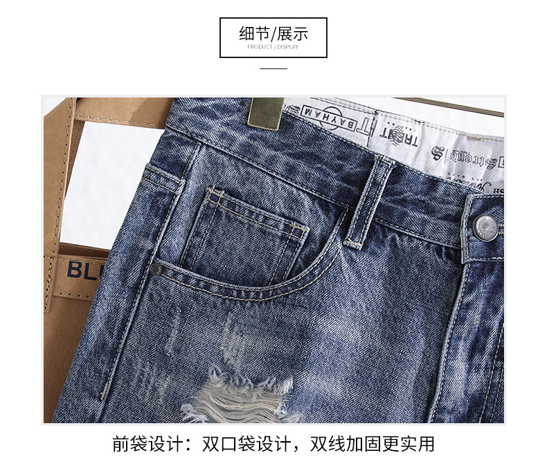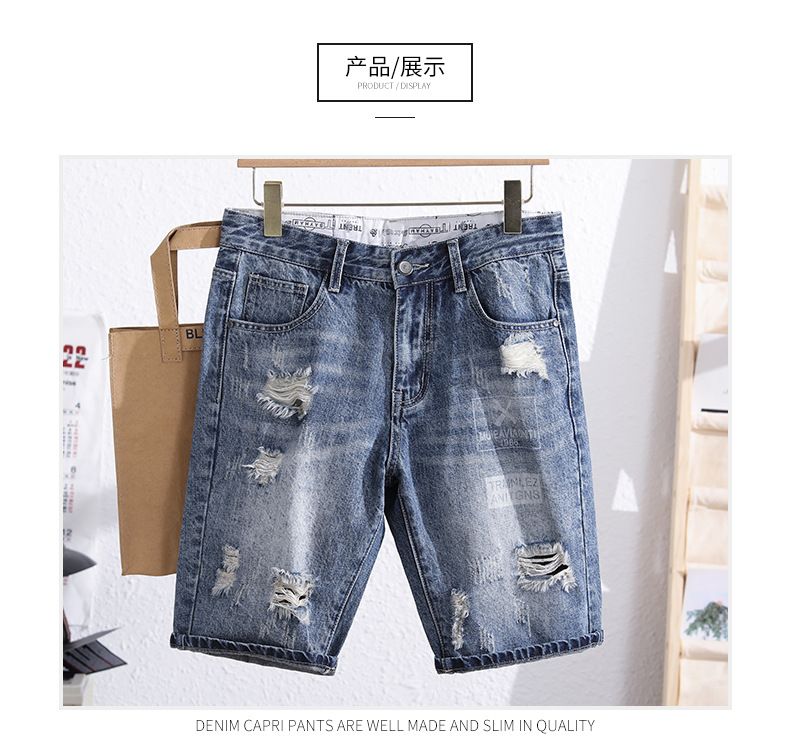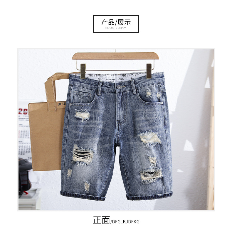 牛仔短裤男士夏季薄款乞丐破洞五分裤潮牌宽松5分中裤子休闲夏天