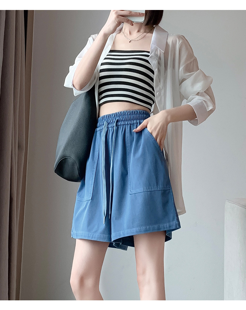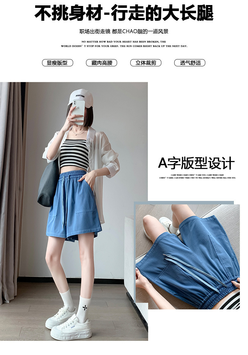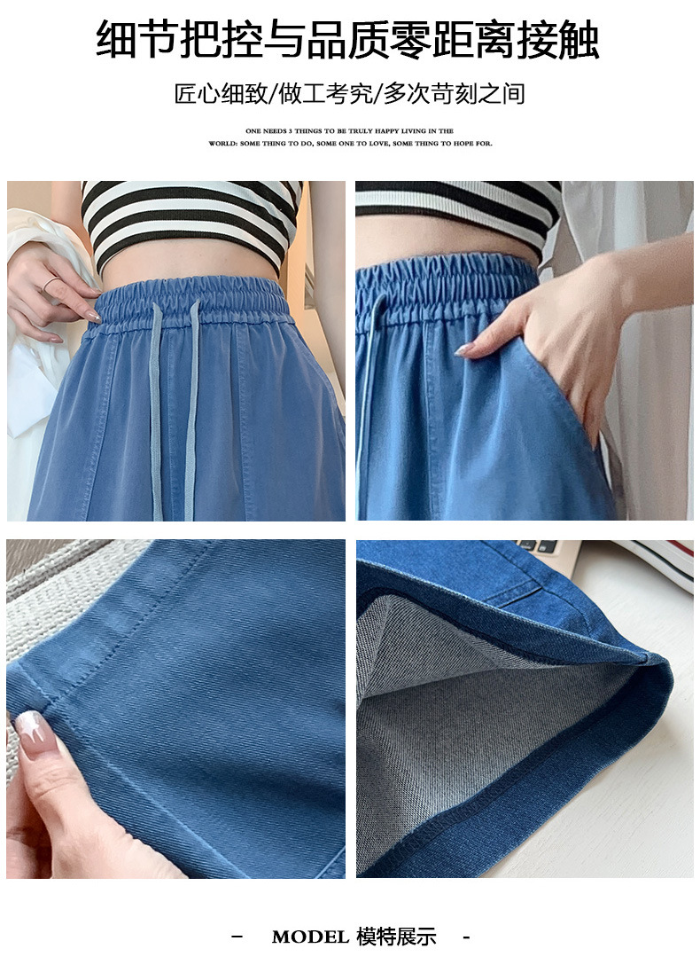 大码水洗天丝牛仔短裤女夏季薄款高腰宽松显瘦五分裤休闲阔腿裤