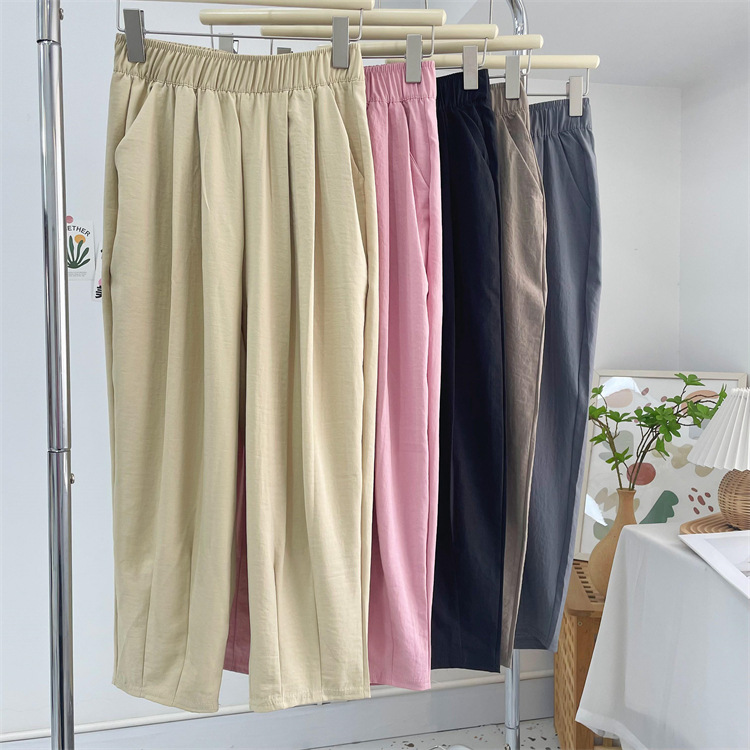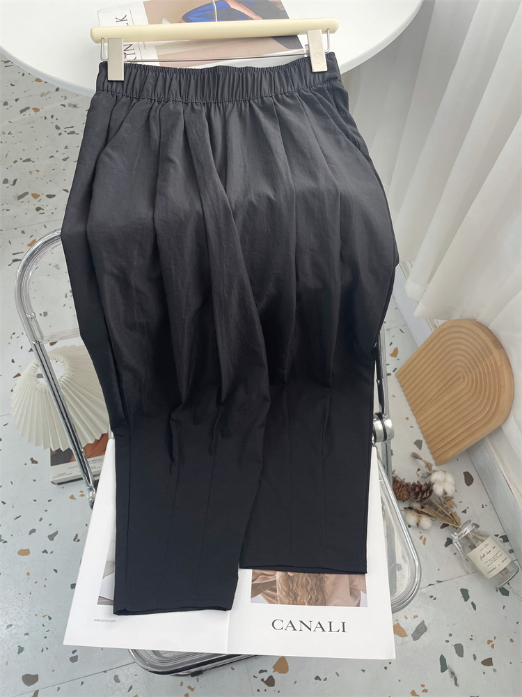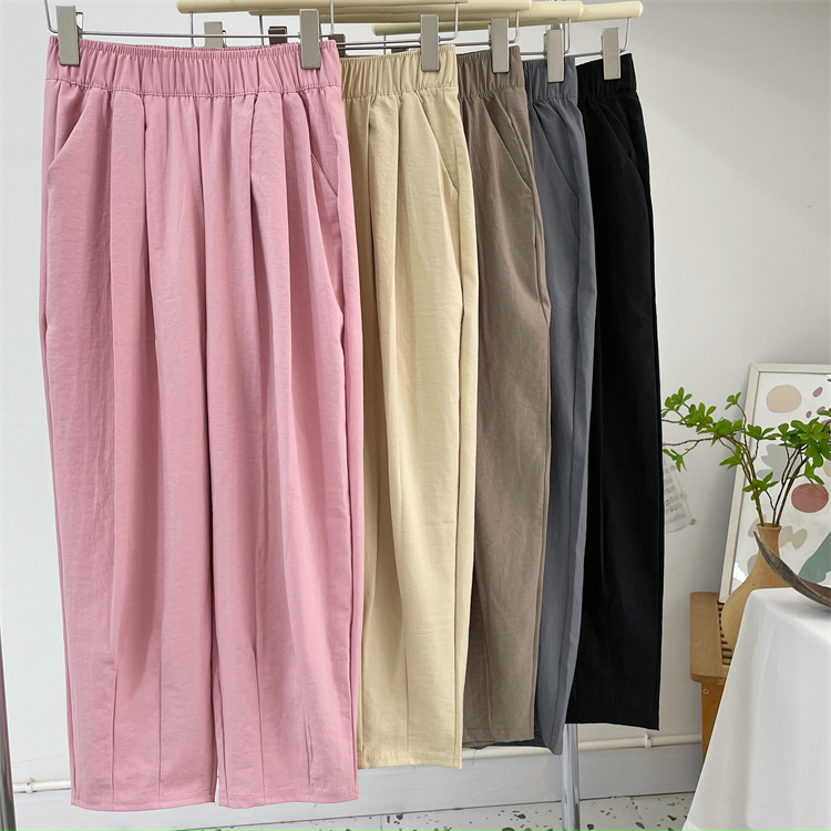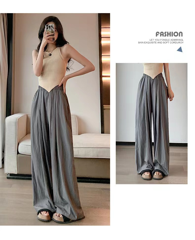 2023夏薄款褶皱慵懒风休闲裤子薄款拖地裤抖音同款山本阔腿裤女