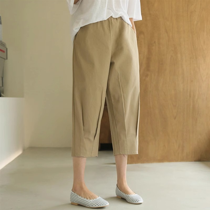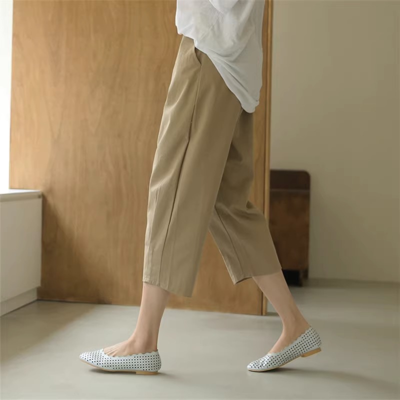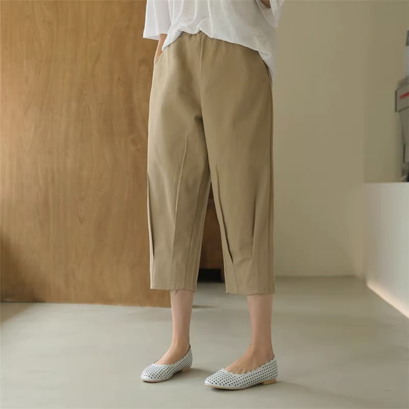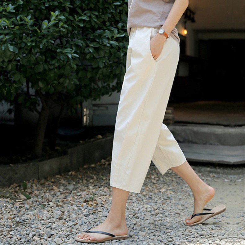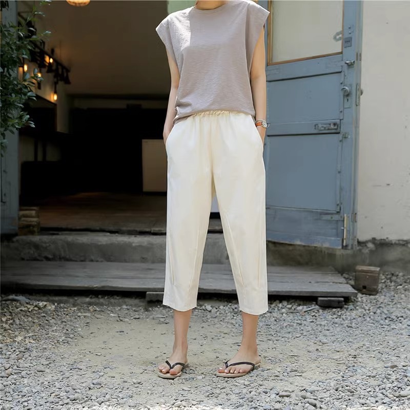 裤子女2023新款阔腿裤夏薄款高腰七分九分棉麻哈伦裤大码休闲宽松