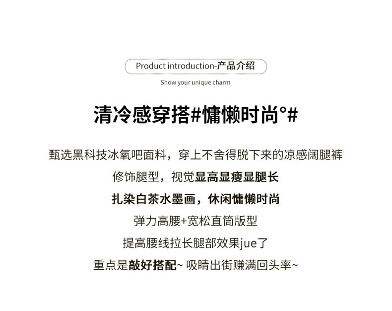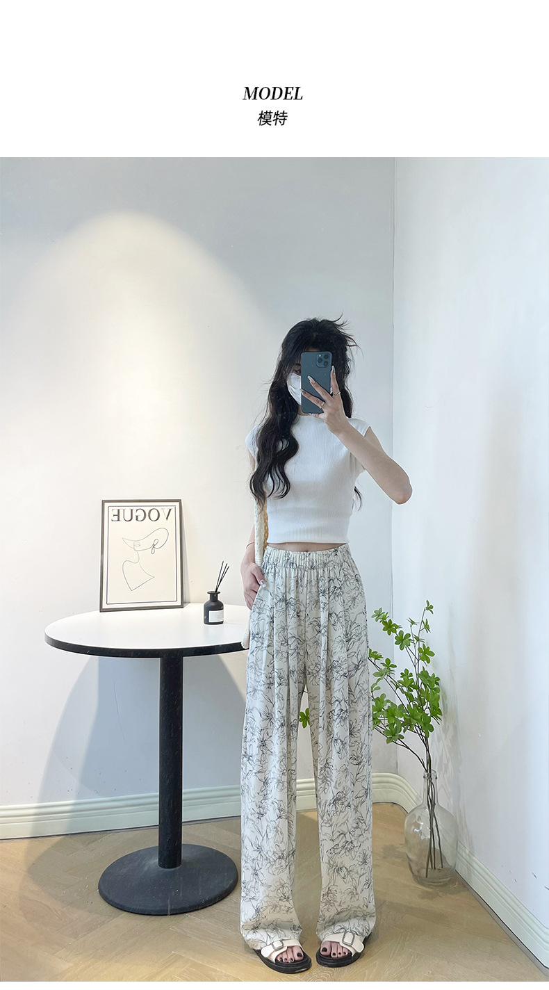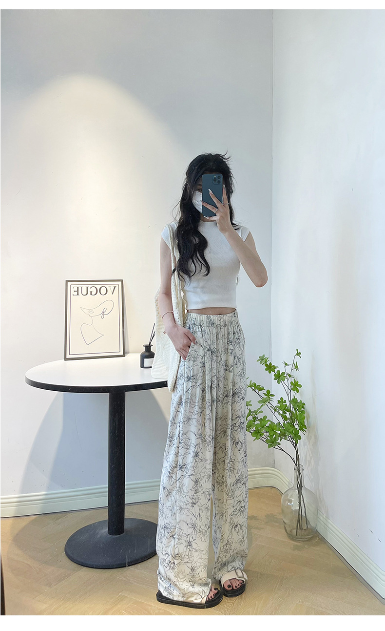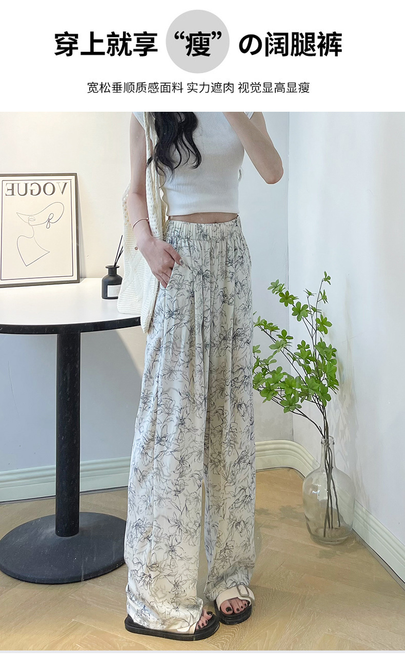 水墨晚杏阔腿裤女2023年夏季新款高腰显瘦休闲裤山本裤凉凉裤花裤