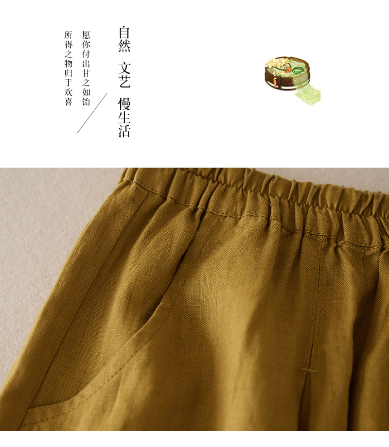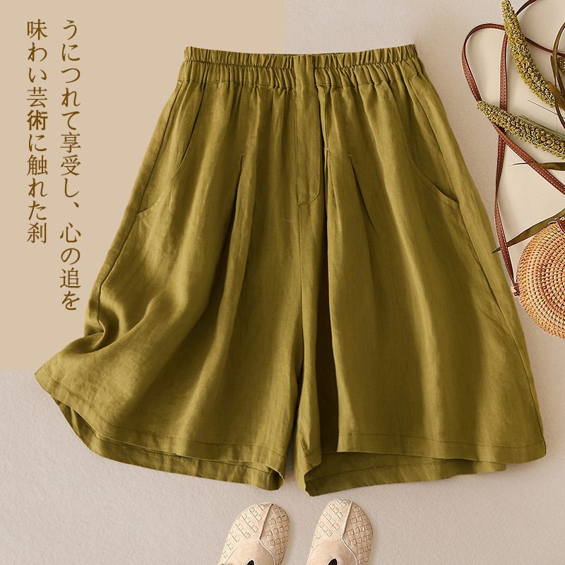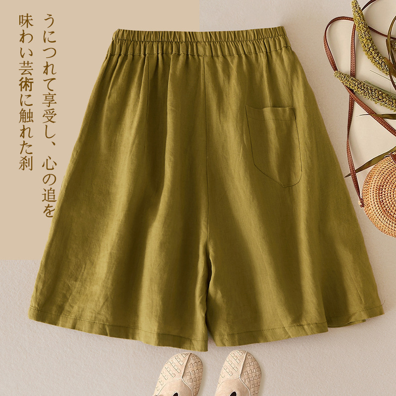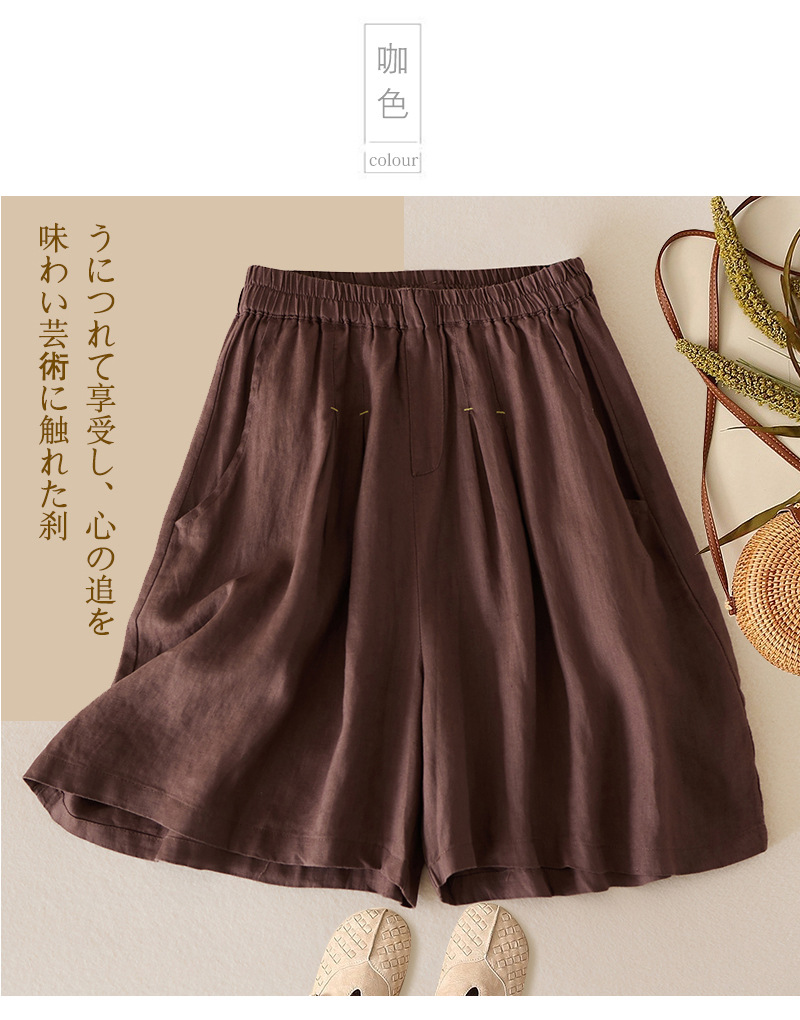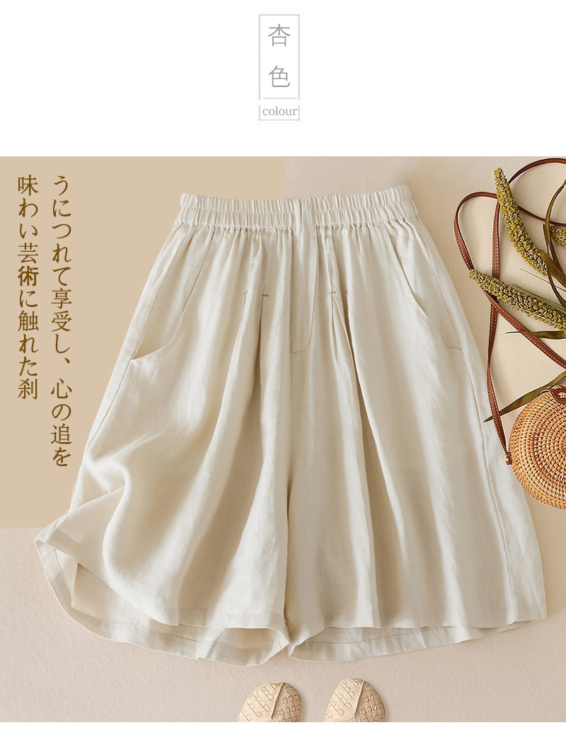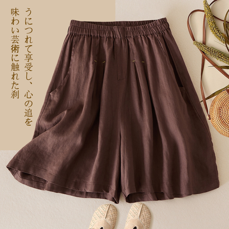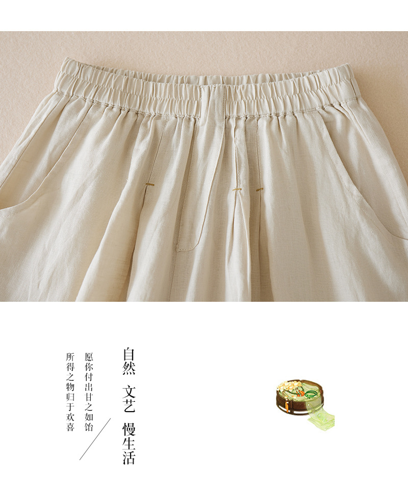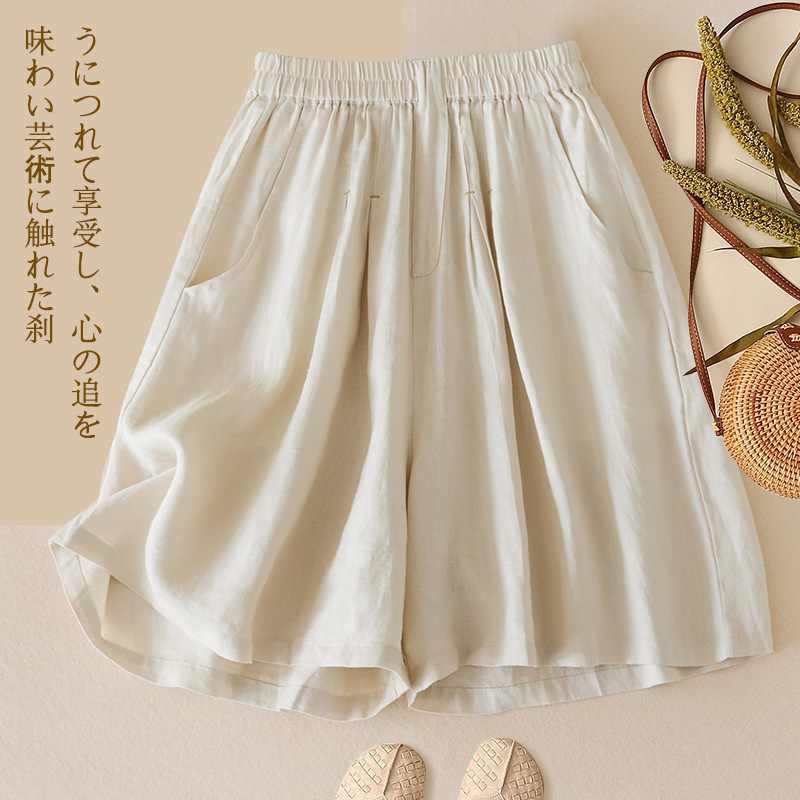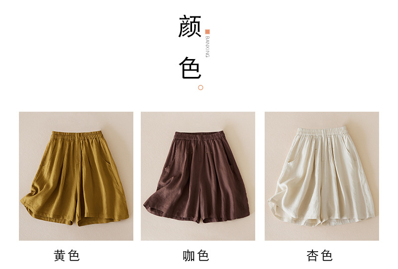 3色入 松紧腰阔腿裤女2023夏季新款高腰棉麻五分裤宽松休闲裙裤女