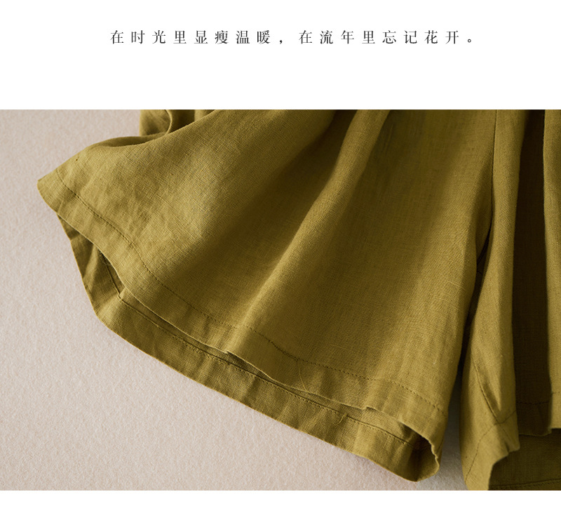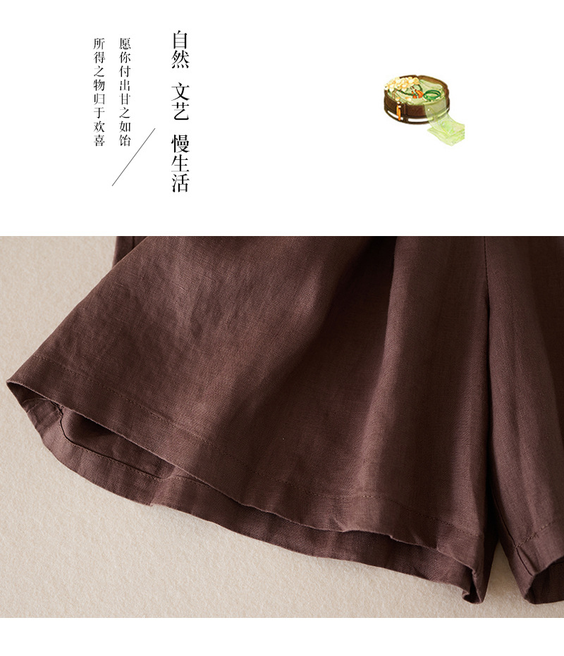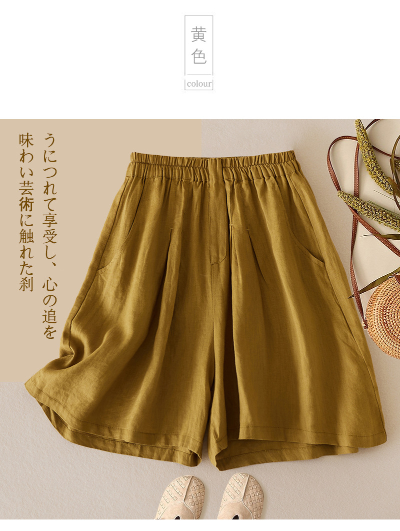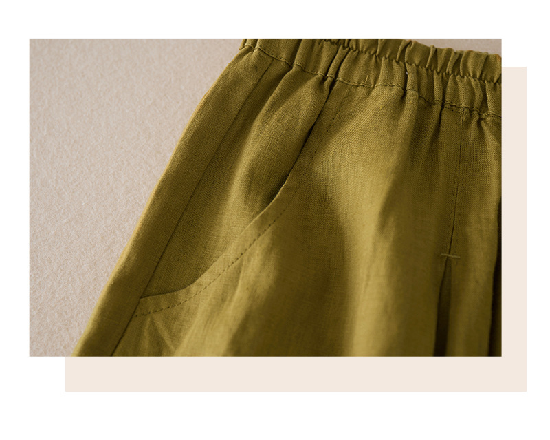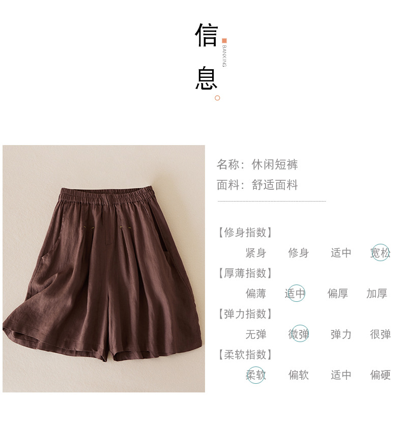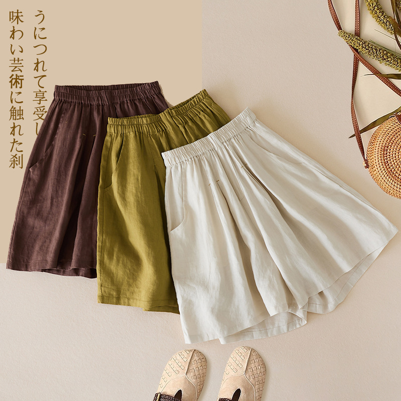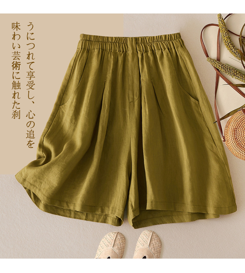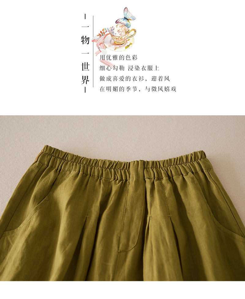 3色入 松紧腰阔腿裤女2023夏季新款高腰棉麻五分裤宽松休闲裙裤女