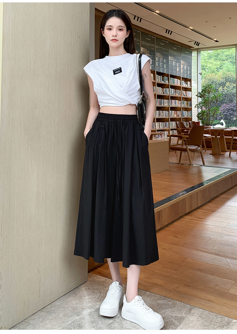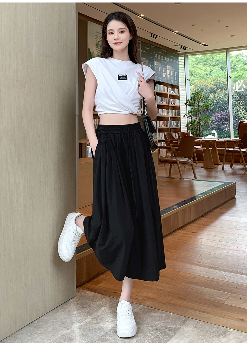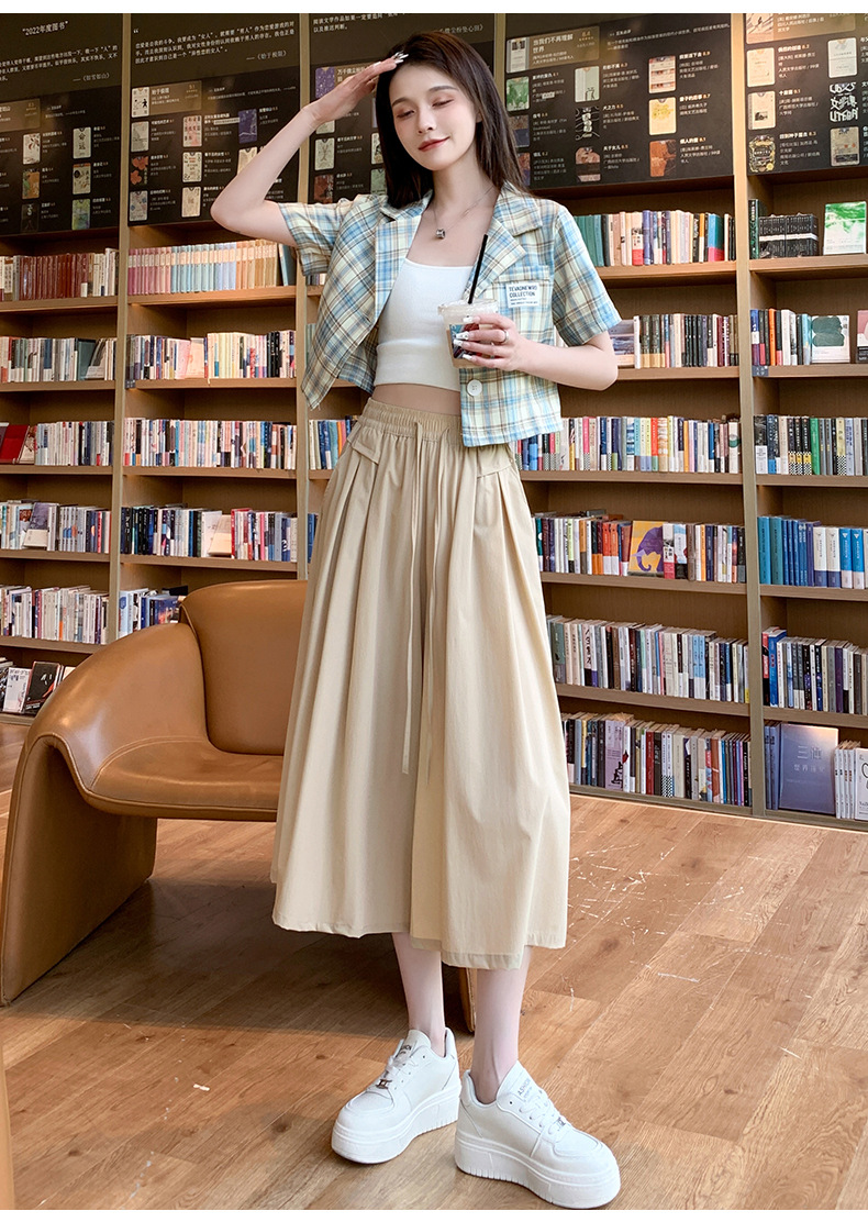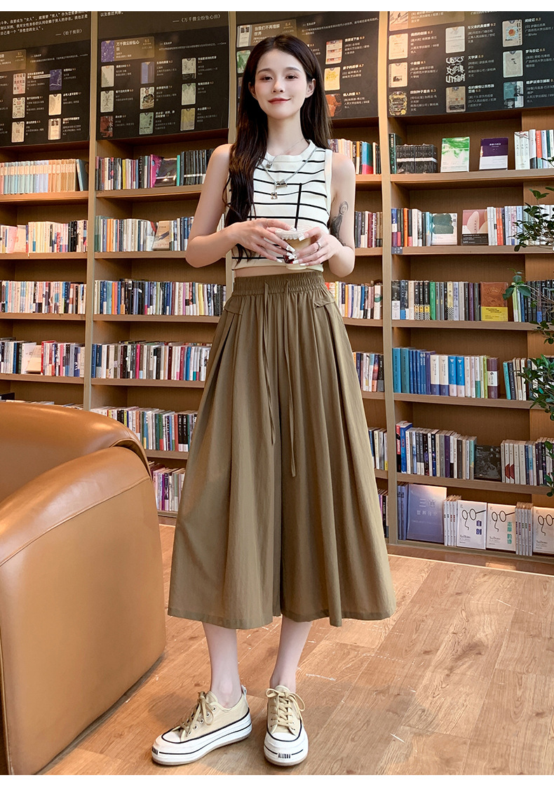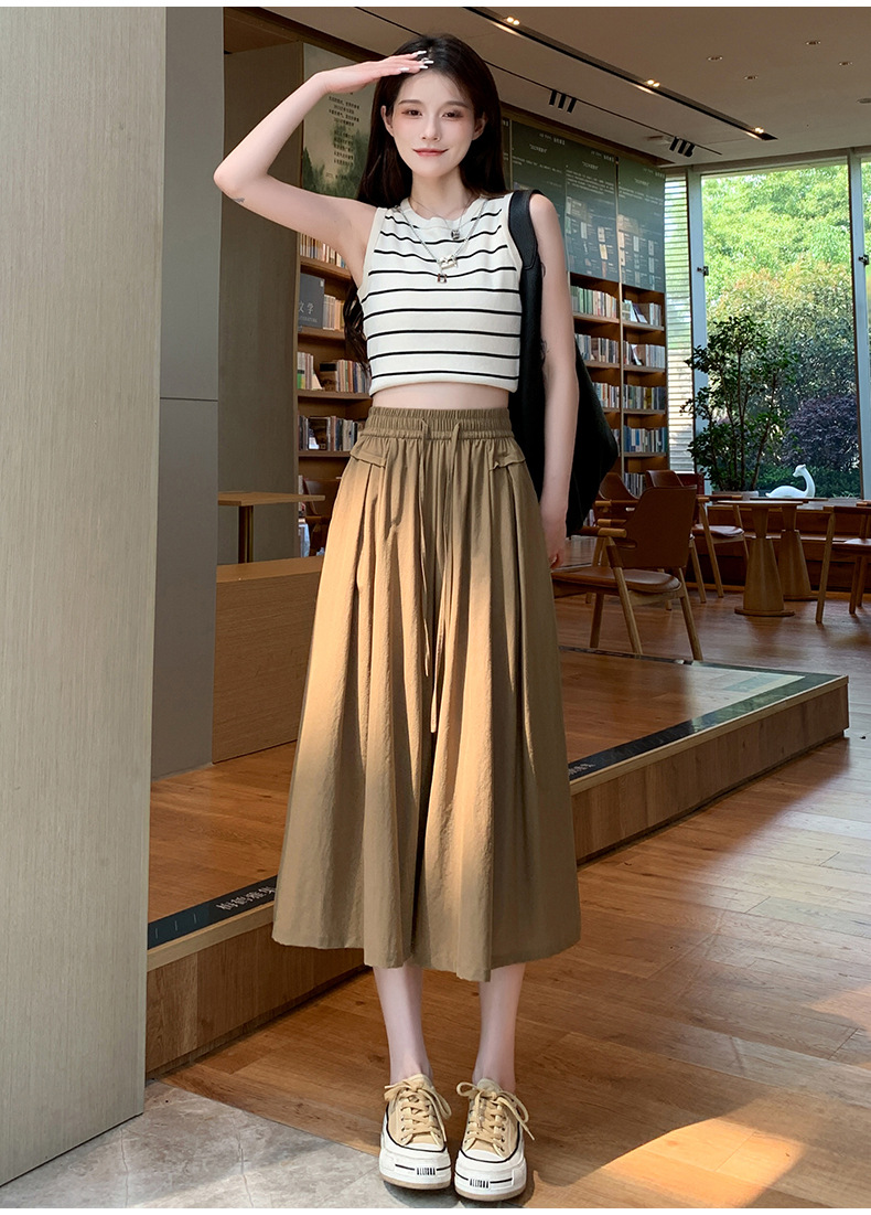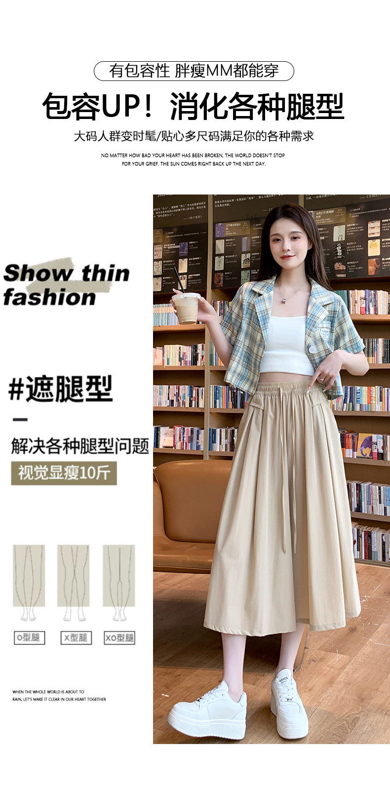 薄款阔腿裤女中长裙裤2023夏季新款高腰休闲小个子宽松半身裙裤子
