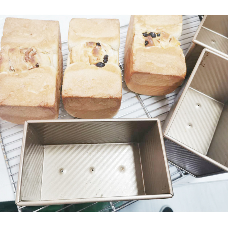 吐司模具长方形波纹不粘土司盒450G金色烤面包模黑色碳钢带盖