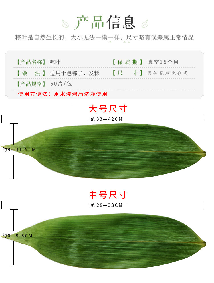 新鲜大粽叶50片新鲜箬叶子干粽叶芦苇叶大叶棕叶端午包粽子叶家用
