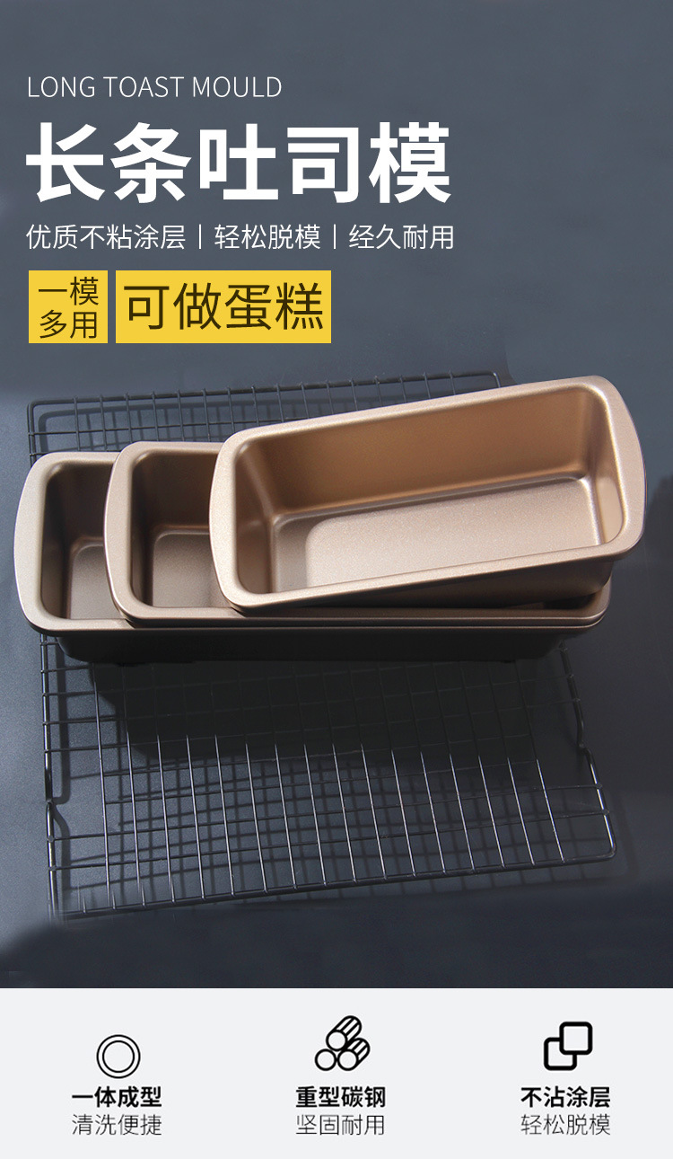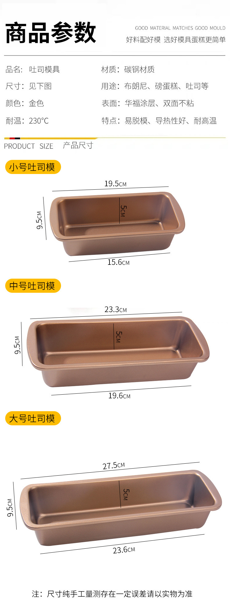吐司模具金色不粘长方形土司盒吐司面包烤盘不带盖面包模烘焙工具