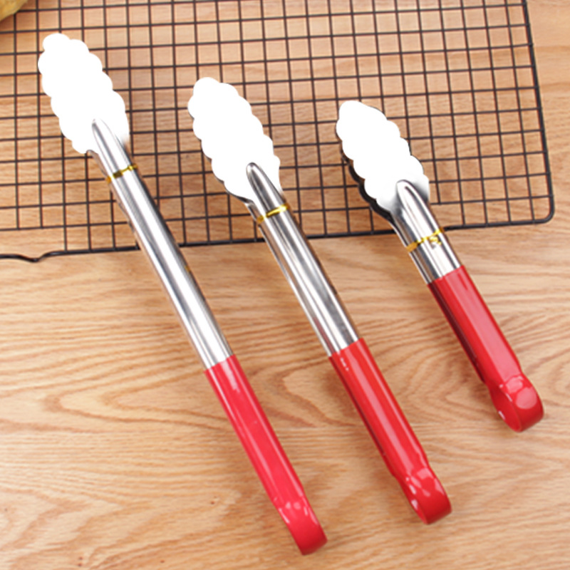 食品夹不锈钢红柄食物夹防烫面包夹酒店牛排烤肉夹9寸~14寸