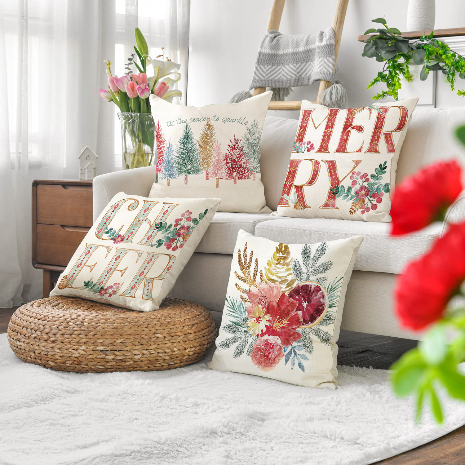 跨境家居圣诞节抱枕亚麻耐脏字母印花抱枕套现代简约床头靠枕批发