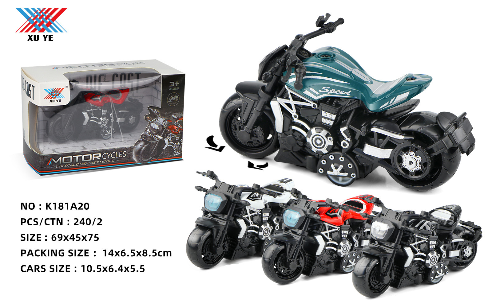 1:36仿真赛车机车模型摆件声光金属玩具回力合金摩托车模型