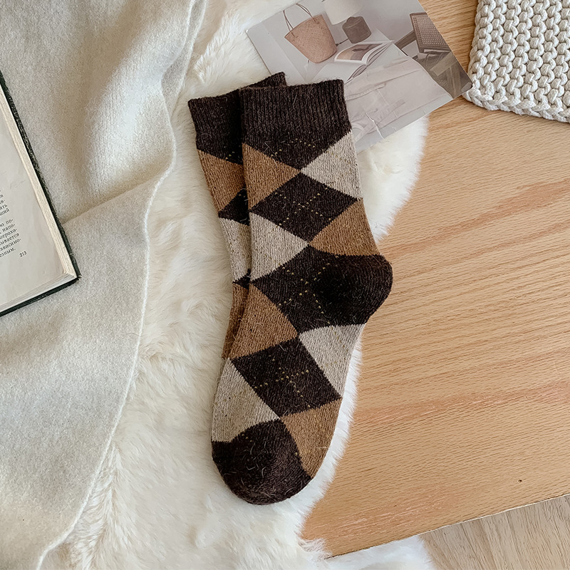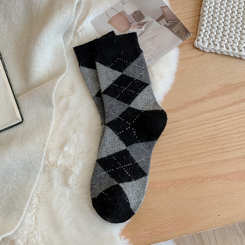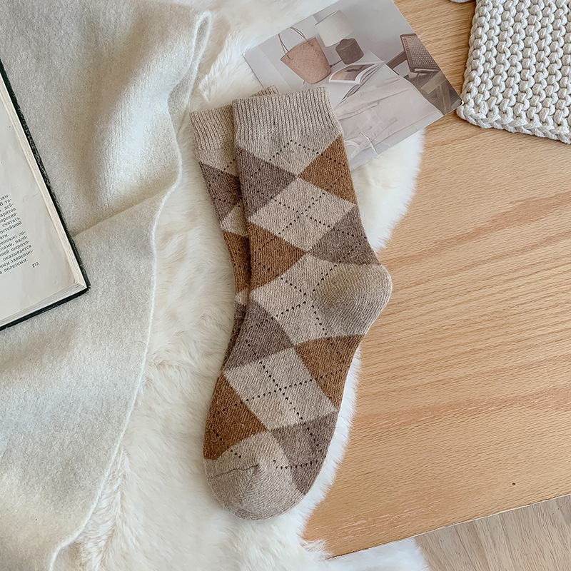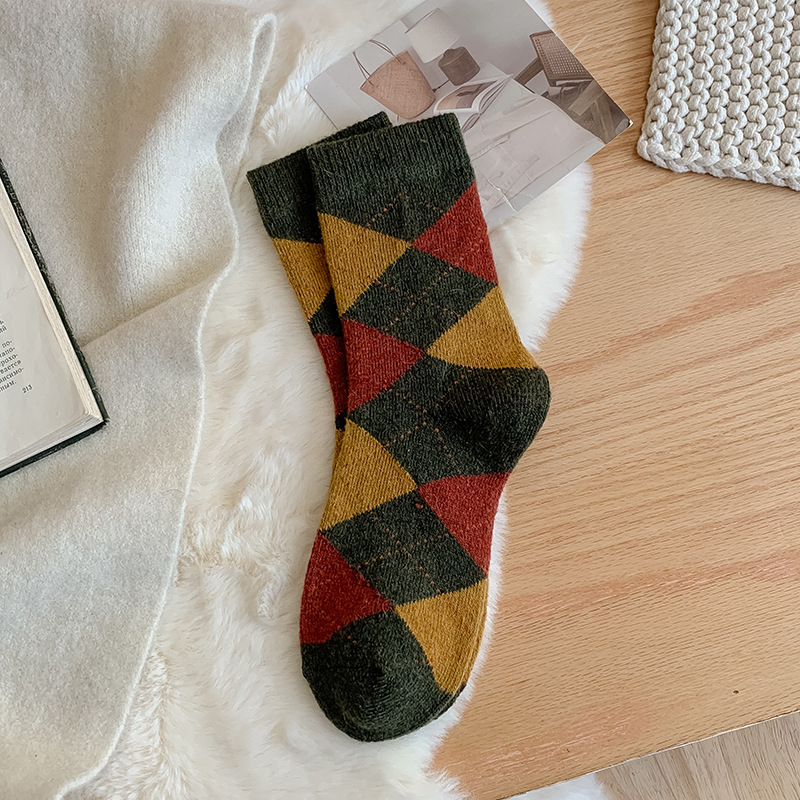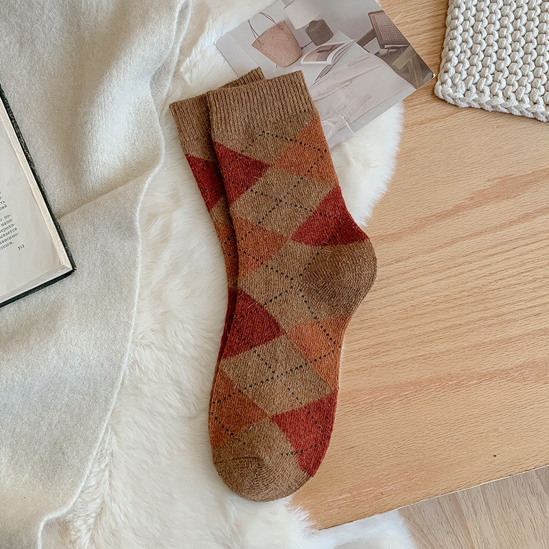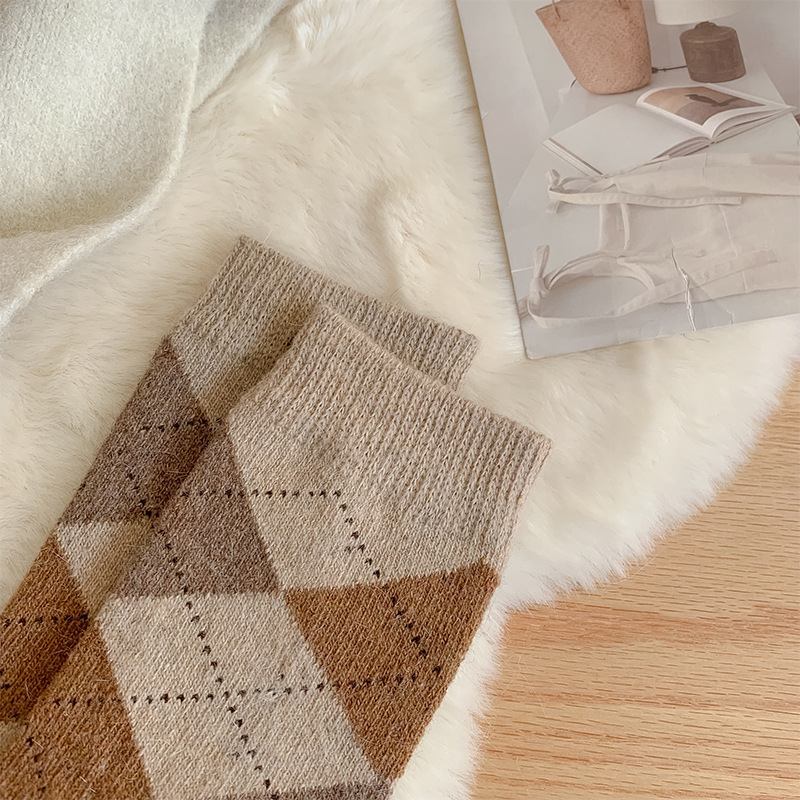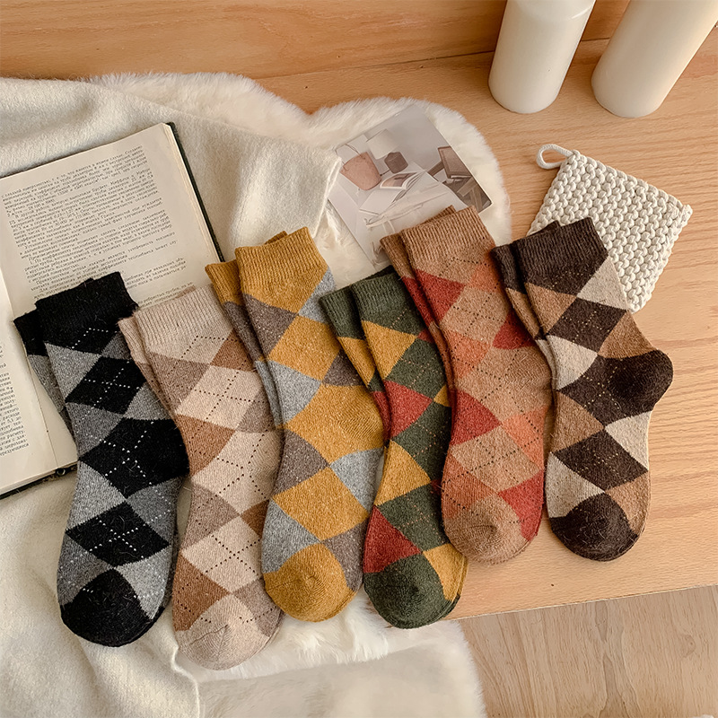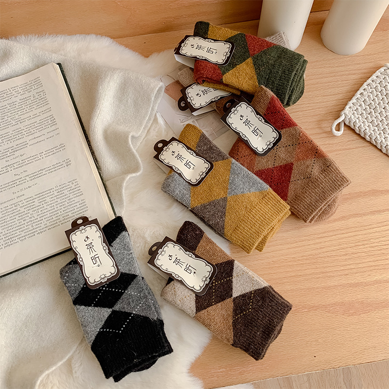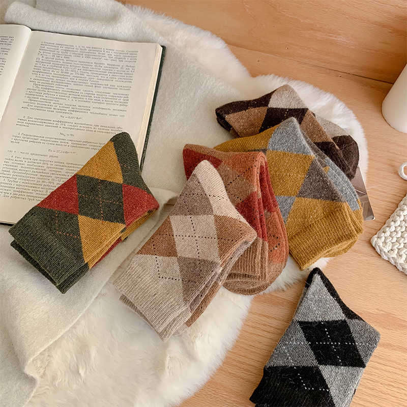 英伦风复古菱格羊毛袜女冬季加绒加厚保暖日系学院风格子堆堆袜潮