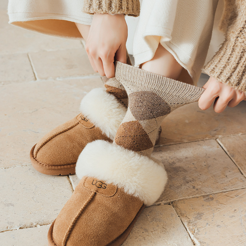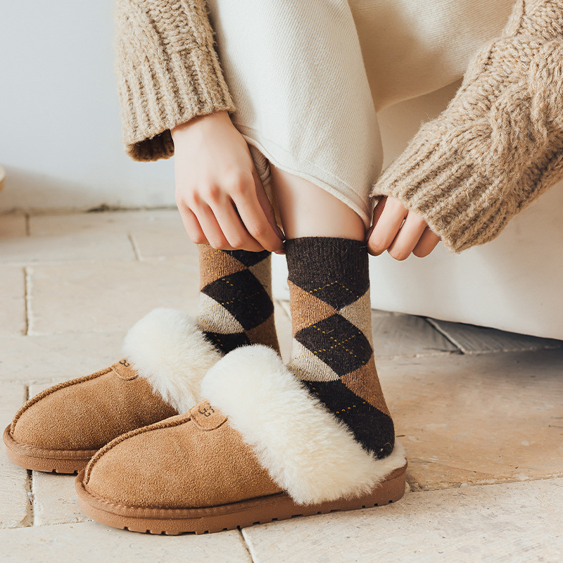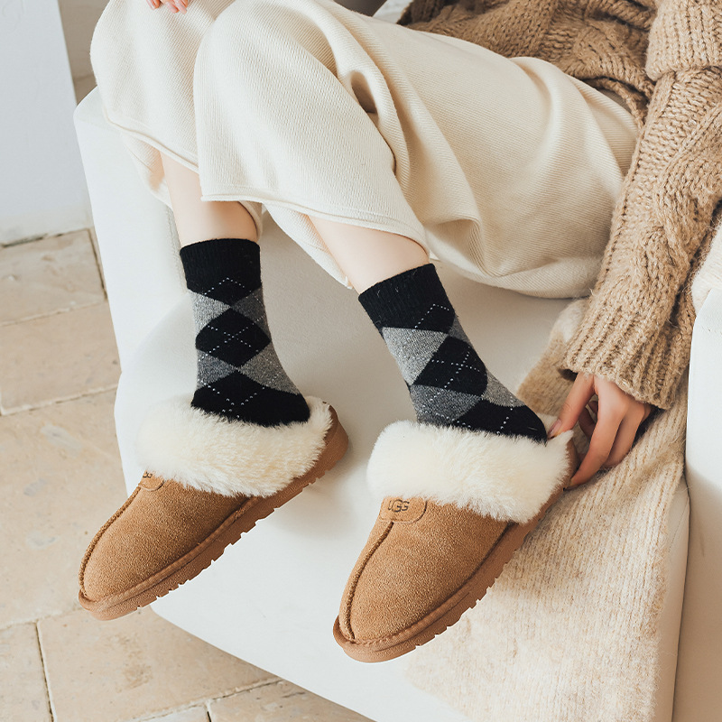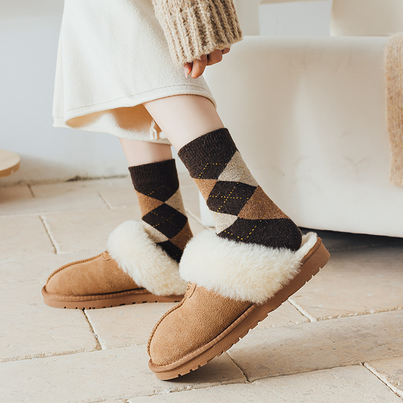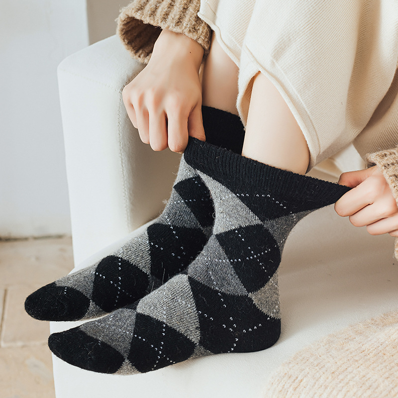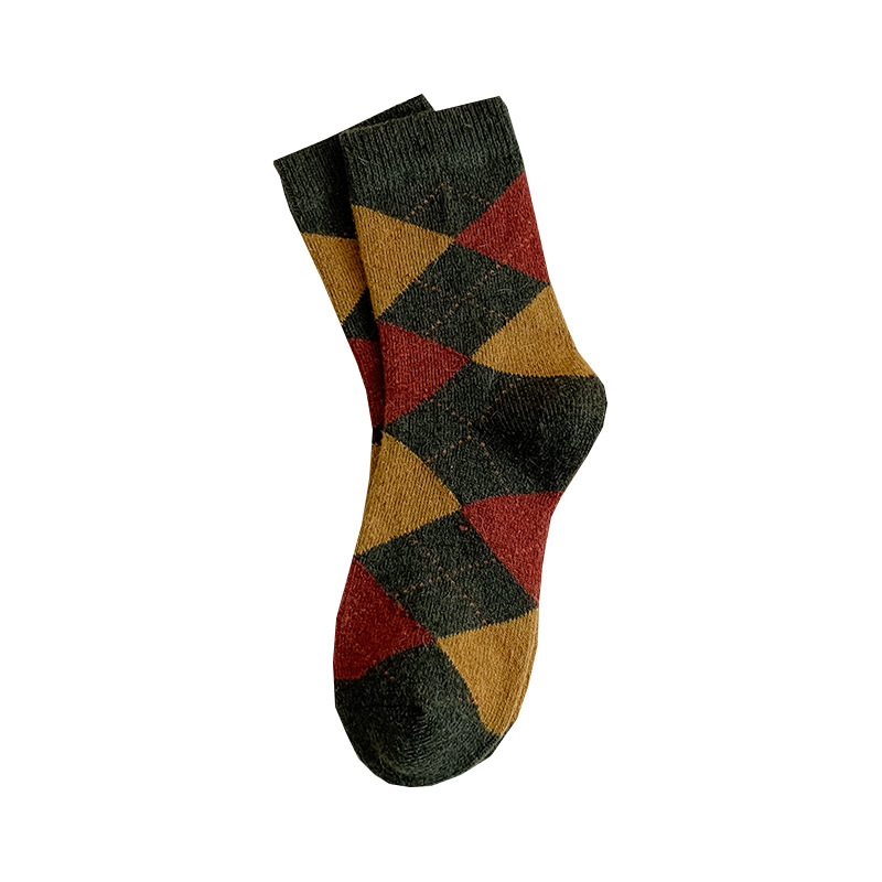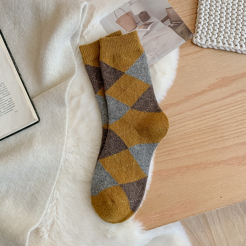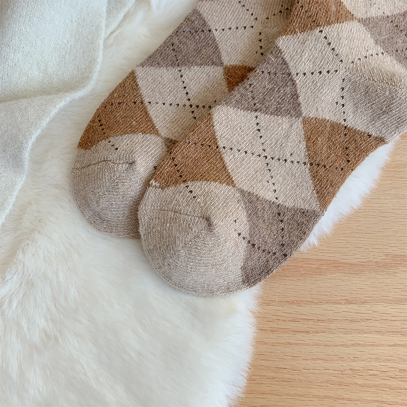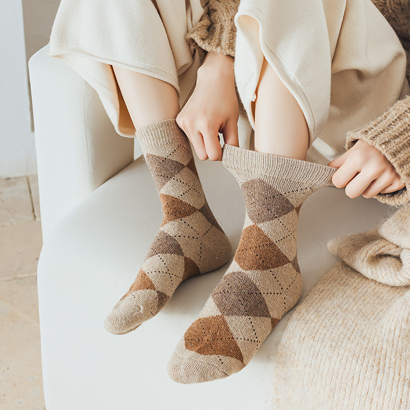 英伦风复古菱格羊毛袜女冬季加绒加厚保暖日系学院风格子堆堆袜潮