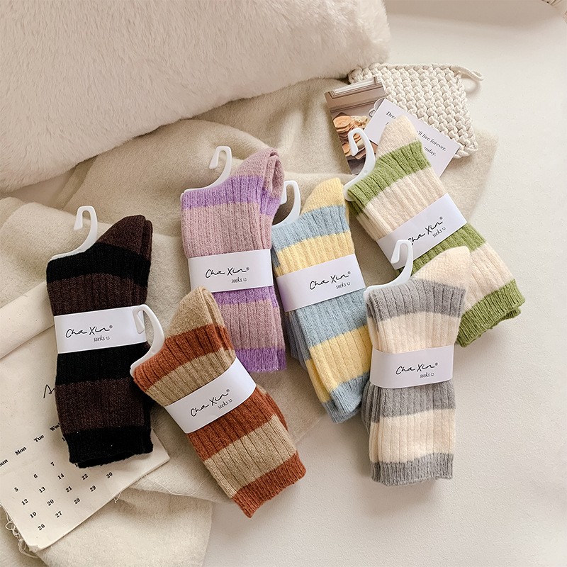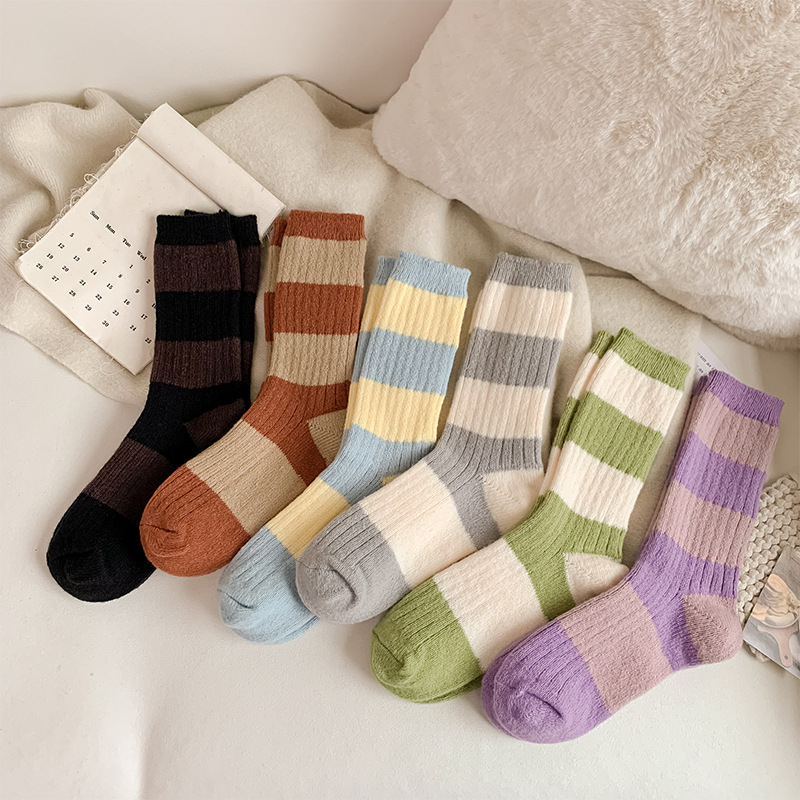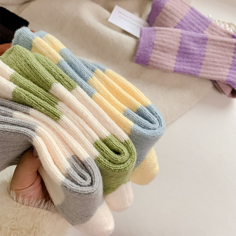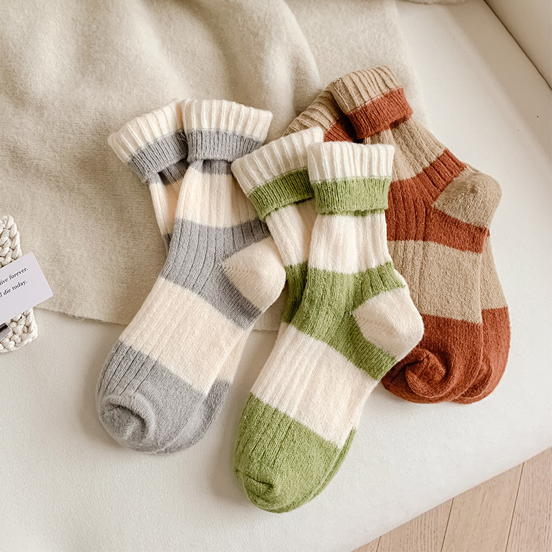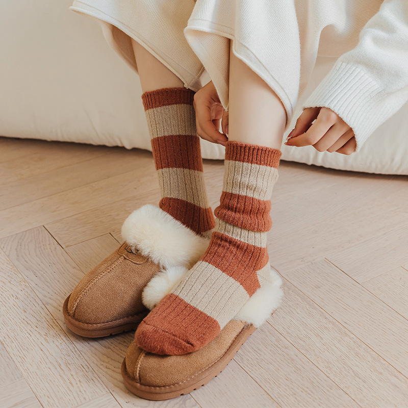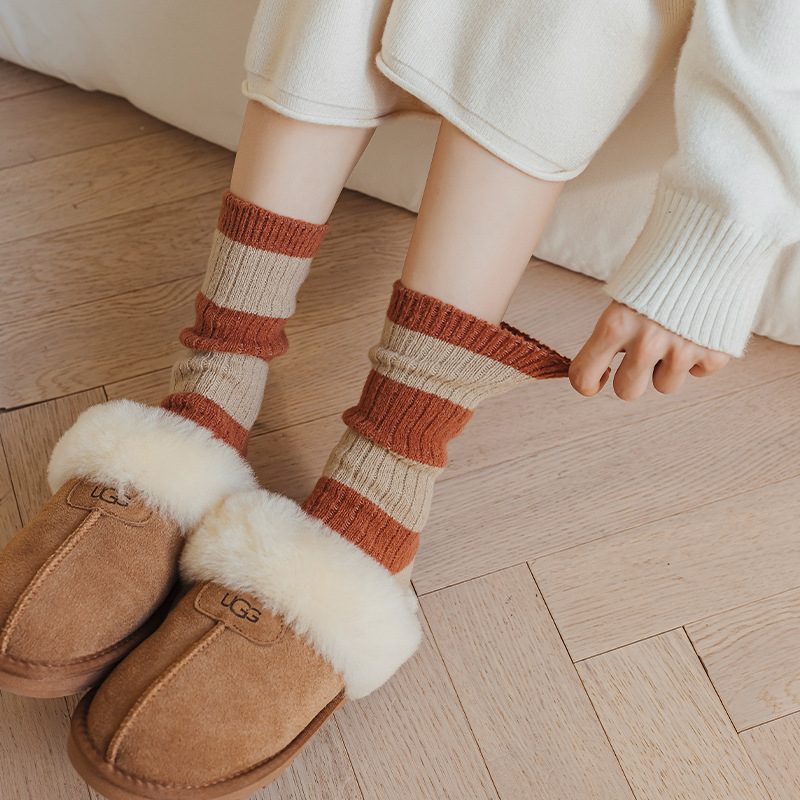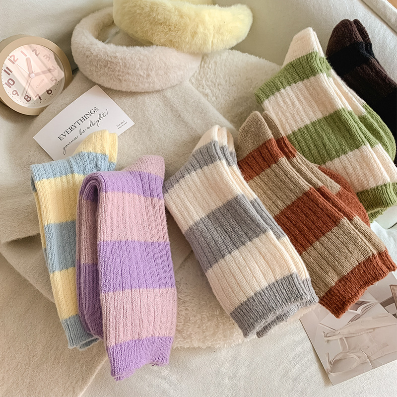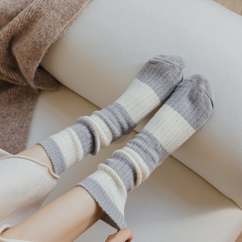 ins潮流拼色羊毛袜女秋冬季加厚保暖中筒袜简约外穿雪地靴堆堆袜