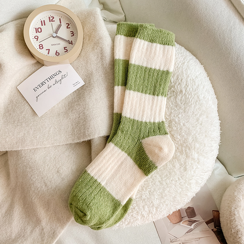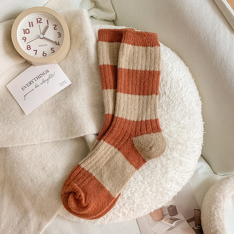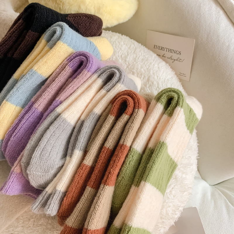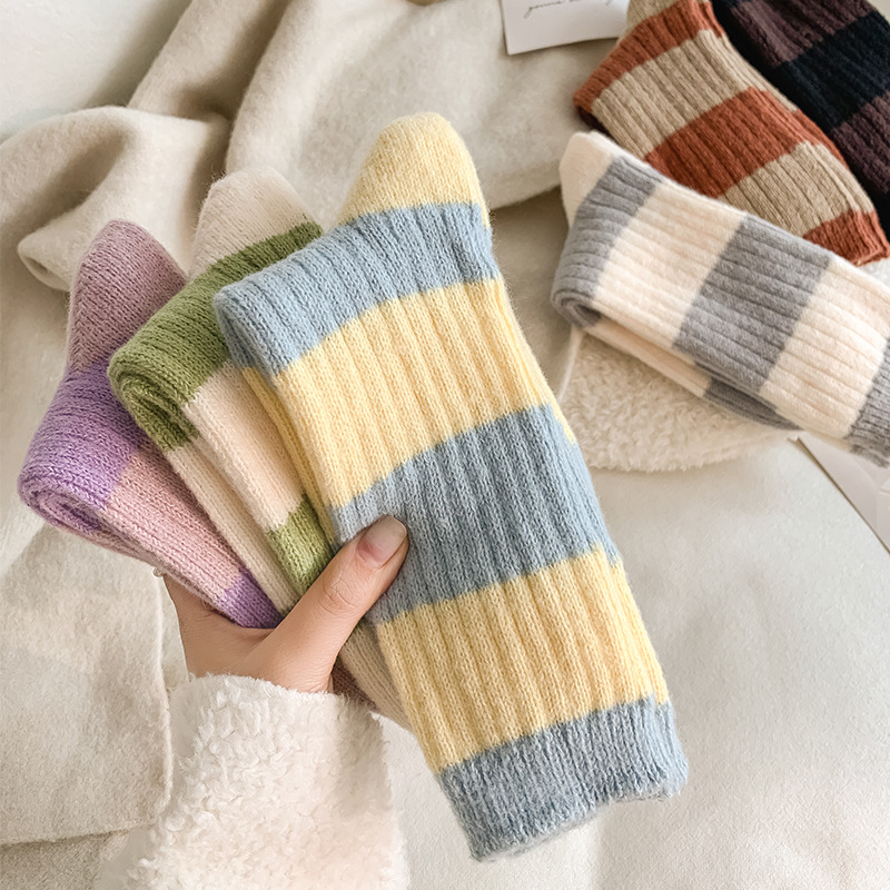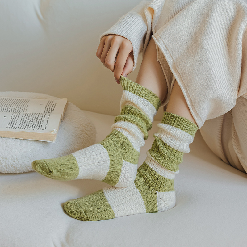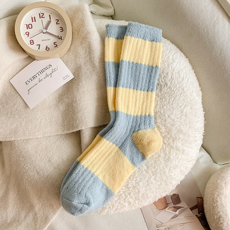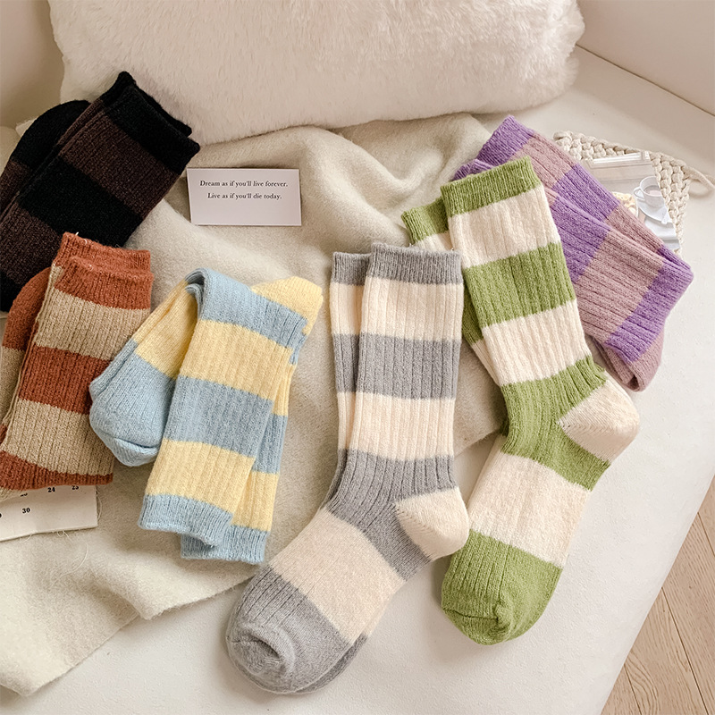 ins潮流拼色羊毛袜女秋冬季加厚保暖中筒袜简约外穿雪地靴堆堆袜