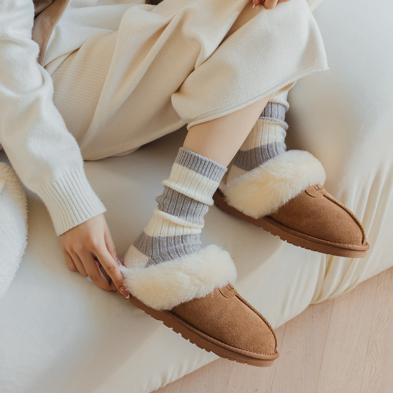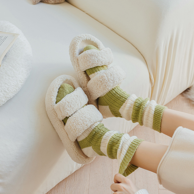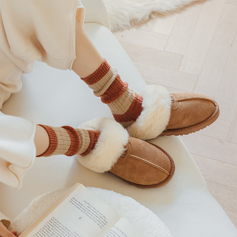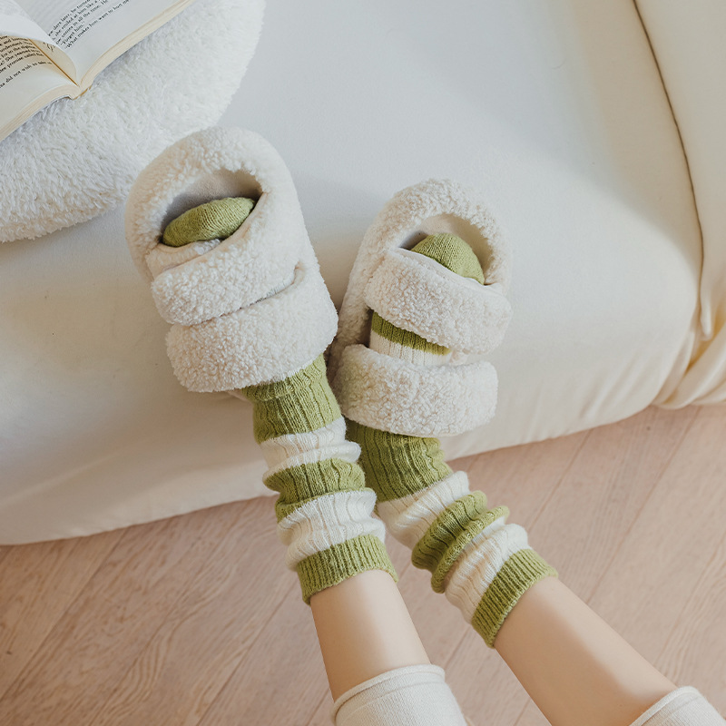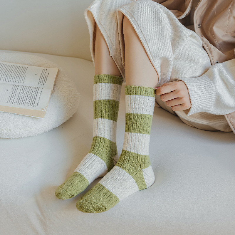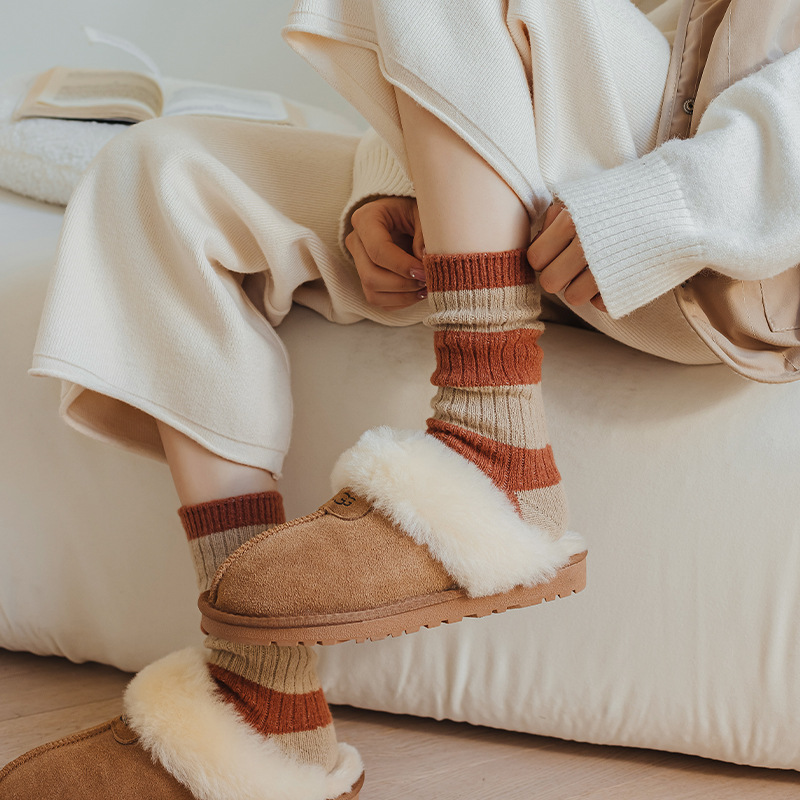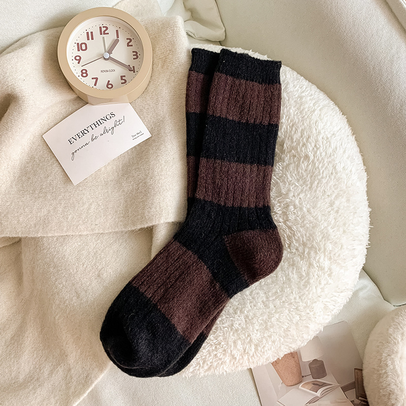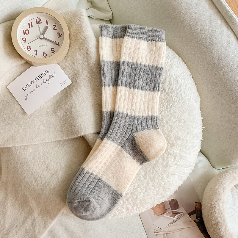 ins潮流拼色羊毛袜女秋冬季加厚保暖中筒袜简约外穿雪地靴堆堆袜