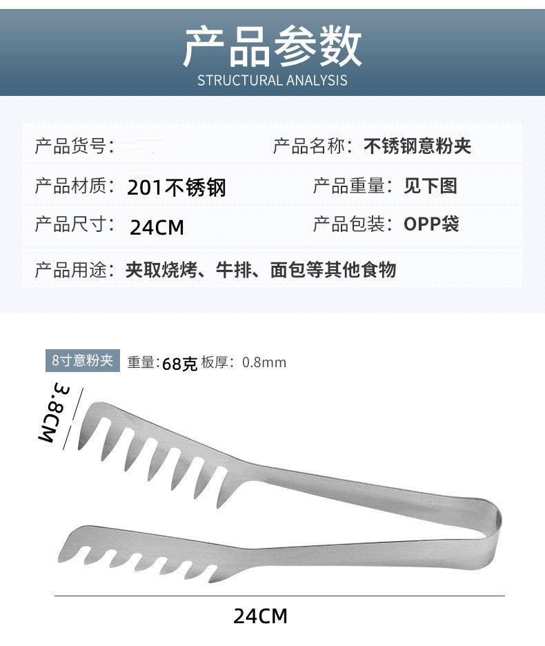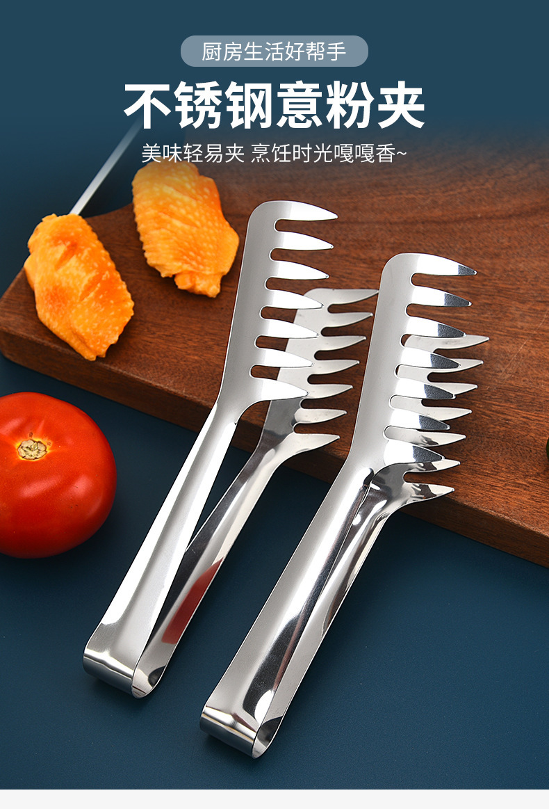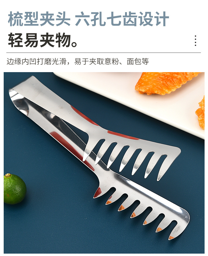 面包夹食物夹烧烤夹意粉夹梳形夹厨房工具食品夹不锈钢夹子亚马逊
