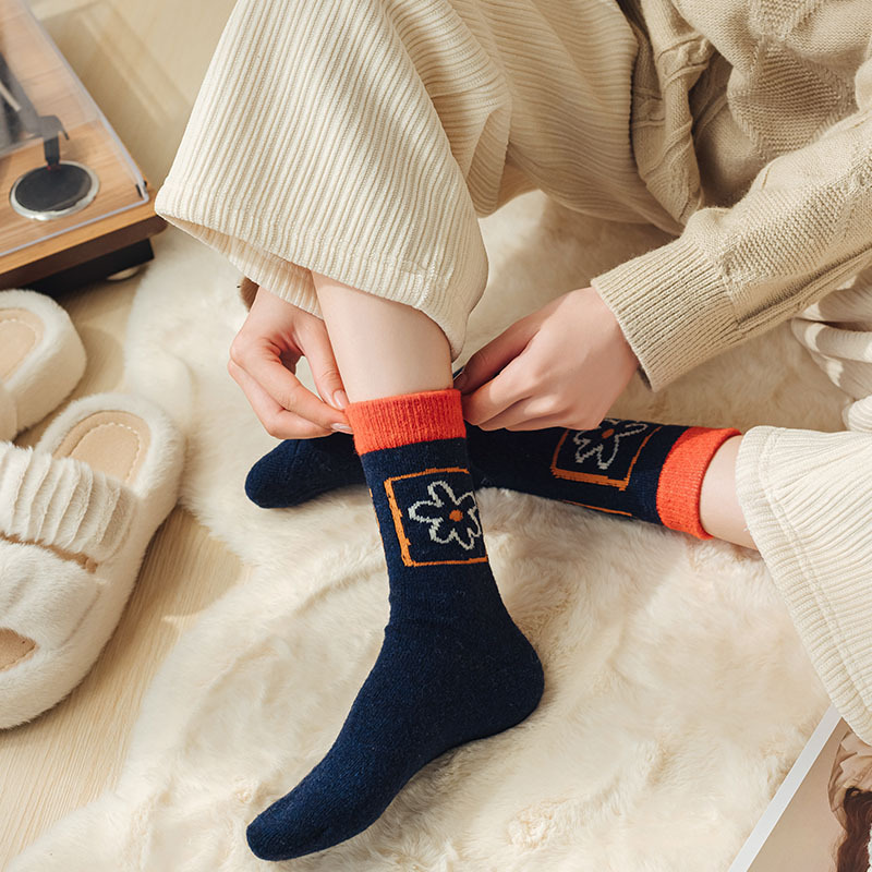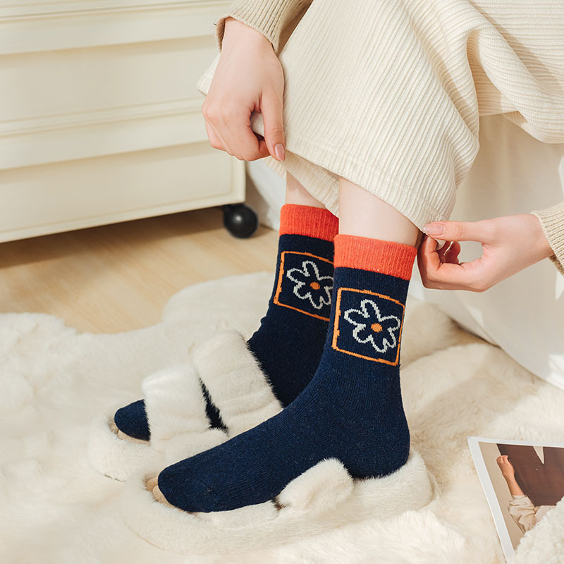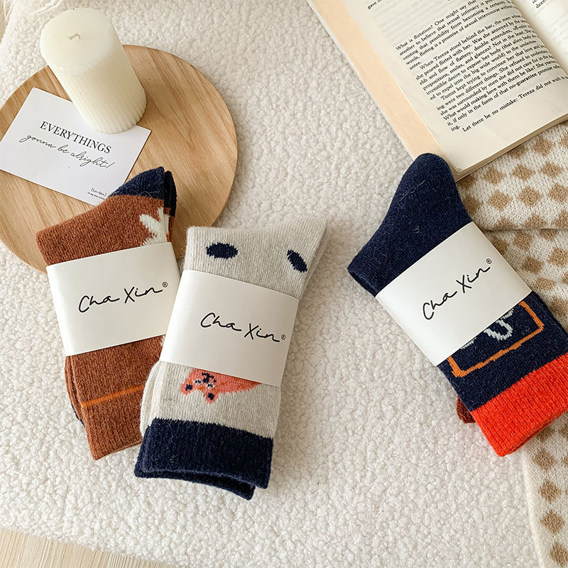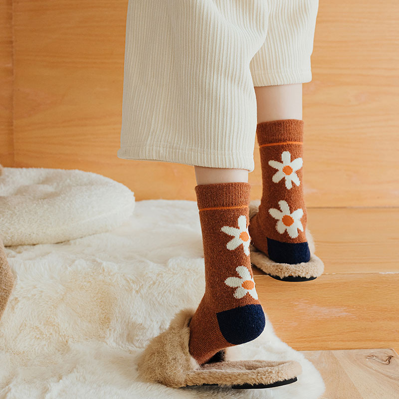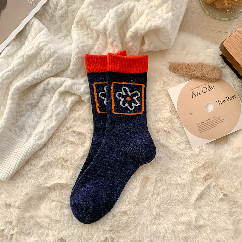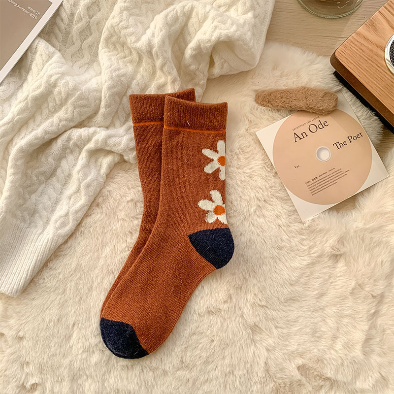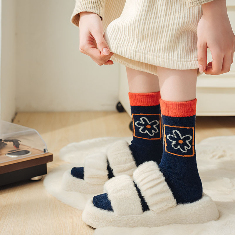 甜美花朵少女系羊毛袜温暖加厚学院风中筒袜可爱小猫学生休闲长袜