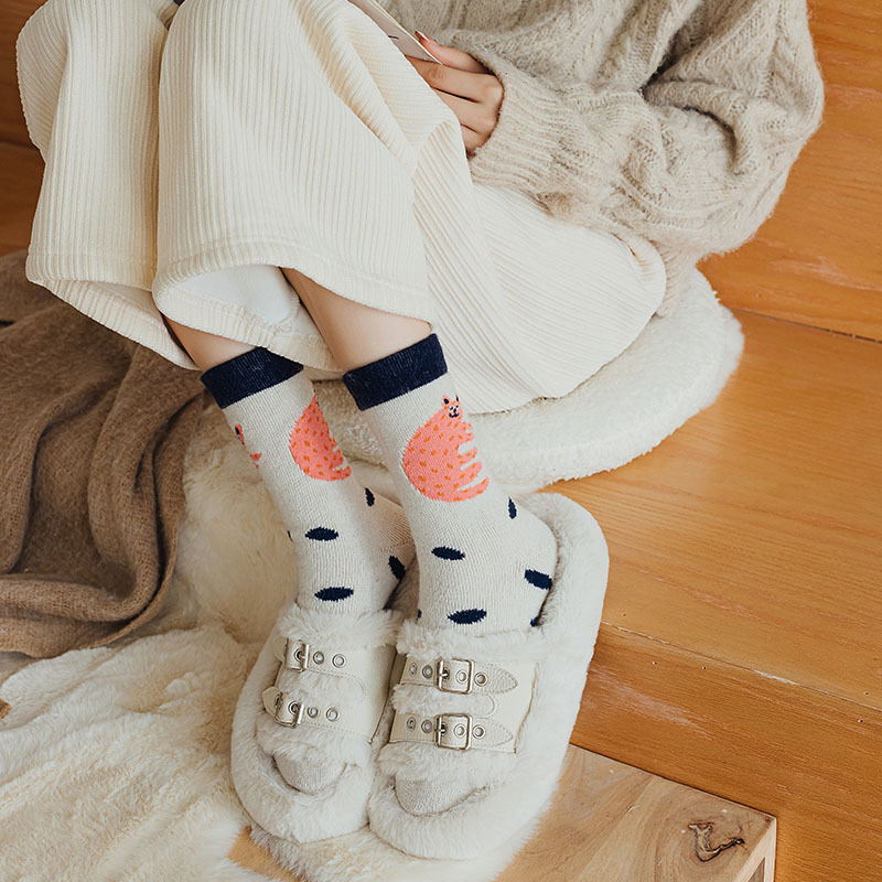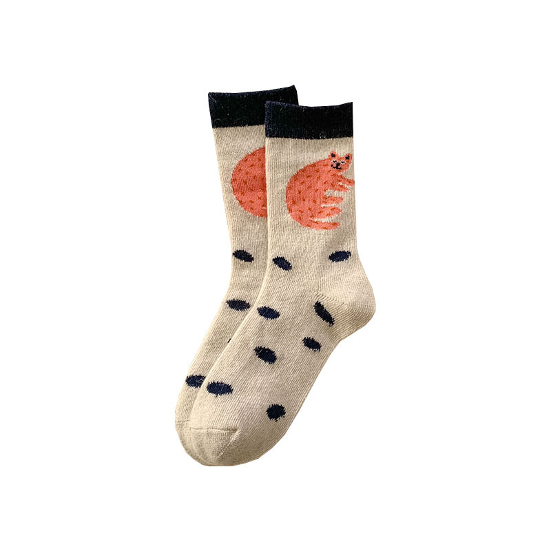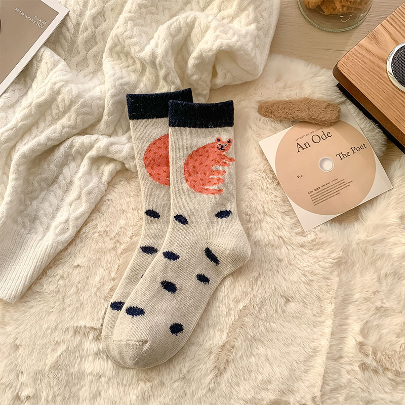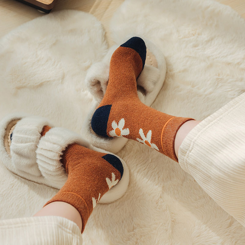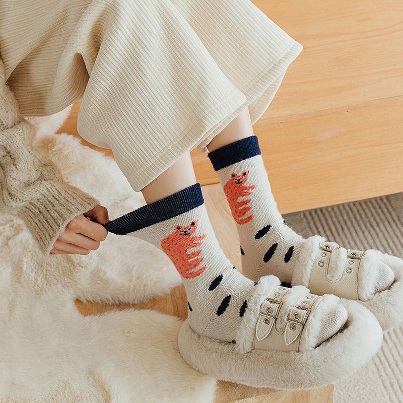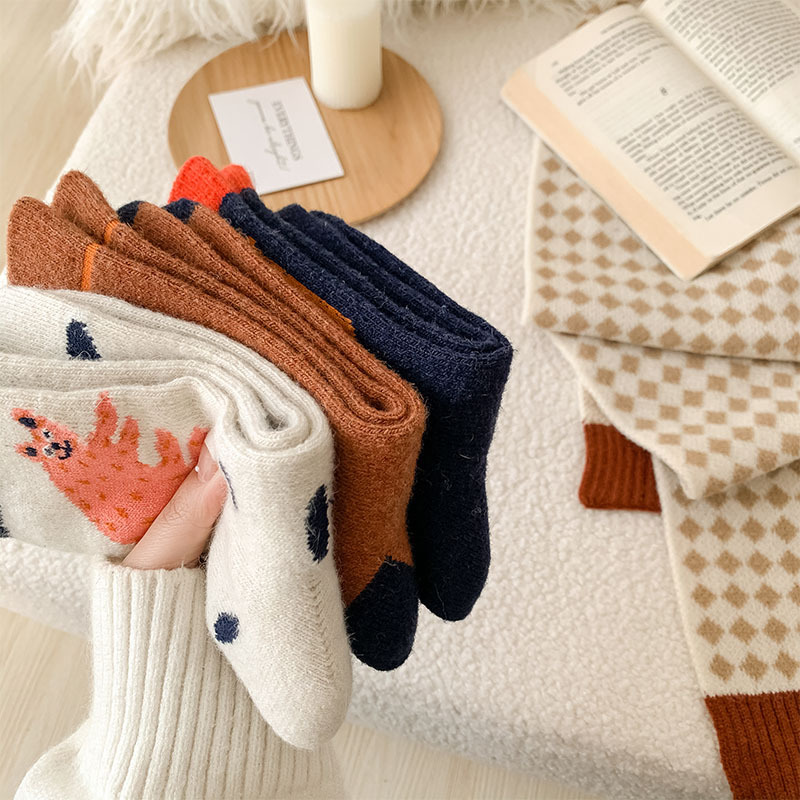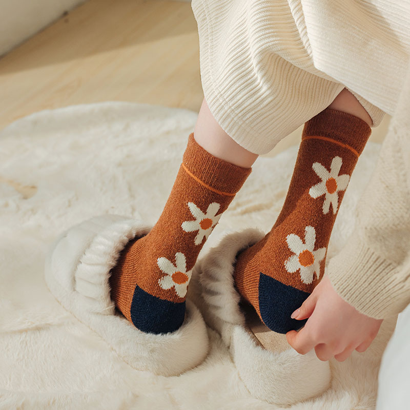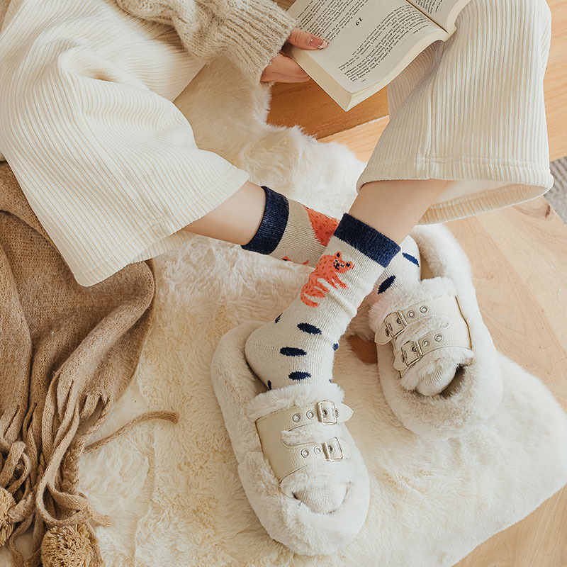 甜美花朵少女系羊毛袜温暖加厚学院风中筒袜可爱小猫学生休闲长袜