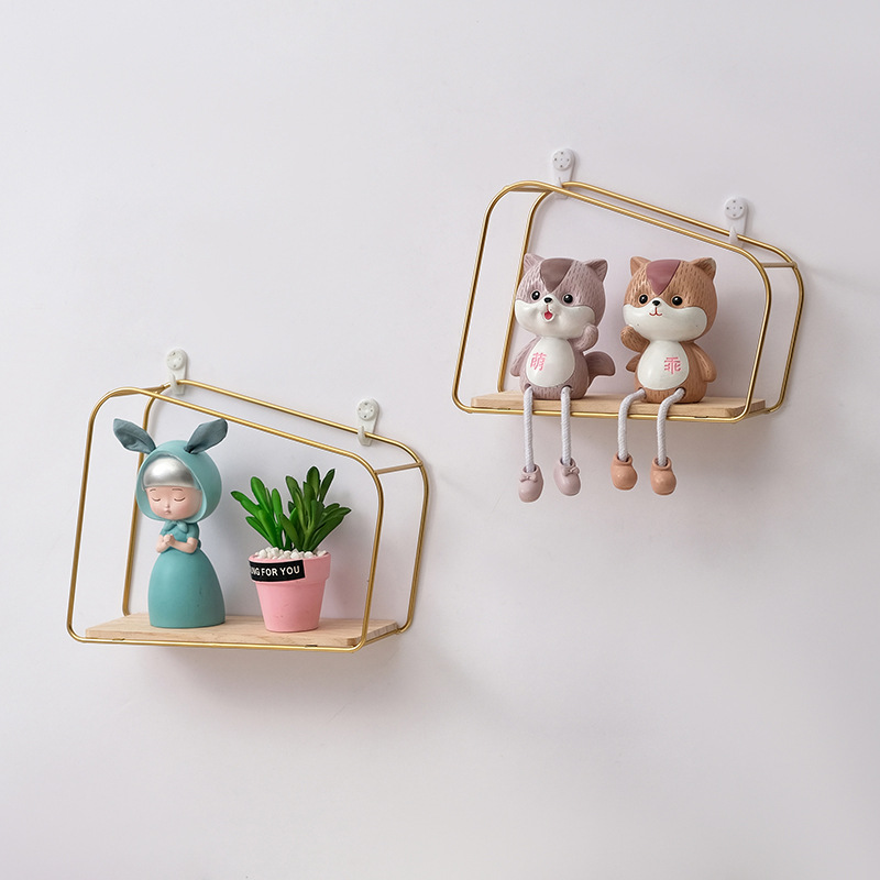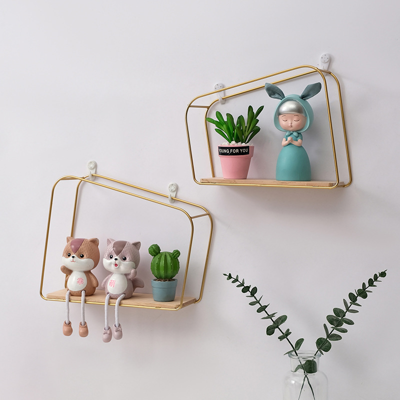 北欧风客厅墙面置物架免打孔铁艺挂墙上装饰架创意家用装饰收纳架