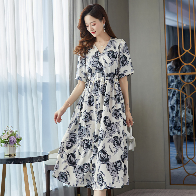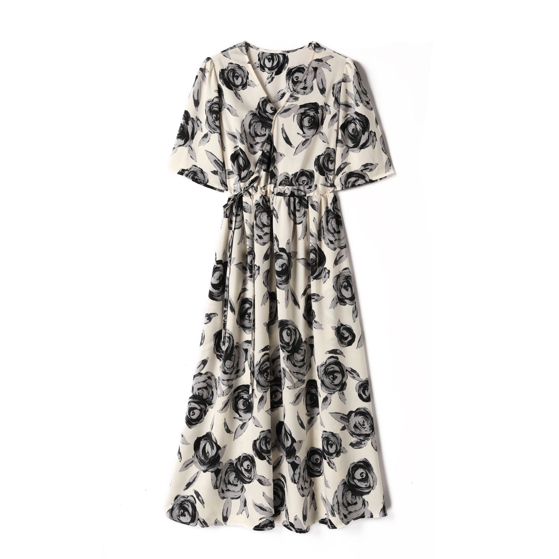 2023新款复古印花浪漫海边度假连衣裙小众设计感茶歇款小个子长裙