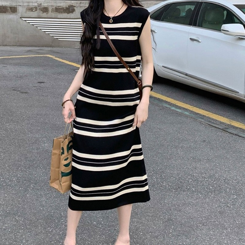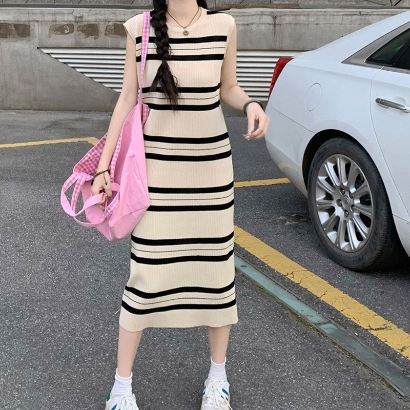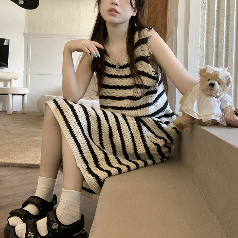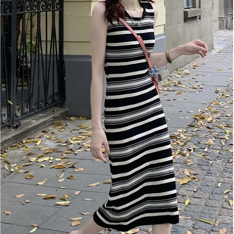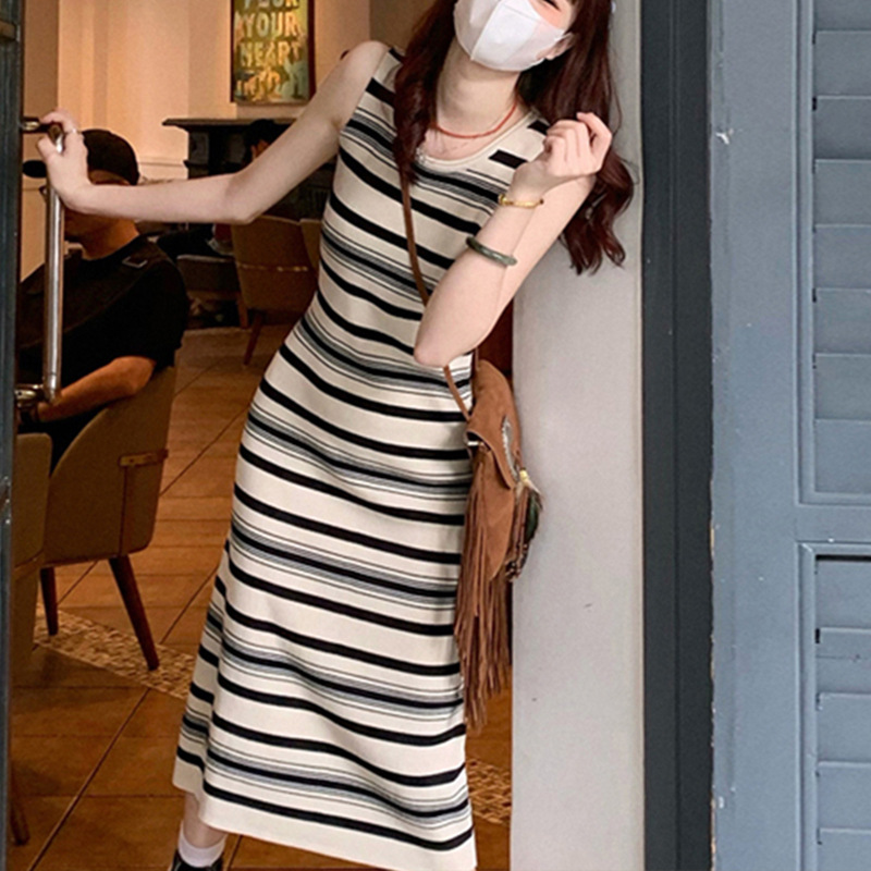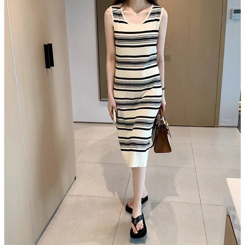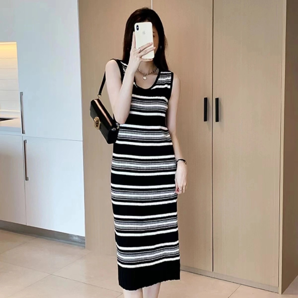 2023连衣裙夏季女法式今年流行Polo领宽松条纹百搭针织短裙子潮